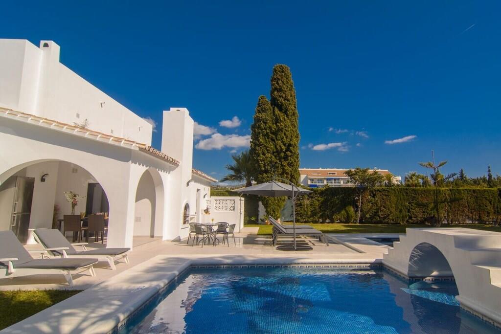 Sind Sie auf der Suche nach einem Urlaubsort, der die andalusische Tradition mit dem Bedürfnis nach modernem Design perfekt verbindet? Besuchen Sie unsere schöne Villa und alle Ihre Erwartungen werden erfüllt werden! Dieses nach Süden ausgerichtete Stadthaus mit 5 Schlafzimmern (300m2) befindet sich auf einem großzügigen Grundstück (1000m2), hat eine mediterrane Vegetation, einen besonderen L-förmigen Pool mit römischer Treppe (der Hauptteil ist 9mx4m, das Kinderbecken ist 3m x 3m), Sonnenliegen, Terrassen, Grillplatz, einen wunderschönen Blick auf das Meer und die Berge, ein gepflegtes und sorgfältig durchdachtes Design, moderne und doch sehr stilvolle Möbel und Dekorationen. ~ Innen Im Erdgeschoss befinden sich das Wohnzimmer, zwei Schlafzimmer, eine Küche und ein Familienbad. Das Wohnzimmer besteht aus zwei verschiedenen Bereichen: dem Sitz- und dem Essbereich. Die schönen Marmorböden und das gepflegte Design, die Holzbalken und die exquisite Dekoration machen Ihren Aufenthalt so angenehm wie möglich. In der Sitzecke steht ein bequemes Sofa vor einem Flachbildfernseher (iptv mit internationalen Kanälen). Der Kamin vervollständigt die heimelige Atmosphäre. Der Essbereich verfügt über einen eleganten Esstisch für sechs Personen mit bequemen gepolsterten Stühlen. Von hier aus können Sie durch eine Schiebetür auf die Hauptterrasse gelangen. Im Erdgeschoss befinden sich zwei Schlafzimmer, die sich ein Familienbad teilen. Eines der Schlafzimmer hat zwei Einzelbetten (2x90x200cm), geräumige Kleiderschränke, einen Flachbildfernseher (iptv mit internationalen Kanälen), zwei Wandlampen und einen Nachttisch. Das Familienbadezimmer hat eine begehbare Dusche, Waschbecken, Toilette und ein Fenster für natürliches Licht. Das zweite Schlafzimmer hat ein Doppelbett (160x200cm), zwei Nachttische, Wandlampen, große Schränke, einen Tisch, der ideal ist, wenn Sie an Ihrem Laptop arbeiten, und einen Flachbildfernseher (iptv mit internationalen Kanälen). Neben der kleinen Eingangshalle befindet sich die Küche, die sehr praktisch ist und über alle notwendigen Geräte verfügt: Ceranfeld, Backofen, Mikrowelle, Nabe, Kühlschrank, Toaster, Wasserkocher. Sie hat auch zwei Barhocker, die die moderne Atmosphäre vervollständigen. Im Obergeschoss befinden sich drei Schlafzimmer, ein Bad en suite, ein Familienbad und eine Terrasse, von der aus Sie den schönen Garten mit Pool, das Meer und die Berge bewundern können. Das Hauptschlafzimmer hat ein Doppelbett (180x200cm), zwei Nachttische, einen geräumigen Kleiderschrank, eine Kommode, zwei Hocker und einen Flachbildfernseher (iptv mit internationalen Kanälen). Das Badezimmer hat ein sehr ansprechendes Design und eine perfekte Ausstattung mit Wandlampen, zwei Spiegeln, einer begehbaren Dusche mit Regenkopf, Waschbecken und Toilette. Das zweite Schlafzimmer im Obergeschoss hat ein Doppelbett (160x200cm) mit Nachttisch, einen geräumigen Kleiderschrank und sichtbare Holzbalken. Das dritte Schlafzimmer im Obergeschoss verfügt über ein Doppelbett (140x200cm), einen geräumigen Kleiderschrank, einen Nachttisch, einen Tisch für den Laptop und einen Flachbildfernseher (iptv mit internationalen Kanälen). Diese beiden Schlafzimmer teilen sich ein Familienbadezimmer mit einer begehbaren Dusche mit Regendusche, Waschbecken, Toilette und Fenster. Alle Schlafzimmer sind klimatisiert. ~Terrassen und Garten Die schöne, geräumige Terrasse, die vom Wohnzimmer aus zugänglich ist, ist mit einem Rattan-Esstisch für sechs Personen ausgestattet und hat Zugang zu einem großen Kühlschrank. Von hier aus können Sie die schöne mediterrane Vegetation des großen Gartens (1000m2) und den Pool bewundern. Der gepflegte Garten, der den Pool umgibt, ist mit schönen Palmen bepflanzt und ein grüner Zaun verleiht diesem Raum Intimität. Ein kleiner Esstisch für vier Personen steht neben dem Pool, mit einem Sonnenschirm für die heißen Sommertage. Der Grillplatz ermöglicht es Ihnen, an kühlen Abenden besondere Mahlzeiten zuzubereiten. Wenn Sie keine Lust haben, zum Meer zu laufen, können Sie sich am Pool auf einer der sechs Sonnenliegen entspannen, die hier für Ihren Komfort aufgestellt sind. Das L-förmige Schwimmbad hat zwei verschiedene Bereiche: der Hauptteil ist 9mx4m, das Kinderbecken ist 3m x 3m groß, eine Schwimmbrücke trennt die beiden Bereiche und eine römische Treppe. Die obere Terrasse (12m2) im ersten Stock bietet einen schönen Blick auf das Meer, den Pool, den Garten, die Urbanisation und die Berge. Der kleine Rattan-Couchtisch ermöglicht es Ihnen, die perfekte Aussicht zu genießen, während Sie Ihren Morgenkaffee trinken. Dienstprogramme: TV (6), Zentralheizung, Kamin, Klimaanlage, Ventilatoren, Toaster, Bügeleisen, Geschirrspüler, Backofen, Mikrowelle, Kühlschrank, Gefrierschrank, Waschmaschine, Trockner, Kaffeemaschine, Wasserkocher, BBQ. Räume: 5 Schlafzimmer, 3 Bäder, Wohnzimmer mit Essbereich und Sitzecke, 1 Küche. Möblierung: Einzelbetten (2), Doppelbetten (4), Sofas, Außensofa und Sessel mit Sitzgelegenheiten (6), Sonnenliegen (4), Esstisch (4), Esstisch auf Terrasse (6), Esstisch auf Terrasse (4). Jedes Schlafzimmer hat einen Kleiderschrank. Sonstiges: Bettwäsche und Handtücher inklusive. Kostenloses Internet WIFI verfügbar. Draußen: Große Terrasse, privater Außenpool, privater Garten, Grillplatz.