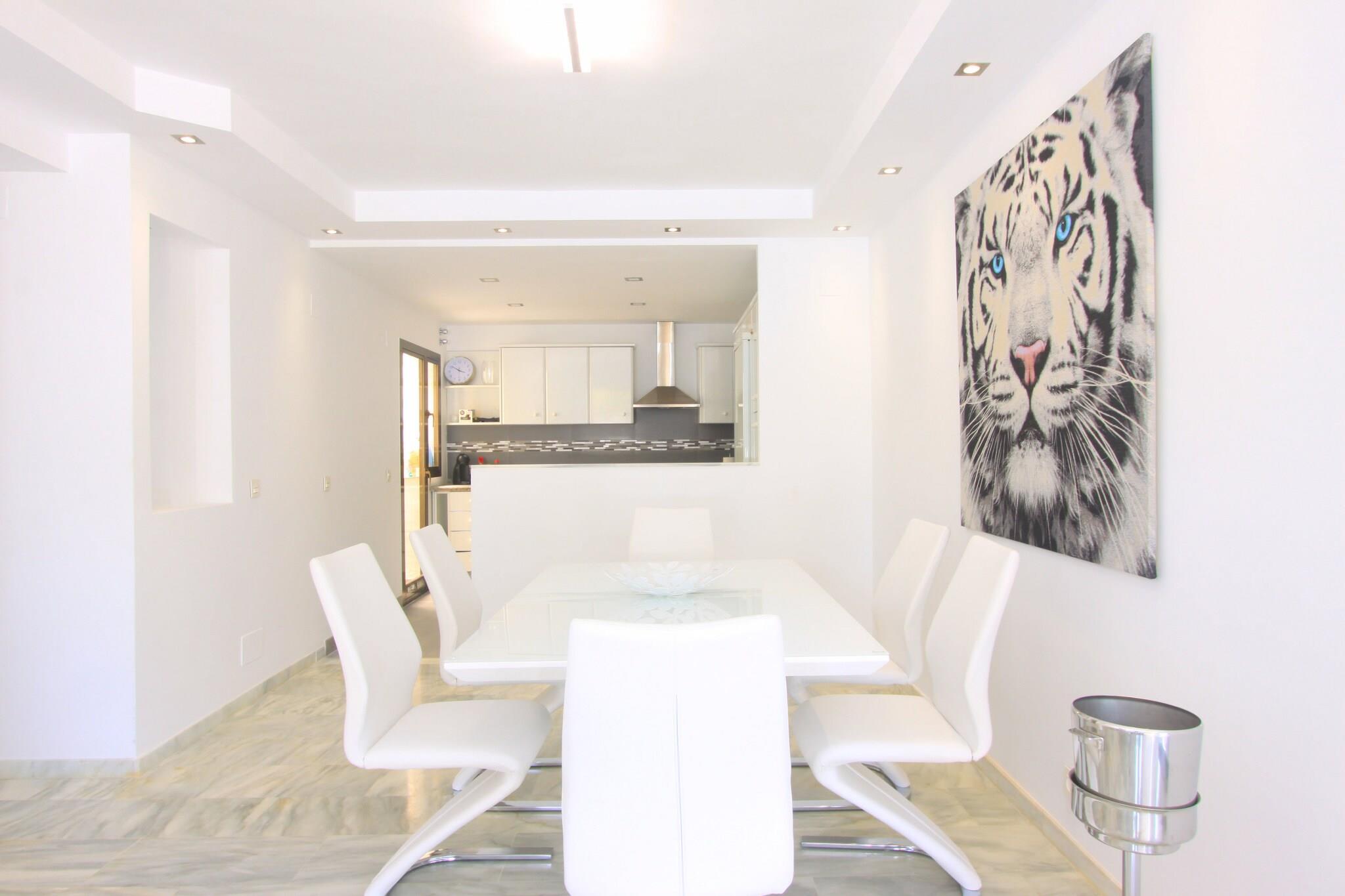 Denne stilfulde penthouse ligger i en førsteklasses beliggenhed ved stranden i Marbella og tilbyder komfortabel indkvartering til op til tolv gæster fordelt på flere etager, kun få skridt fra Middelhavet. Beliggende i et lukket boligområde, der blander kystcharme med moderne livsstil, er det et fremragende valg for familier eller grupper, der søger direkte adgang til sandstrande, afslappende poolområder og de livlige attraktioner på Spaniens prestigefyldte Costa del Sol. Træd indenfor og oplev et lyst, åbent opholds- og spiseområde, der er designet til afslappet komfort indenfor efter solrige stranddage. Det fuldt udstyrede køkken indeholder moderne apparater såsom køleskab, ovn, mikroovn, komfur og opvaskemaskine, så I nemt kan lave mad selv under hele jeres ophold. Fire pæne soveværelser er indrettet til at sikre en god nats søvn – herunder en kingsize-seng, 2 dobbeltsenge, 2 enkeltsenge og 2 sovesofaer – mens fire moderne badeværelser giver praktisk bekvemmelighed ved fælles ophold. Aircondition og gratis højhastigheds-Wi-Fi øger komforten året rundt. Skub de store terrassedøre op og træd ud på dit private uderum med udsigt over boligområdets have og pool. Denne møblerede terrasse indbyder til morgenmad i det fri og afslappede drinks om aftenen i den friske havbrise. Beboerne har også direkte adgang til det fælles poolområde – perfekt til at køle af under den varme andalusiske sol. Beliggende i gåafstand fra lokale restauranter, strandbarer og legepladser kombinerer denne penthouse-lejlighed bekvemmeligheden ved strandnærhed med nem adgang til Marbellas butikker, golfbaner og kulturelle attraktioner – hvilket gør den til et fremragende udgangspunkt for at udforske Costa del Sol.