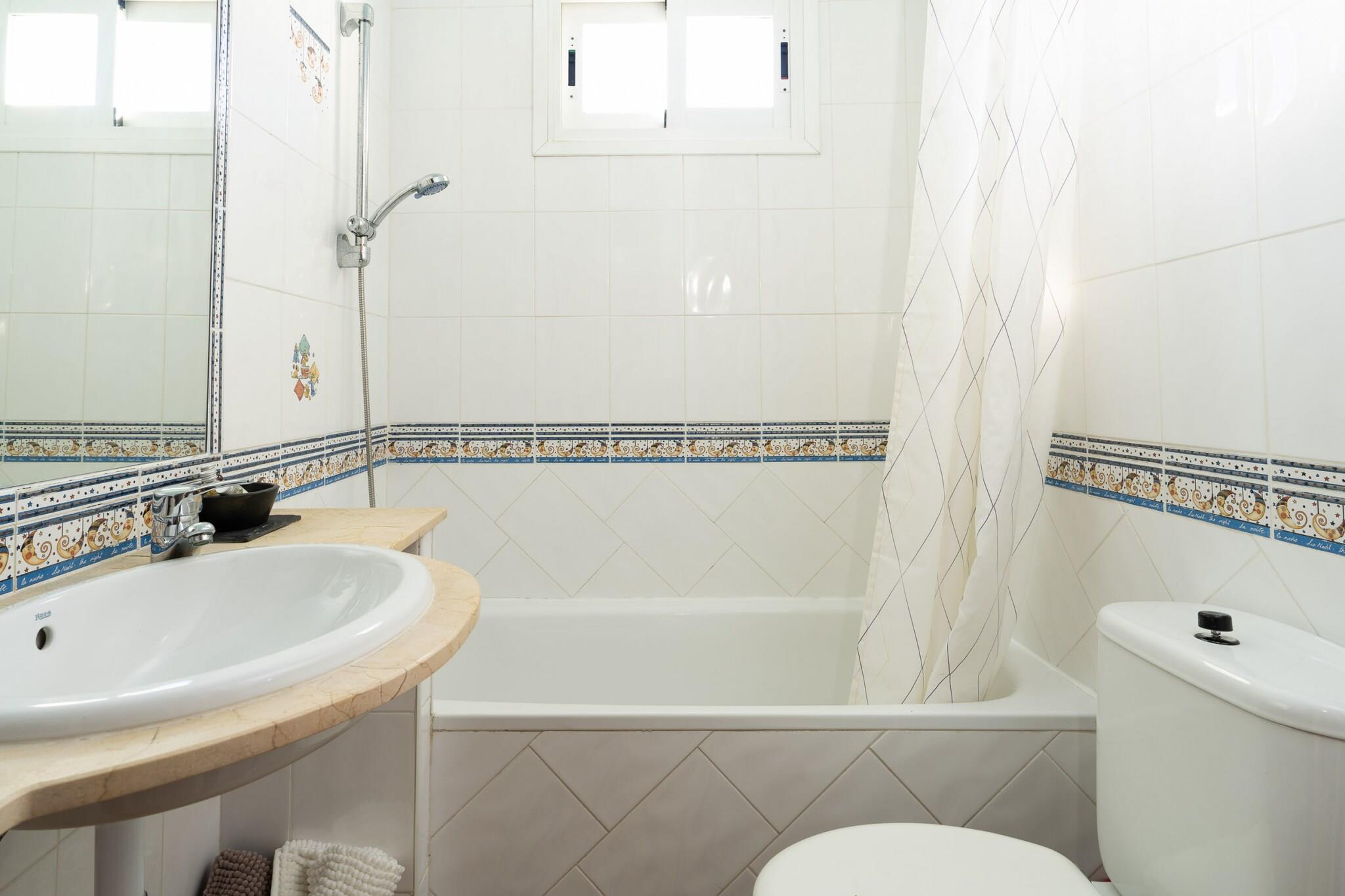 Dette hyggelige 2-værelses hus i Marbella tilbyder 130 m² komfortabelt boligareal og kan rumme op til 4 gæster. Perfekt til en familie eller en lille gruppe, det er ideelt beliggende kun 300 meter fra stranden og tæt på alle væsentlige faciliteter. Ejendommen har en smuk have med havemøbler, en indhegnet grund og en 40 m² stor terrasse, hvor du kan slappe af og nyde middelhavsklimaet. Indvendigt er huset fuldt udstyret med alt hvad du behøver for et problemfrit ophold, inklusive centralvarme, aircondition overalt og to blæsere for ekstra komfort. Den rummelige opholdsstue er udstyret med et tv, satellitkanaler på spansk, engelsk, tysk og fransk, en radio og en pejs til hyggelige aftener. Det åbne køkken er fuldt udstyret med gaskomfur, køleskab, mikroovn, ovn, fryser, opvaskemaskine og alt nødvendigt køkkenudstyr, herunder kaffemaskine, brødrister, kedel og juicer. For ekstra bekvemmelighed inkluderer huset også en vaskemaskine, strygejern og hårtørrer. Beliggende i et børnevenligt område og kun få skridt fra havet, er dette hus den perfekte base for at udforske Marbellas strande, restauranter og butikker. En busstation og et supermarked ligger kun en kort gåtur væk, hvilket gør denne ejendom til det ideelle valg for en afslappende ferie ved havet.