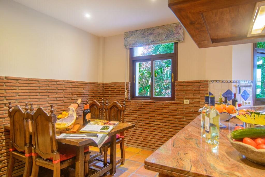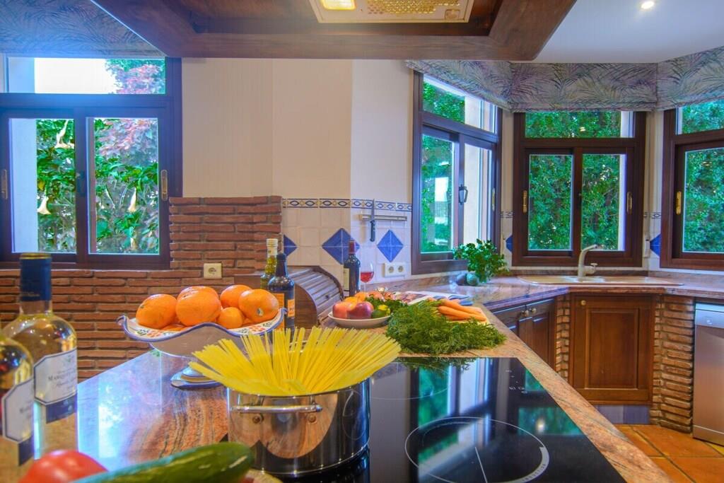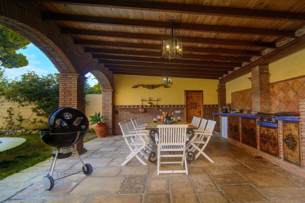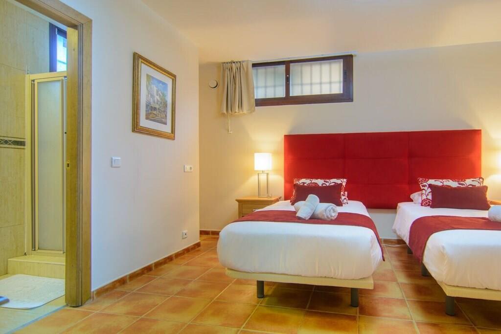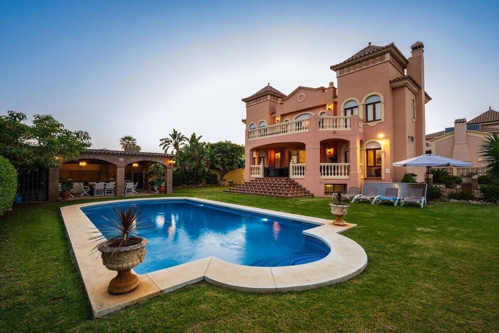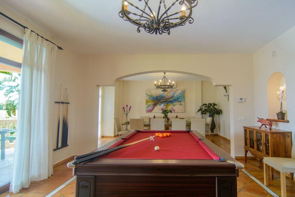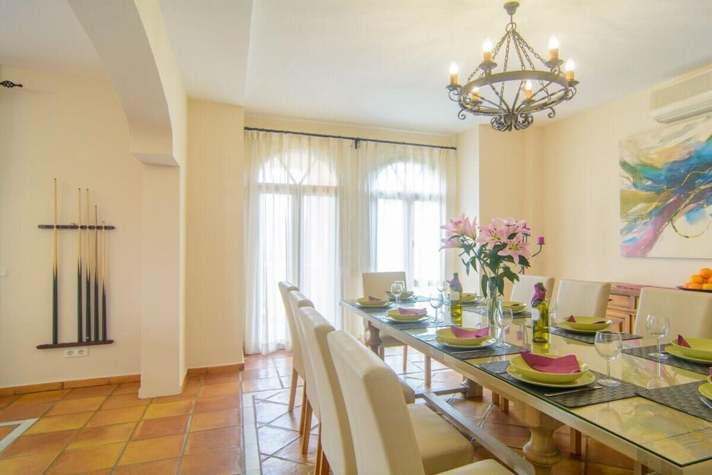 Diese Villa mit sechs Schlafzimmern (395m2) auf einem Grundstück von 700 m2 mit Salzwasser beheizten Pool (9,5mx5m) in der Region Marbella befindet sich am Strand in der traditionellen spanischen Stadt San Pedro de Alcantara in einer ruhigen Wohnanlage. Mit nur 400 Metern zum Strand und 600 Metern zum Stadtzentrum von San Pedro ist es in einer perfekten Lage. Puerto Banus ist gleich um die Ecke, 3 Minuten mit dem Auto und ein 30-minütiger Spaziergang auf der Promenade am Strand, die den ganzen Weg nach Marbella führen. Die Villa bietet 395m2 verteilt auf 3 Etagen, 6 Schlafzimmer, alle mit neuen Betten und TV, 3 Schlafzimmer mit eigenem Bad und 3 mit Zugang zur oberen Terrasse. In dem geräumigen Essbereich können 12 Personen bequem zusammen essen. Das Wohnzimmer hat eine schöne Sitzecke mit Ledersofas rund um den Fernseher und den Kamin und es hat auch einen Billardtisch, die große Unterhaltung für Sie und Ihre Lieben bietet. Von hier aus haben Sie auch Zugang zur Hauptterrasse des Hauses mit großzügigen Sitzgelegenheiten. Die Küche ist im rustikalen spanischen Stil gebaut und dekoriert und bietet moderne Geräte, die für ein schönes Kocherlebnis sorgen. Ein großes Plus ist, dass in der Küche eine Wasseraufbereitungsanlage installiert ist, d.h. das Leitungswasser in der Küche ist zu 100% trinkbar, was Ihnen Geld und ständige Fahrten zum Supermarkt erspart.Im Halbkeller befinden sich 2 Schlafzimmer und ein großer Unterhaltungsbereich mit Tischtennisplatte, Fußballtisch, Fernseher und Playstation. Auf dem Grundstück (700 m2) gibt es einen großen beheizten Salzwasser-Pool (9,5 x 5 m) mit einer Tiefe von 1 m bis 1,9 m, Sonnenliegen und eine große Außenküche mit Grill und Essbereich. ~ Innen Im Erdgeschoss befinden sich das Wohnzimmer, die Küche und ein Service-WC. Vom Flur aus gelangt man über eine Treppe in das Hauptschlafzimmer mit eigenem Bad, drei Gästeschlafzimmer und eine Terrasse. Im Halbkeller befinden sich zwei Gästeschlafzimmer mit jeweils eigenem Bad, ein Aufenthaltsraum und ein Unterhaltungsbereich mit Tischtennisplatte, Fußballtisch, großem Fernseher und Playstation. Das Wohnzimmer ist ein sehr angenehmer Raum, da es durch zwei große Glasschiebetüren mit der Terrasse verbunden ist, von der aus man einen schönen Blick auf den Garten und den privaten Pool hat. Der Billardtisch befindet sich in der Mitte des Wohnzimmers, zwischen der Lounge und dem Essbereich, und bietet Unterhaltung für alle Altersgruppen. Die schmiedeeisernen Kronleuchter verleihen dem Raum einen eleganten Touch. Der Essbereich ist um einen Holztisch für 12 Personen herum aufgebaut und vermittelt durch die Holzmöbel eine warme Atmosphäre. Die Sitzecke besteht aus drei großen bequemen Sofas und einem Couchtisch aus Holz. Von hier aus können Sie Ihre Fernsehsendung auf dem Flachbildfernseher genießen, der hoch an der Ziegelwand angebracht ist. Die beiden Lampen, die hoch an den Ziegelwänden angebracht sind, ermöglichen es Ihnen, den Raum im gedämpften Licht zu genießen. Auf dieser Ebene befindet sich die sehr einladende Küche mit großen Fenstern, durch die natürliches Licht einfällt. Die Holzmöbel und die Backsteinwände verwandeln das Kochen in eine sehr angenehme, gemütliche Tätigkeit. Obwohl die Möbel und das Aussehen der Küche klassisch sind, sind die Geräte alle modern. Die Kücheninsel ist mit Glaskeramik, einem Herd und einem leistungsstarken Dunstabzug ausgestattet. Die Küche ist mit einem Holztisch für vier Personen ausgestattet, falls Sie mit Ihren Liebsten gemütlich frühstücken möchten. Außerdem ist ein Wasserreinigungssystem installiert, so dass das Leitungswasser in der Küche unbedenklich zu trinken ist. Wenn Sie die Treppe hinaufgehen, gelangen Sie auf die erste Ebene der Villa. Hier finden Sie das Hauptschlafzimmer mit eigenem Bad und drei Gästezimmer, die sich ein Familienbad teilen. Das Hauptschlafzimmer hat ein Doppelbett (180x200 cm), sehr geräumige hölzerne Einbauschränke, einen Schminktisch mit Spiegel, eine elegante Holzbank. Durch eine große Schiebetür gelangt man auf die Terrasse im Obergeschoss, von der aus man einen schönen Blick auf die Urbanisation hat. Das eigene Badezimmer verfügt über ein Doppelwaschbecken, eine große begehbare Dusche, eine Toilette und ein Bidet. Das Fenster lässt natürliches Licht herein. Die hölzernen Badezimmermöbel und die eleganten Fliesen verleihen diesem Raum ein traditionelles Ambiente. Zwei der Gästeschlafzimmer haben jeweils zwei Einzelbetten (90x200cm). Das erste Gästeschlafzimmer bietet einen Ausgang zur Terrasse im ersten Stock. Durch die Fenster dieses Schlafzimmers können Sie die schöne Urbanisation sowie den Garten und den Poolbereich bewundern. Sie haben viel Stauraum, da das Schlafzimmer über geräumige Einbauschränke verfügt. Die Nachttische mit Lampen vervollständigen den modernen Look dieses Gästezimmers. Das zweite Gästeschlafzimmer hat drei große Fenster, die einen weiten Blick auf die exotische Vegetation bieten. Dieses Schlafzimmer hat eine Kommode mit einem großen Spiegel darüber und einen Nachttisch mit Lampe mit Schirm. Das dritte Gästezimmer hat einen Schminktisch mit Spiegel, Nachttische mit Lampen und einen geräumigen Einbauschrank. Von diesem Schlafzimmer aus haben Sie Zugang zur Terrasse mit Blick auf das Grundstück und die Urbanisation. Das Familienbadezimmer, das von diesen Schlafzimmern gemeinsam genutzt wird, verfügt über eine geräumige, begehbare Dusche, ein Doppelwaschbecken, eine Toilette und ein Bidet. Die Möbel sind aus Holz, die Fliesen sind traditionell. Im Halbkeller befinden sich zwei Gästeschlafzimmer mit je einem Bad en suite. Das erste Gästezimmer hat zwei Einzelbetten (90x200cm), einen Flachbildfernseher, Nachttische mit Lampen, ein kleines Fenster und Einbauschränke. Das zweite Gästeschlafzimmer hat zwei Einzelbetten (90x200cm). Die zwei Nachttische mit Lampen, der Flachbildfernseher, das Fenster und der Einbauschrank m