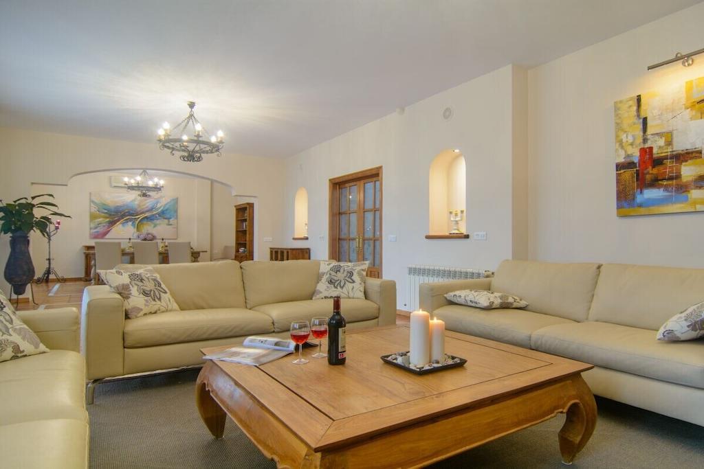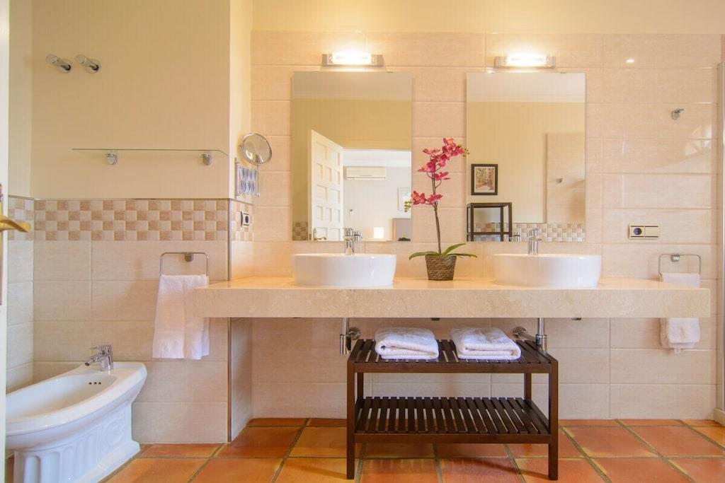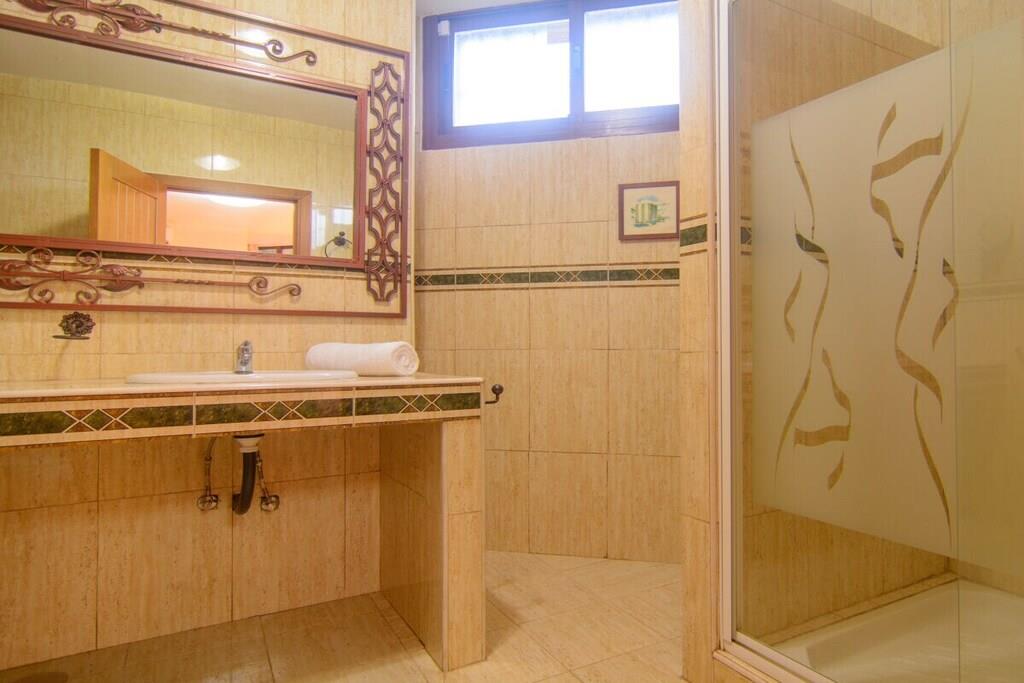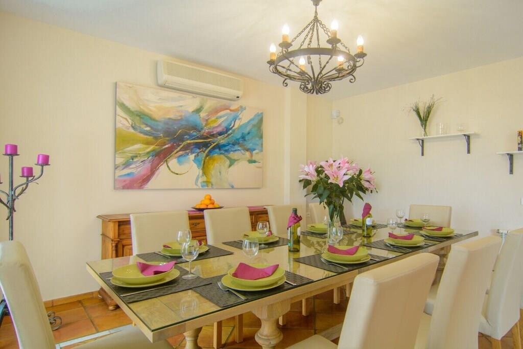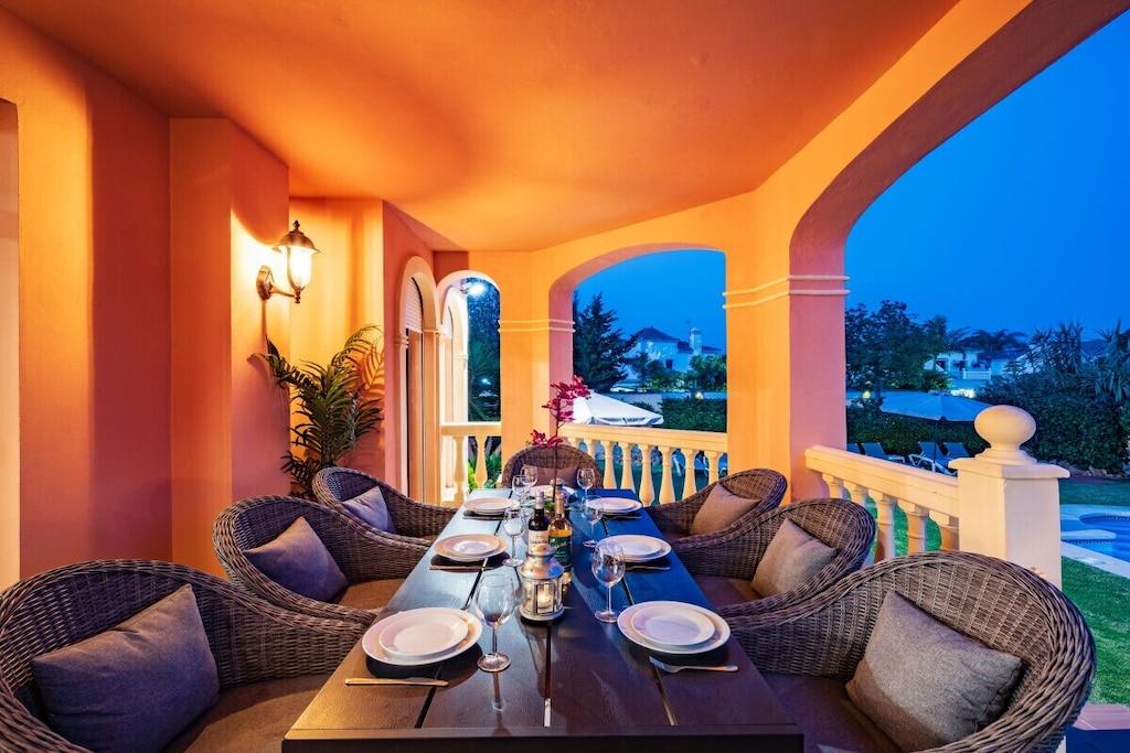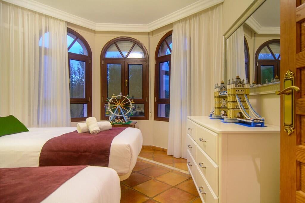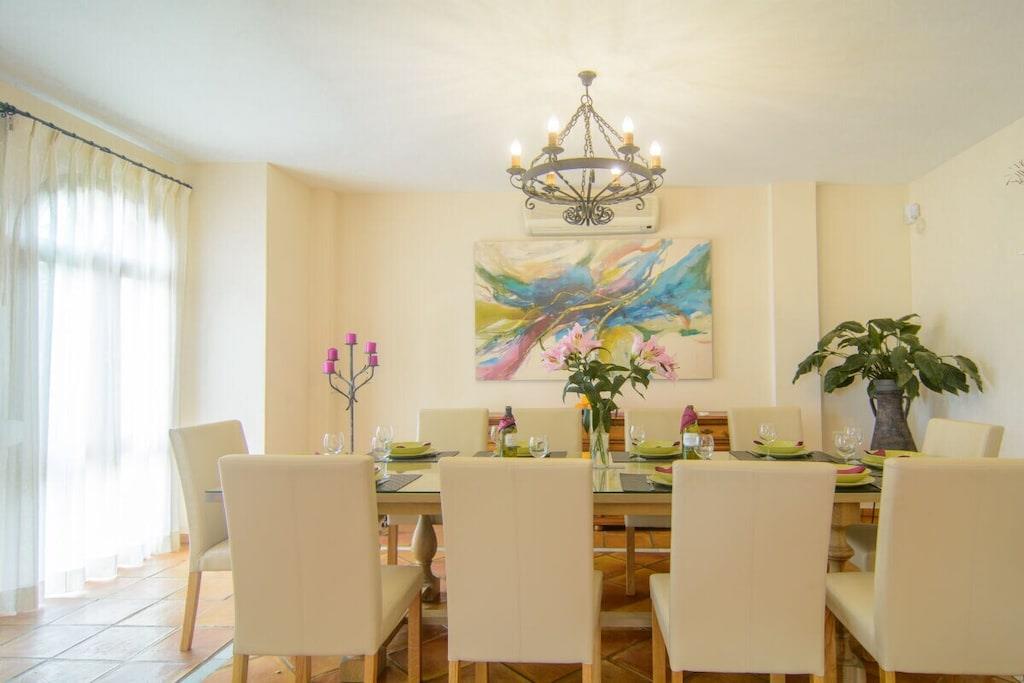 Diese Villa mit sechs Schlafzimmern (395m2) auf einem Grundstück von 700 m2 mit Salzwasser beheizten Pool (9,5mx5m) in der Region Marbella befindet sich am Strand in der traditionellen spanischen Stadt San Pedro de Alcantara in einer ruhigen Wohnanlage. Mit nur 400 Metern zum Strand und 600 Metern zum Stadtzentrum von San Pedro ist es in einer perfekten Lage. Puerto Banus ist gleich um die Ecke, 3 Minuten mit dem Auto und ein 30-minütiger Spaziergang auf der Promenade am Strand, die den ganzen Weg nach Marbella führen. Die Villa bietet 395m2 verteilt auf 3 Etagen, 6 Schlafzimmer, alle mit neuen Betten und TV, 3 Schlafzimmer mit eigenem Bad und 3 mit Zugang zur oberen Terrasse. In dem geräumigen Essbereich können 12 Personen bequem zusammen essen. Das Wohnzimmer hat eine schöne Sitzecke mit Ledersofas rund um den Fernseher und den Kamin und es hat auch einen Billardtisch, die große Unterhaltung für Sie und Ihre Lieben bietet. Von hier aus haben Sie auch Zugang zur Hauptterrasse des Hauses mit großzügigen Sitzgelegenheiten. Die Küche ist im rustikalen spanischen Stil gebaut und dekoriert und bietet moderne Geräte, die für ein schönes Kocherlebnis sorgen. Ein großes Plus ist, dass in der Küche eine Wasseraufbereitungsanlage installiert ist, d.h. das Leitungswasser in der Küche ist zu 100% trinkbar, was Ihnen Geld und ständige Fahrten zum Supermarkt erspart.Im Halbkeller befinden sich 2 Schlafzimmer und ein großer Unterhaltungsbereich mit Tischtennisplatte, Fußballtisch, Fernseher und Playstation. Auf dem Grundstück (700 m2) gibt es einen großen beheizten Salzwasser-Pool (9,5 x 5 m) mit einer Tiefe von 1 m bis 1,9 m, Sonnenliegen und eine große Außenküche mit Grill und Essbereich. ~ Innen Im Erdgeschoss befinden sich das Wohnzimmer, die Küche und ein Service-WC. Vom Flur aus gelangt man über eine Treppe in das Hauptschlafzimmer mit eigenem Bad, drei Gästeschlafzimmer und eine Terrasse. Im Halbkeller befinden sich zwei Gästeschlafzimmer mit jeweils eigenem Bad, ein Aufenthaltsraum und ein Unterhaltungsbereich mit Tischtennisplatte, Fußballtisch, großem Fernseher und Playstation. Das Wohnzimmer ist ein sehr angenehmer Raum, da es durch zwei große Glasschiebetüren mit der Terrasse verbunden ist, von der aus man einen schönen Blick auf den Garten und den privaten Pool hat. Der Billardtisch befindet sich in der Mitte des Wohnzimmers, zwischen der Lounge und dem Essbereich, und bietet Unterhaltung für alle Altersgruppen. Die schmiedeeisernen Kronleuchter verleihen dem Raum einen eleganten Touch. Der Essbereich ist um einen Holztisch für 12 Personen herum aufgebaut und vermittelt durch die Holzmöbel eine warme Atmosphäre. Die Sitzecke besteht aus drei großen bequemen Sofas und einem Couchtisch aus Holz. Von hier aus können Sie Ihre Fernsehsendung auf dem Flachbildfernseher genießen, der hoch an der Ziegelwand angebracht ist. Die beiden Lampen, die hoch an den Ziegelwänden angebracht sind, ermöglichen es Ihnen, den Raum im gedämpften Licht zu genießen. Auf dieser Ebene befindet sich die sehr einladende Küche mit großen Fenstern, durch die natürliches Licht einfällt. Die Holzmöbel und die Backsteinwände verwandeln das Kochen in eine sehr angenehme, gemütliche Tätigkeit. Obwohl die Möbel und das Aussehen der Küche klassisch sind, sind die Geräte alle modern. Die Kücheninsel ist mit Glaskeramik, einem Herd und einem leistungsstarken Dunstabzug ausgestattet. Die Küche ist mit einem Holztisch für vier Personen ausgestattet, falls Sie mit Ihren Liebsten gemütlich frühstücken möchten. Außerdem ist ein Wasserreinigungssystem installiert, so dass das Leitungswasser in der Küche unbedenklich zu trinken ist. Wenn Sie die Treppe hinaufgehen, gelangen Sie auf die erste Ebene der Villa. Hier finden Sie das Hauptschlafzimmer mit eigenem Bad und drei Gästezimmer, die sich ein Familienbad teilen. Das Hauptschlafzimmer hat ein Doppelbett (180x200 cm), sehr geräumige hölzerne Einbauschränke, einen Schminktisch mit Spiegel, eine elegante Holzbank. Durch eine große Schiebetür gelangt man auf die Terrasse im Obergeschoss, von der aus man einen schönen Blick auf die Urbanisation hat. Das eigene Badezimmer verfügt über ein Doppelwaschbecken, eine große begehbare Dusche, eine Toilette und ein Bidet. Das Fenster lässt natürliches Licht herein. Die hölzernen Badezimmermöbel und die eleganten Fliesen verleihen diesem Raum ein traditionelles Ambiente. Zwei der Gästeschlafzimmer haben jeweils zwei Einzelbetten (90x200cm). Das erste Gästeschlafzimmer bietet einen Ausgang zur Terrasse im ersten Stock. Durch die Fenster dieses Schlafzimmers können Sie die schöne Urbanisation sowie den Garten und den Poolbereich bewundern. Sie haben viel Stauraum, da das Schlafzimmer über geräumige Einbauschränke verfügt. Die Nachttische mit Lampen vervollständigen den modernen Look dieses Gästezimmers. Das zweite Gästeschlafzimmer hat drei große Fenster, die einen weiten Blick auf die exotische Vegetation bieten. Dieses Schlafzimmer hat eine Kommode mit einem großen Spiegel darüber und einen Nachttisch mit Lampe mit Schirm. Das dritte Gästezimmer hat einen Schminktisch mit Spiegel, Nachttische mit Lampen und einen geräumigen Einbauschrank. Von diesem Schlafzimmer aus haben Sie Zugang zur Terrasse mit Blick auf das Grundstück und die Urbanisation. Das Familienbadezimmer, das von diesen Schlafzimmern gemeinsam genutzt wird, verfügt über eine geräumige, begehbare Dusche, ein Doppelwaschbecken, eine Toilette und ein Bidet. Die Möbel sind aus Holz, die Fliesen sind traditionell. Im Halbkeller befinden sich zwei Gästeschlafzimmer mit je einem Bad en suite. Das erste Gästezimmer hat zwei Einzelbetten (90x200cm), einen Flachbildfernseher, Nachttische mit Lampen, ein kleines Fenster und Einbauschränke. Das zweite Gästeschlafzimmer hat zwei Einzelbetten (90x200cm). Die zwei Nachttische mit Lampen, der Flachbildfernseher, das Fenster und der Einbauschrank m
