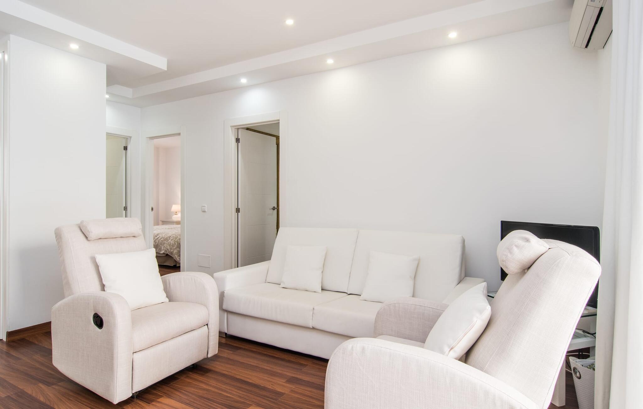 Bag etagehusets ret uanselige facade med topbeliggenhed, kun få hundrede meter fra havnen og havnestranden, er der en moderne, puristisk 3-værelses stuelejlighed med parkering på gaden. Ikke givet for en bybolig åbner "Marieta Bajos" sig ud mod bagsiden og byder på en afslapningsoase midt i kvarteret: Omgivet af mure, med et lille grønt område og en terrasse beskyttet af næste etage, højdepunktet her er en 10 m lang pool. Gæsterne kan nemt skifte frem og tilbage mellem stranden og "hjemmevandet" og kan opdeles som de vil og gå deres egen vej. I løbet af grillaftenen er der ingen, der kigger på jeres tallerken fra oven i jeres friluftsniche med direkte forbindelse til køkkenet, og en eller to liggestole får også plads i skyggen ved siden af ??spisebordet.