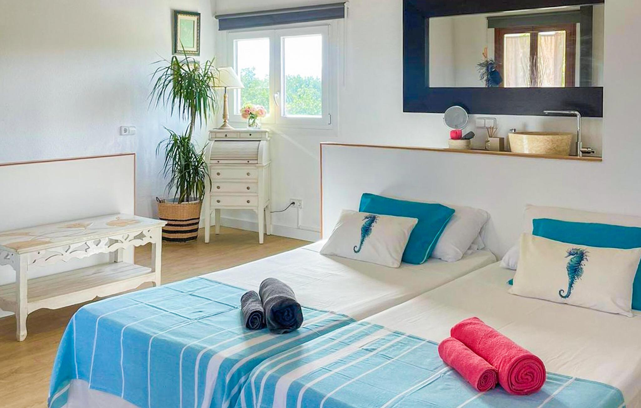Dette hus tilbyder smukke rammer for en varieret og afslappende ferie på Mallorca. Her bor I i fredelige omgivelser, mens I nyder den autentiske ø-livsstil. Den rummelige opholdsstue med en behagelig sofa, tv og bogreol lægger op til at slappe af. Slap af, læs en god bog eller nyd at tilbringe tid med familie eller venner. Det tilstødende køkken er fuldt udstyret med moderne apparater – ideelt til at tilberede regionale delikatesser.