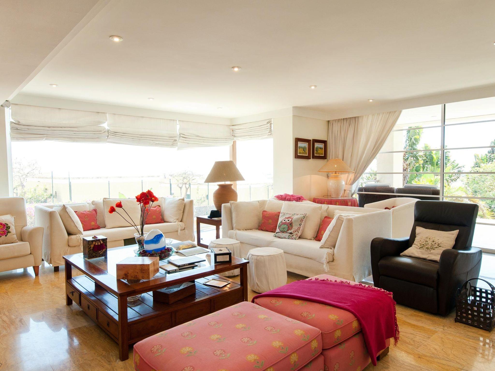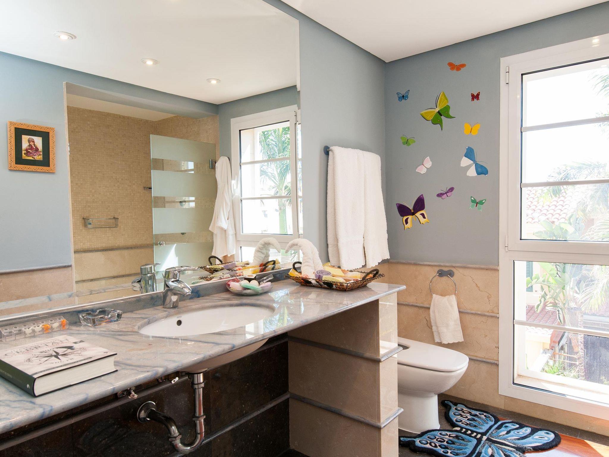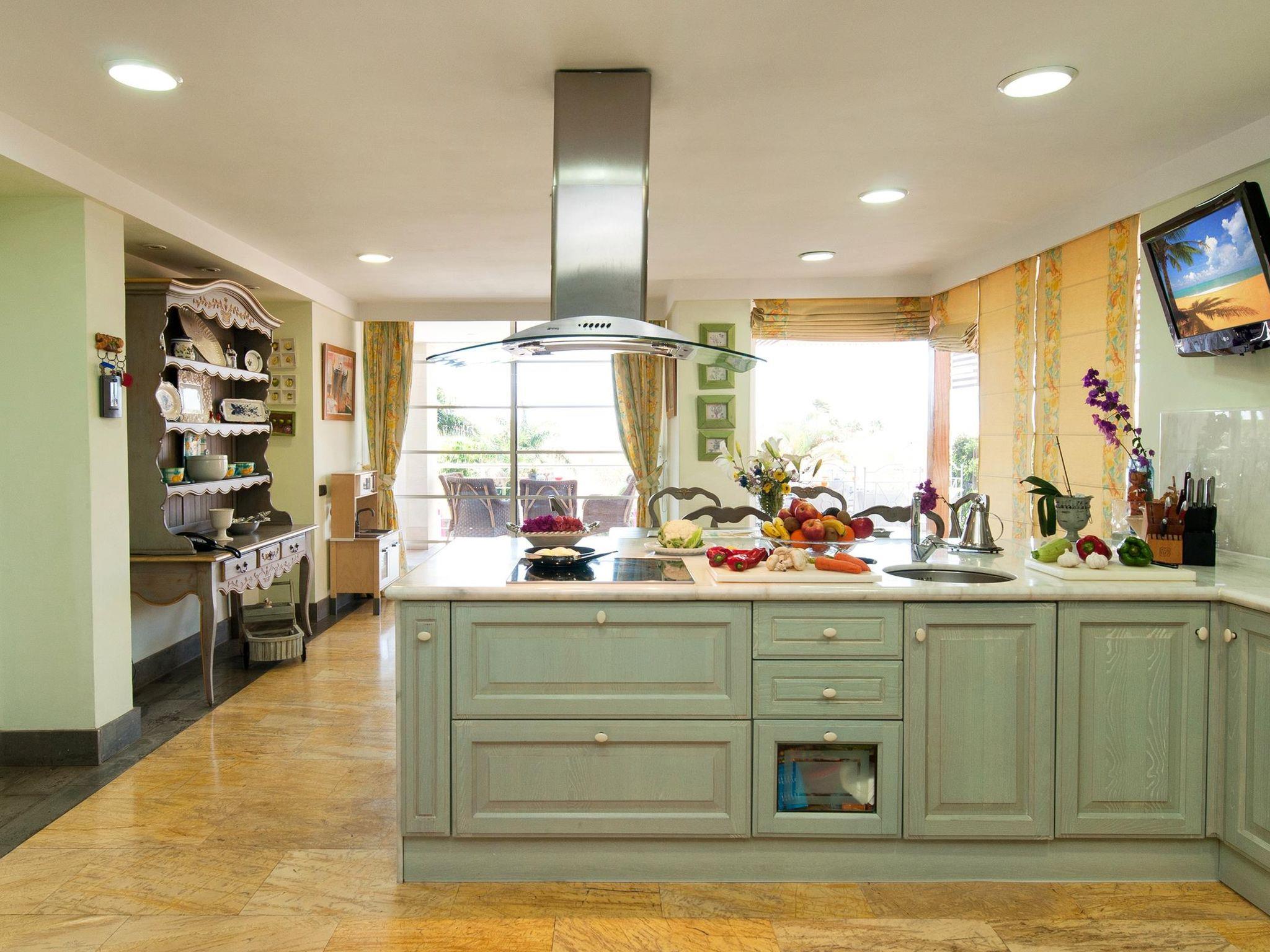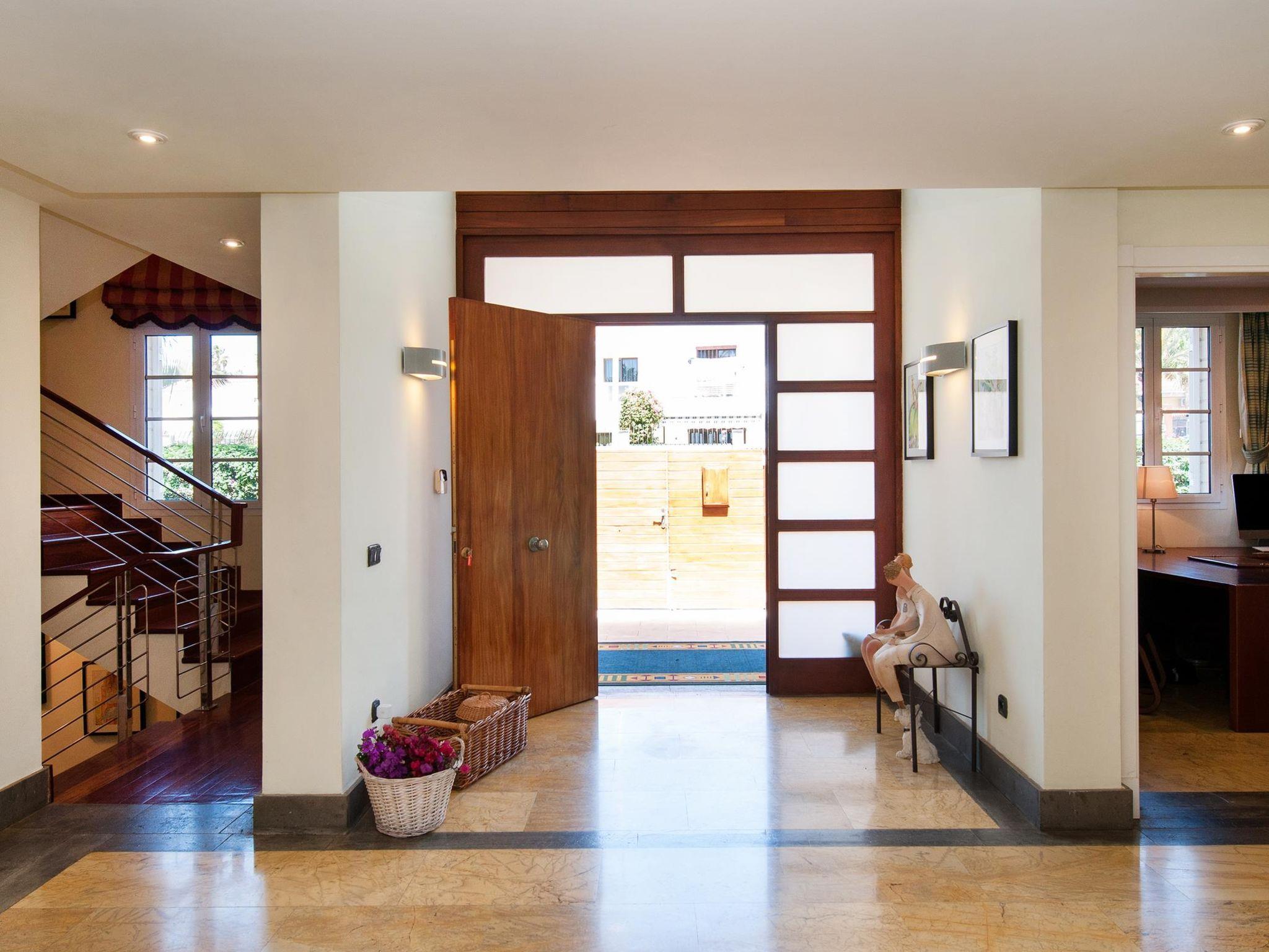 Large, comfortable single-family house. On the outskirts Maspalomas, in a quiet position. Private: garden (fenced) with lawn, swimming pool angular (11 x 5 m, depth 160 - 140 cm, seasonal availability: 01.Jan. - 31.Dec.). Outdoor shower, patio, garden furniture, barbecue. In the house: billiard table. Single garage, public parking on the road. Bus stop "Vistamar" 30 m. The owner does not accept any youth groups. Neighbourhood highly sensitive to noise. Quietness and good behaviour expected.
