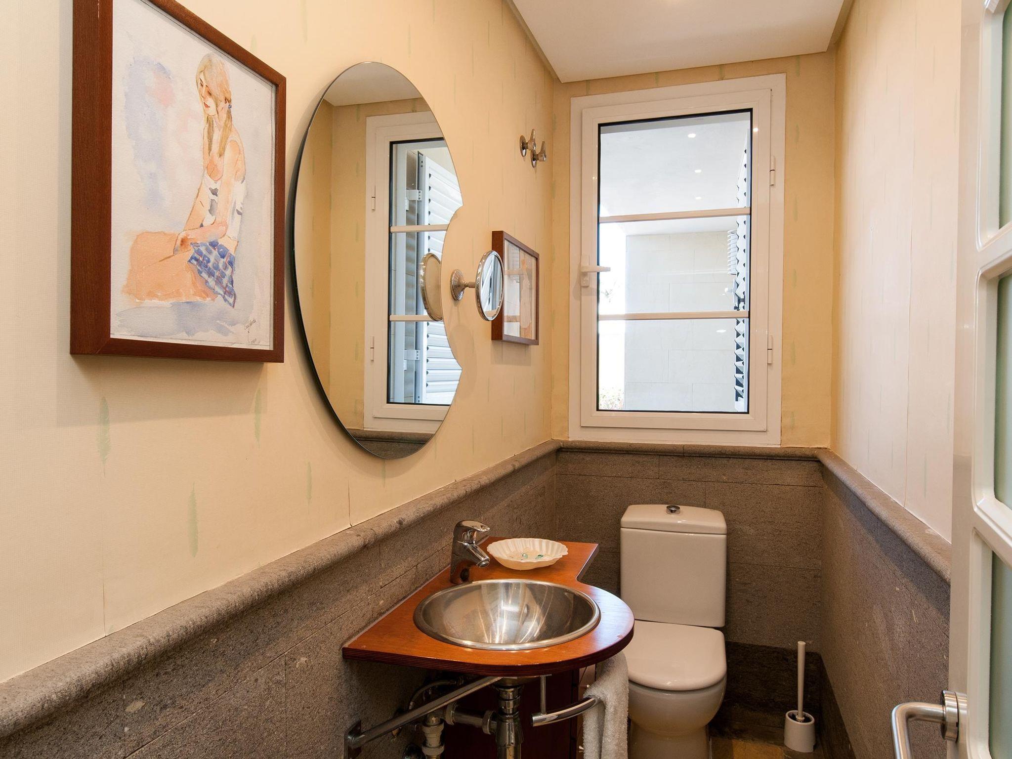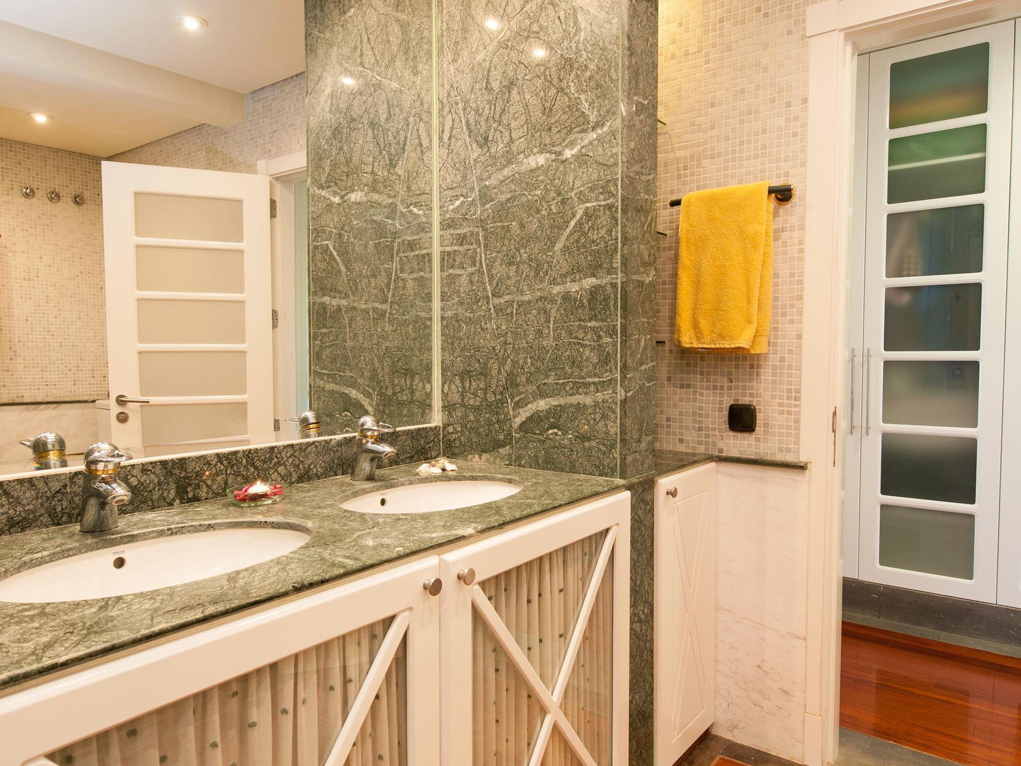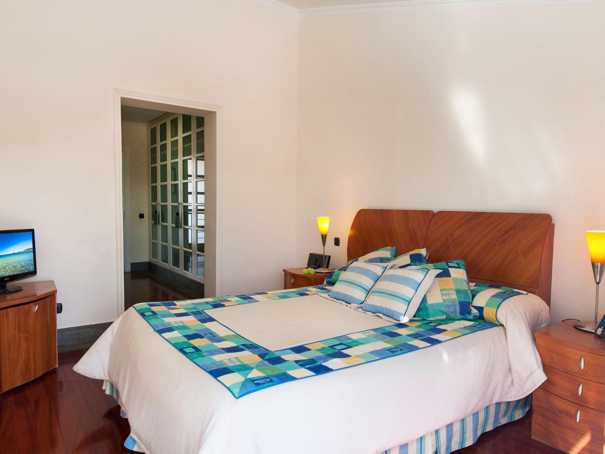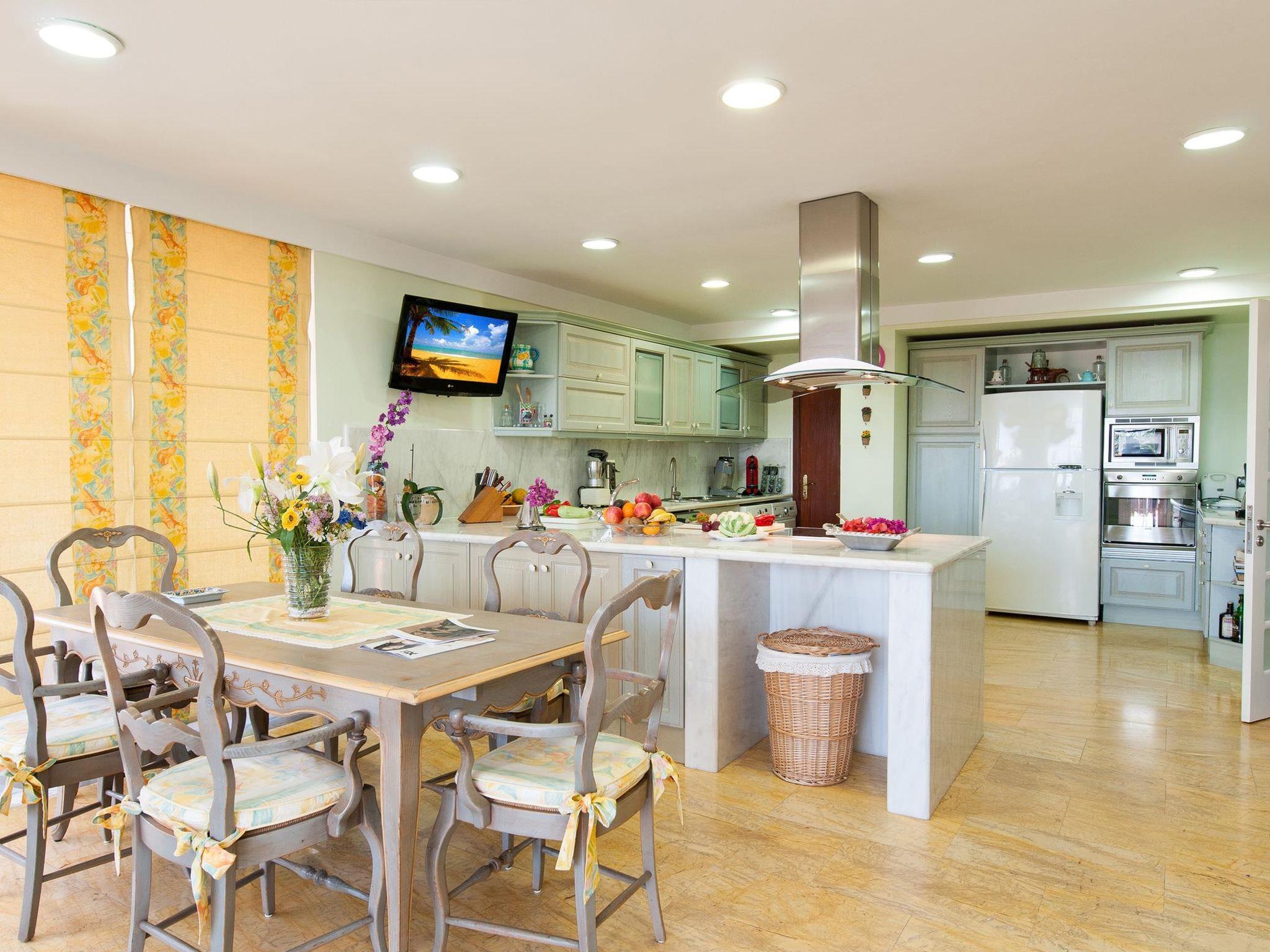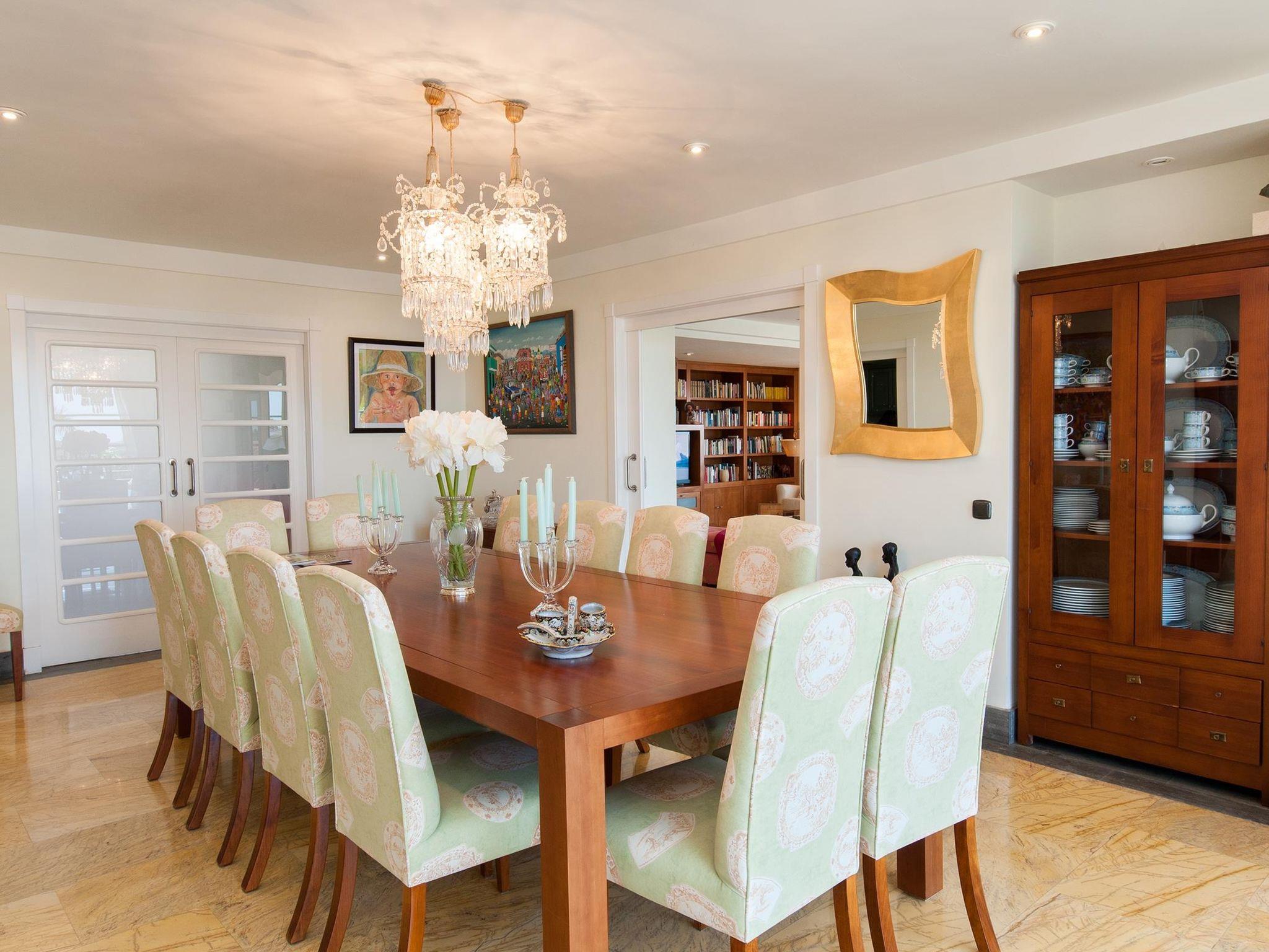 "Sonnenland 12", 7-room house 634 m2 on 3 levels. Comfortable and modern furnishings: living/dining room with dining table, satellite TV and digital TV. Kitchen (oven, dishwasher, 4 ceramic glass hob hotplates, toaster, kettle, microwave, freezer, electric coffee machine) with dining table. Sep. WC. On the lower ground floor: 1 room with 2 beds and bath/WC. Exit to the terrace, to the swimming pool. 1 room with 2 beds and bath/WC. Living room with digital TV. Upper floor: 1 room with 1 french bed and shower/WC. 2 rooms, each room with 1 french bed and shower/bidet/WC. 1 room with 1 french bed and shower/WC. Patio. Terrace furniture, barbecue, deck chairs. Of the sea and the mountains. Facilities: washing machine, dryer, safe, iron, children's high chair, baby cot for up to 2 year olds, hair dryer. Internet (WiFi, free). Garage (1 car). Please note: non-smoking house. 2016/7671 // Reg. Nr.: ESFCTU0000350120001799270000000000000VV-35-1-00151704
