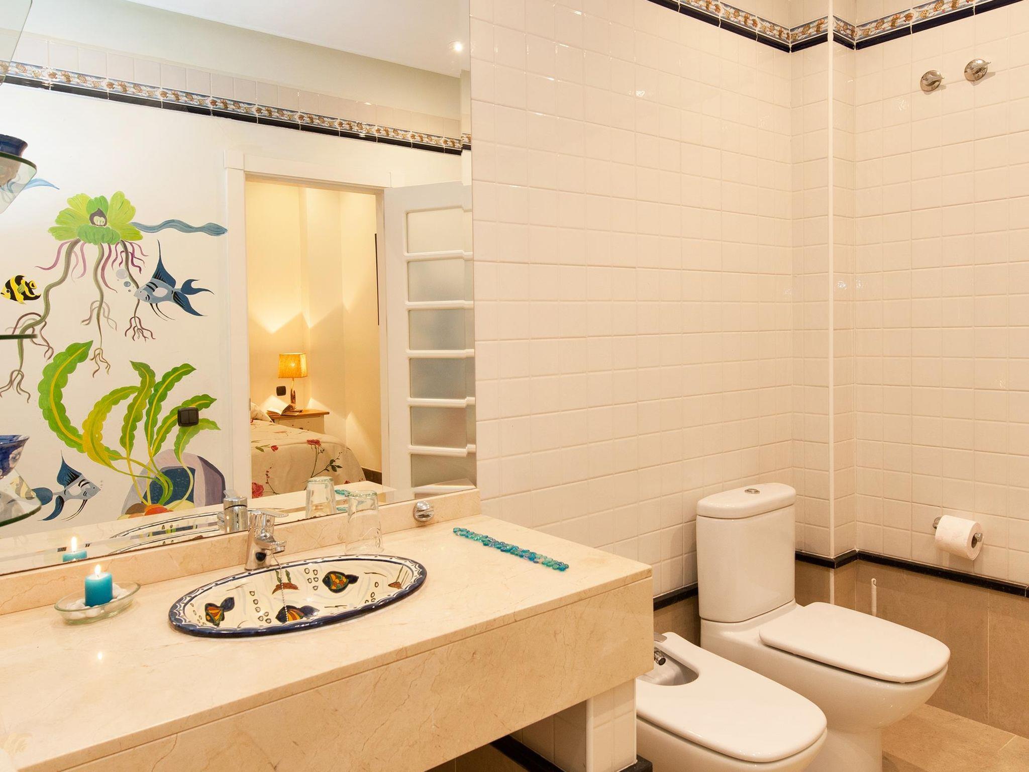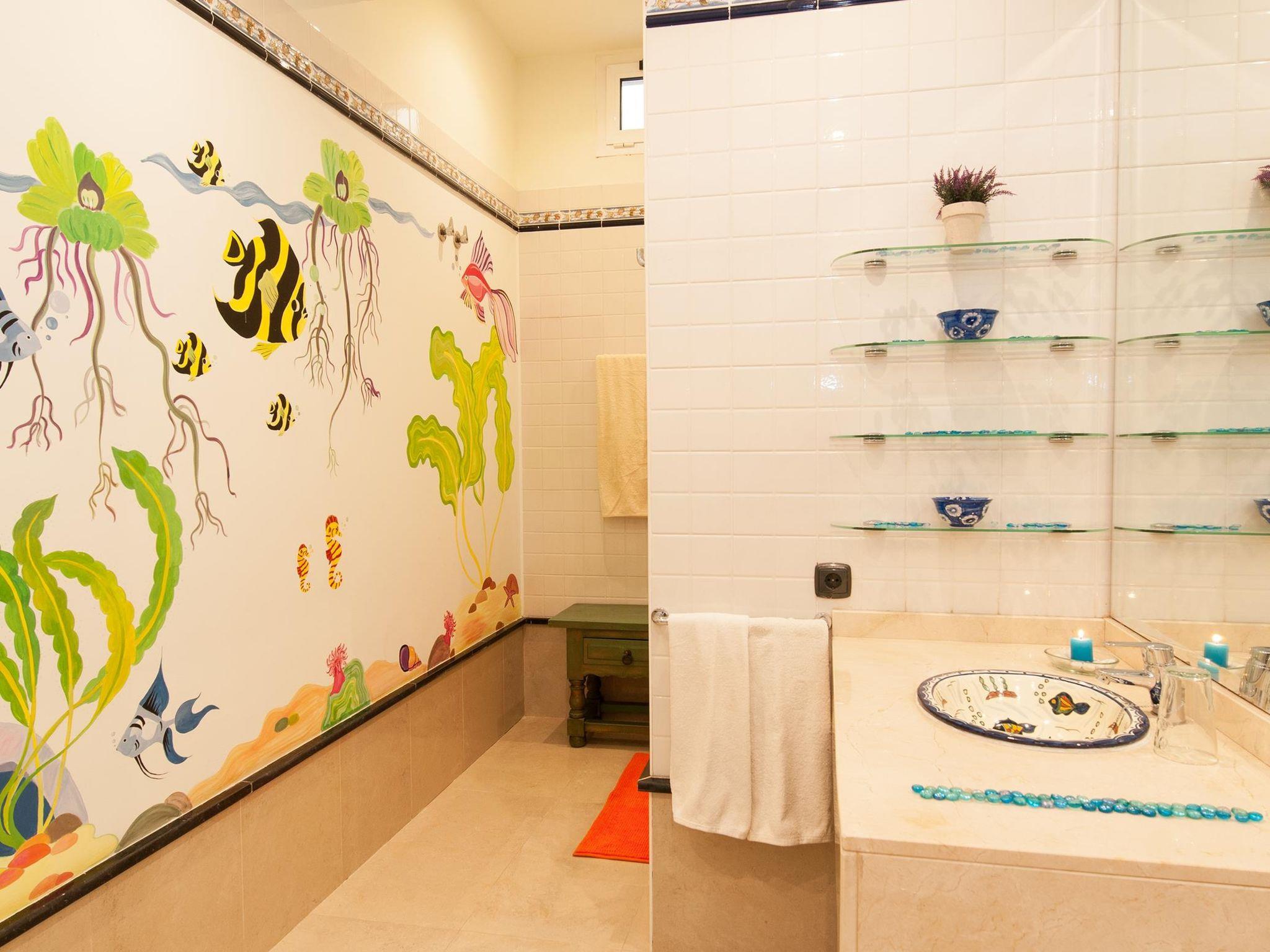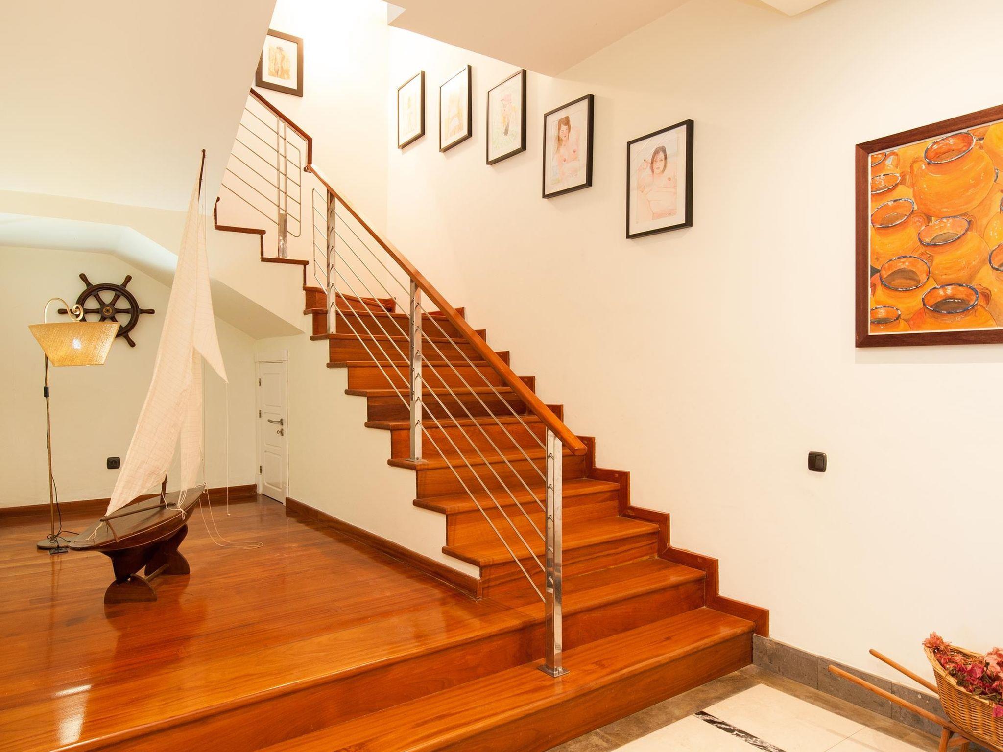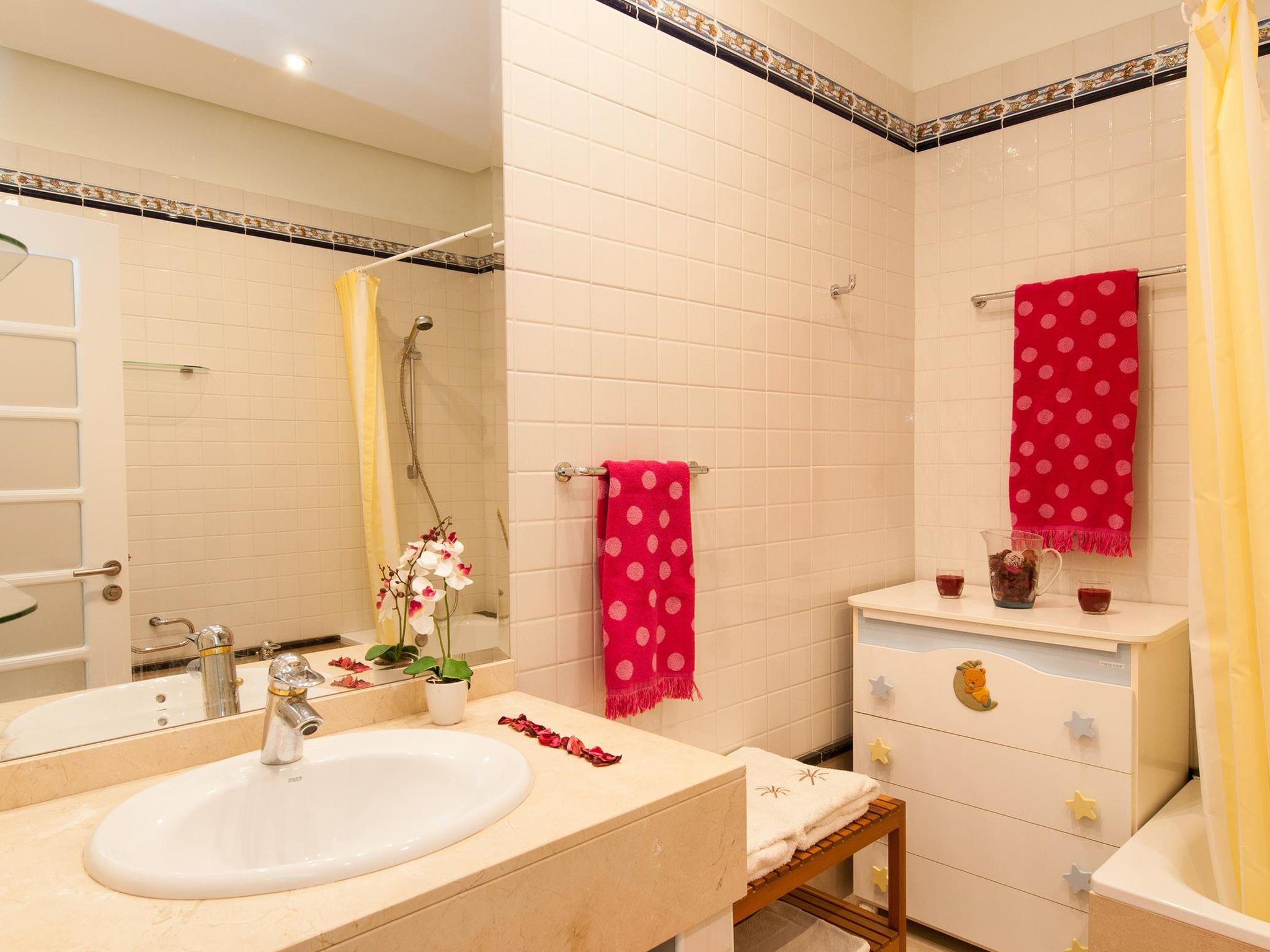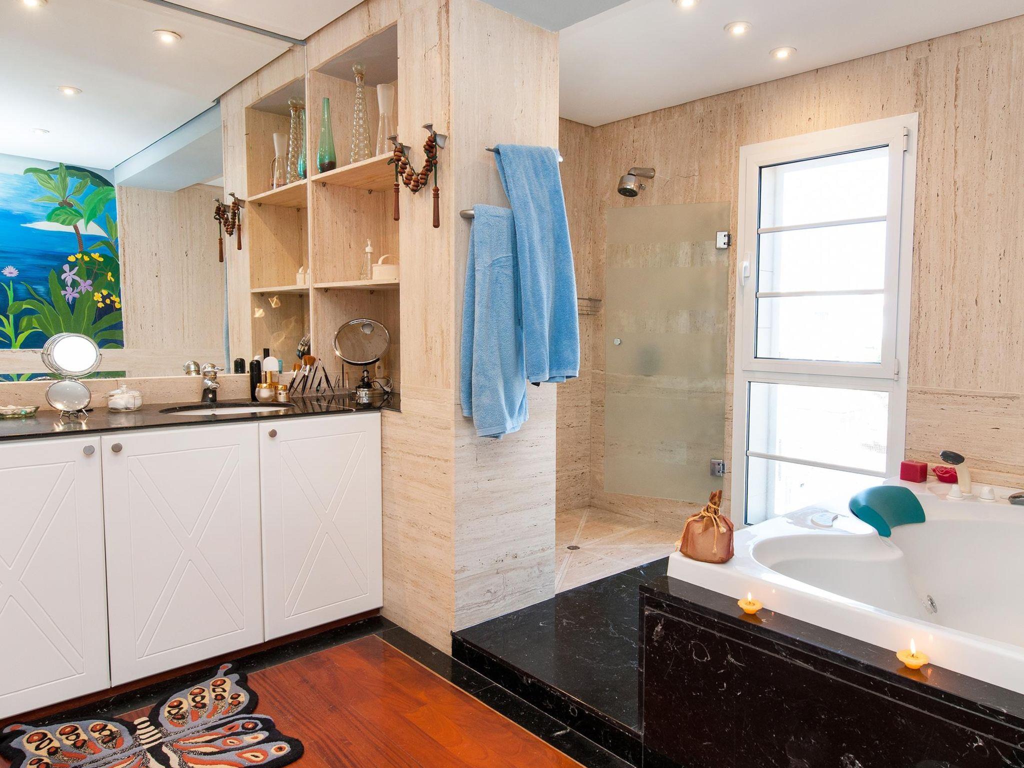 "Sonnenland 12", 7-room house 634 m2 on 3 levels. Comfortable and modern furnishings: living/dining room with dining table, satellite TV and digital TV. Kitchen (oven, dishwasher, 4 ceramic glass hob hotplates, toaster, kettle, microwave, freezer, electric coffee machine) with dining table. Sep. WC. On the lower ground floor: 1 room with 2 beds and bath/WC. Exit to the terrace, to the swimming pool. 1 room with 2 beds and bath/WC. Living room with digital TV. Upper floor: 1 room with 1 french bed and shower/WC. 2 rooms, each room with 1 french bed and shower/bidet/WC. 1 room with 1 french bed and shower/WC. Patio. Terrace furniture, barbecue, deck chairs. Of the sea and the mountains. Facilities: washing machine, dryer, safe, iron, children's high chair, baby cot for up to 2 year olds, hair dryer. Internet (WiFi, free). Garage (1 car). Please note: non-smoking house. 2016/7671 // Reg. Nr.: ESFCTU0000350120001799270000000000000VV-35-1-00151704