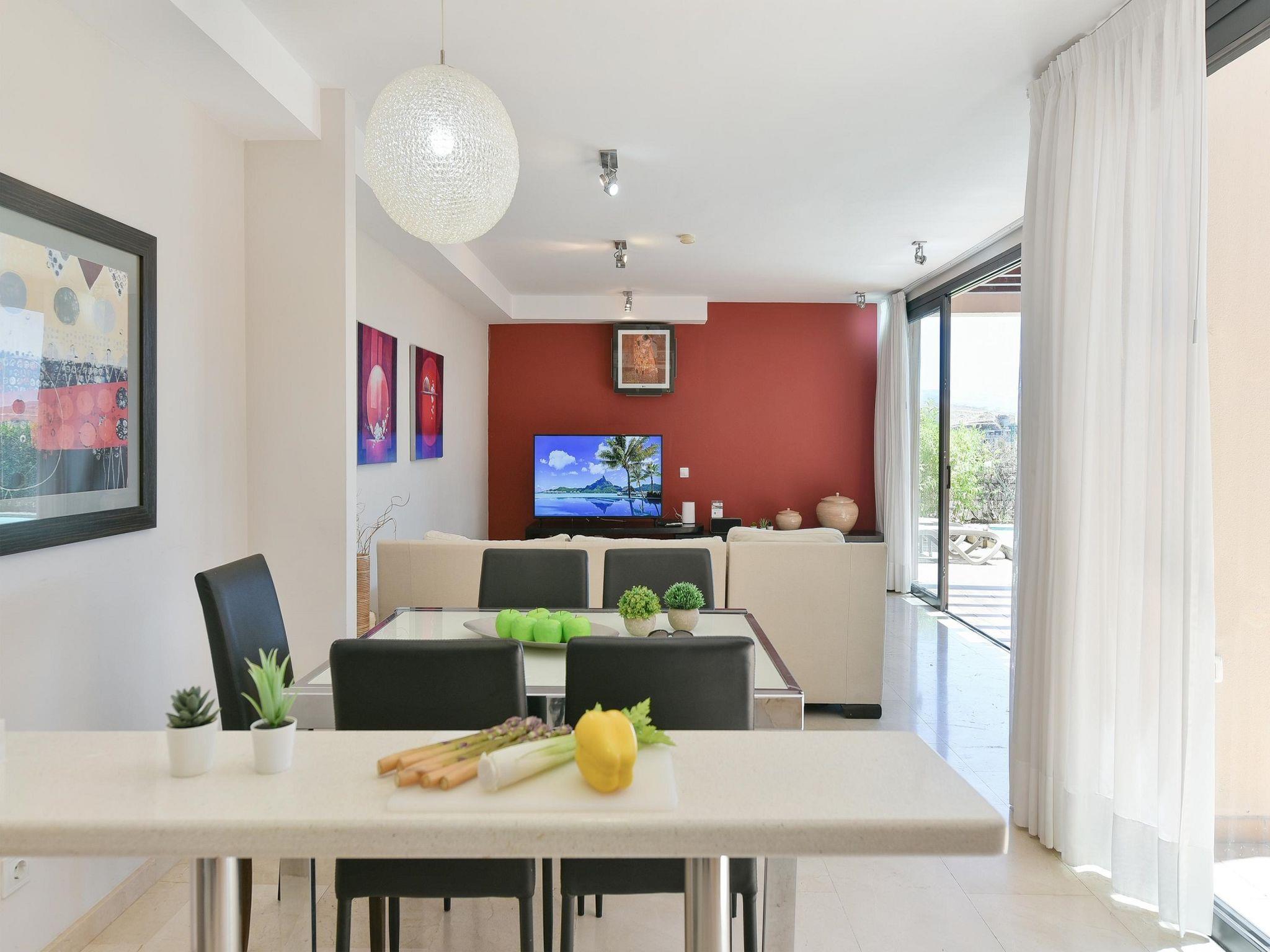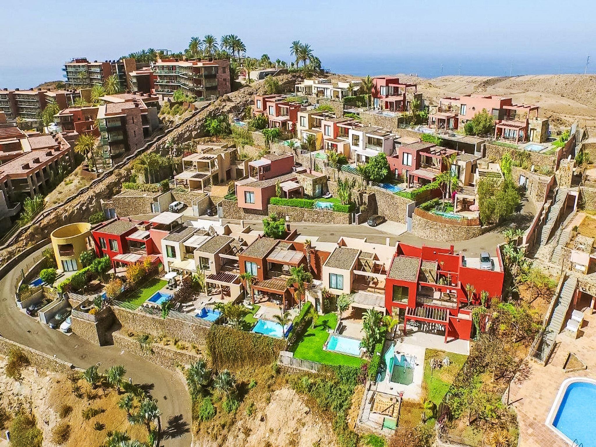 Child friendly, modern, comfortable villa "Las Terrazas 12". Above Maspalomas, in the centre of Salobre Golf Resort, on the outskirts Maspalomas, in a secluded, sunny position on a slope. Private: garden (fenced) with lawn, swimming pool angular (6 x 2 m, depth 140 - 140 cm, seasonal availability: 01.Jan. - 31.Dec.). Outdoor shower, barbecue, parking on the premises. Shop 1 km, grocery 12 km, supermarket 1 km, restaurant 12 km, bus stop "Las Crucitas" 19 km, sandy beach 12 km. Golf course (18 hole) 1 km. The owner does not accept any youth groups. Please note: airfield 39 km from the property. Neighbourhood highly sensitive to noise. Quietness and good behaviour expected.
