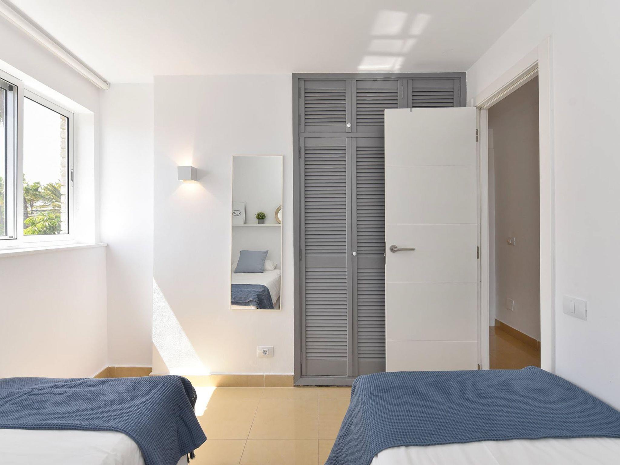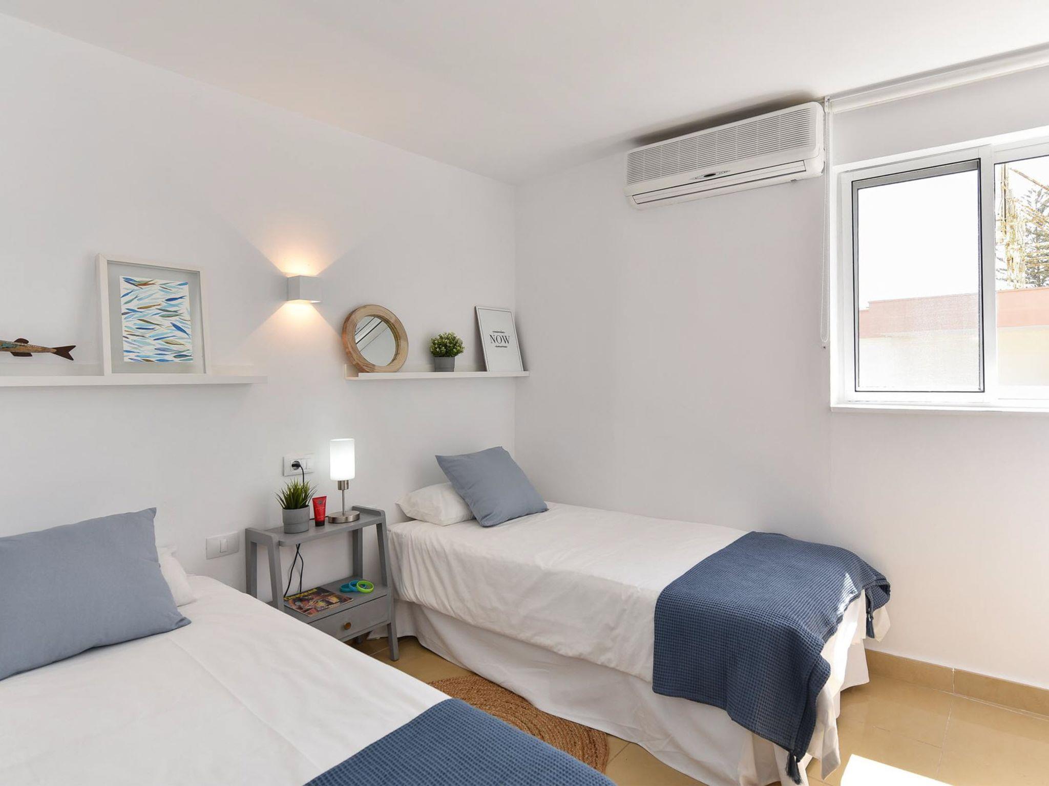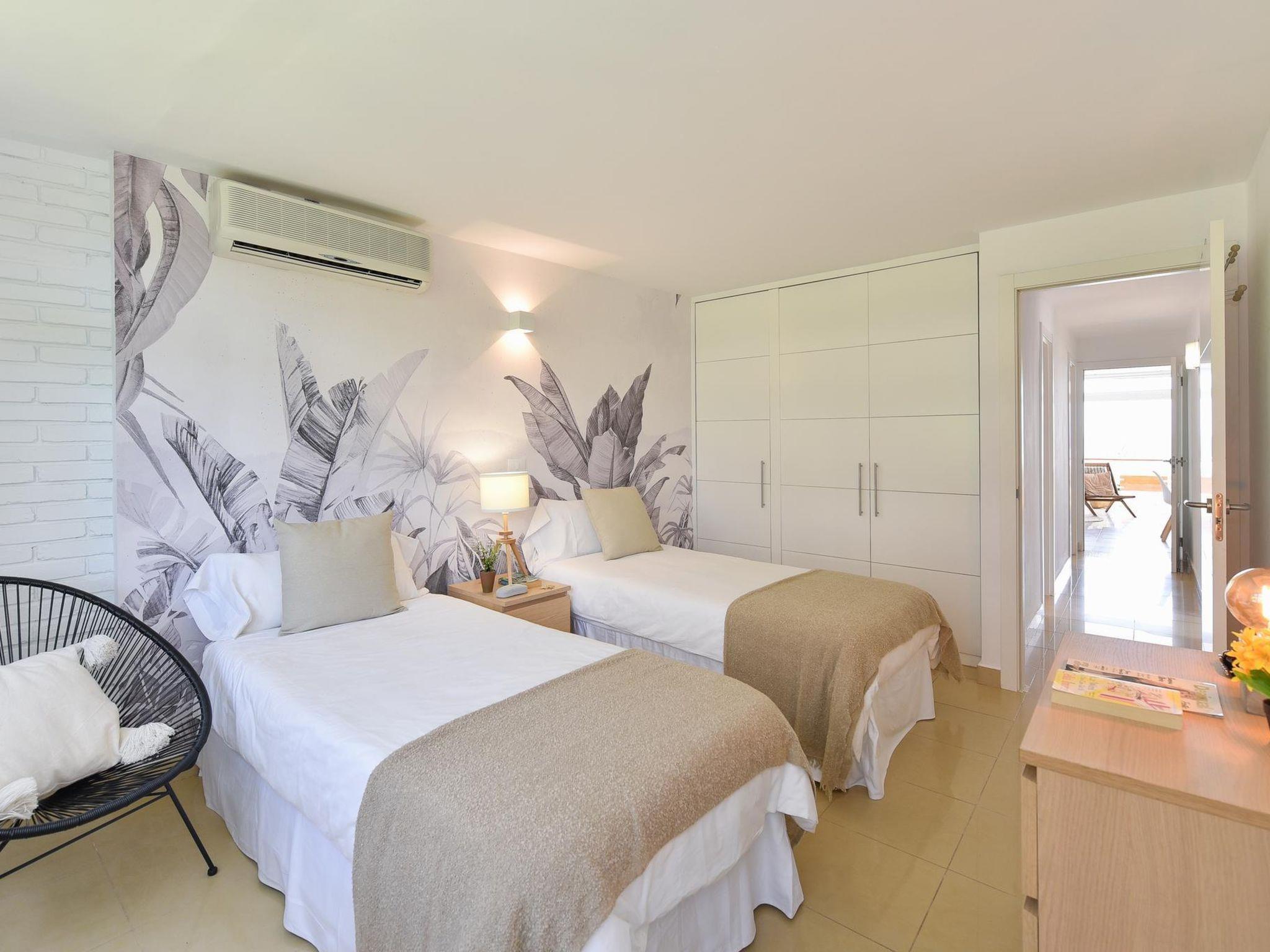"Charca CM18", 4-room apartment 110 m2. Comfortable and modern furnishings: living/dining room with dining nook, satellite TV, digital TV and air conditioning. Exit to the balcony. 1 room with 1 french bed and air conditioning. 2 rooms, each room with 2 beds and air conditioning. Kitchen-/living room (oven, dishwasher, 4 ceramic glass hob hotplates, toaster, kettle, microwave, electric coffee machine) with dining table. 2 showers/WC. Balcony. Balcony furniture. View of the sea. Facilities: washing machine, safe, iron, children's high chair, baby cot for up to 2 year olds, hair dryer. Internet (WiFi, free). Parking (1 car). Please note: non-smoking house. 2021-T2958 // Reg. Nr.: ESFCTU000035013000428312000000000000000VV-35-00156705