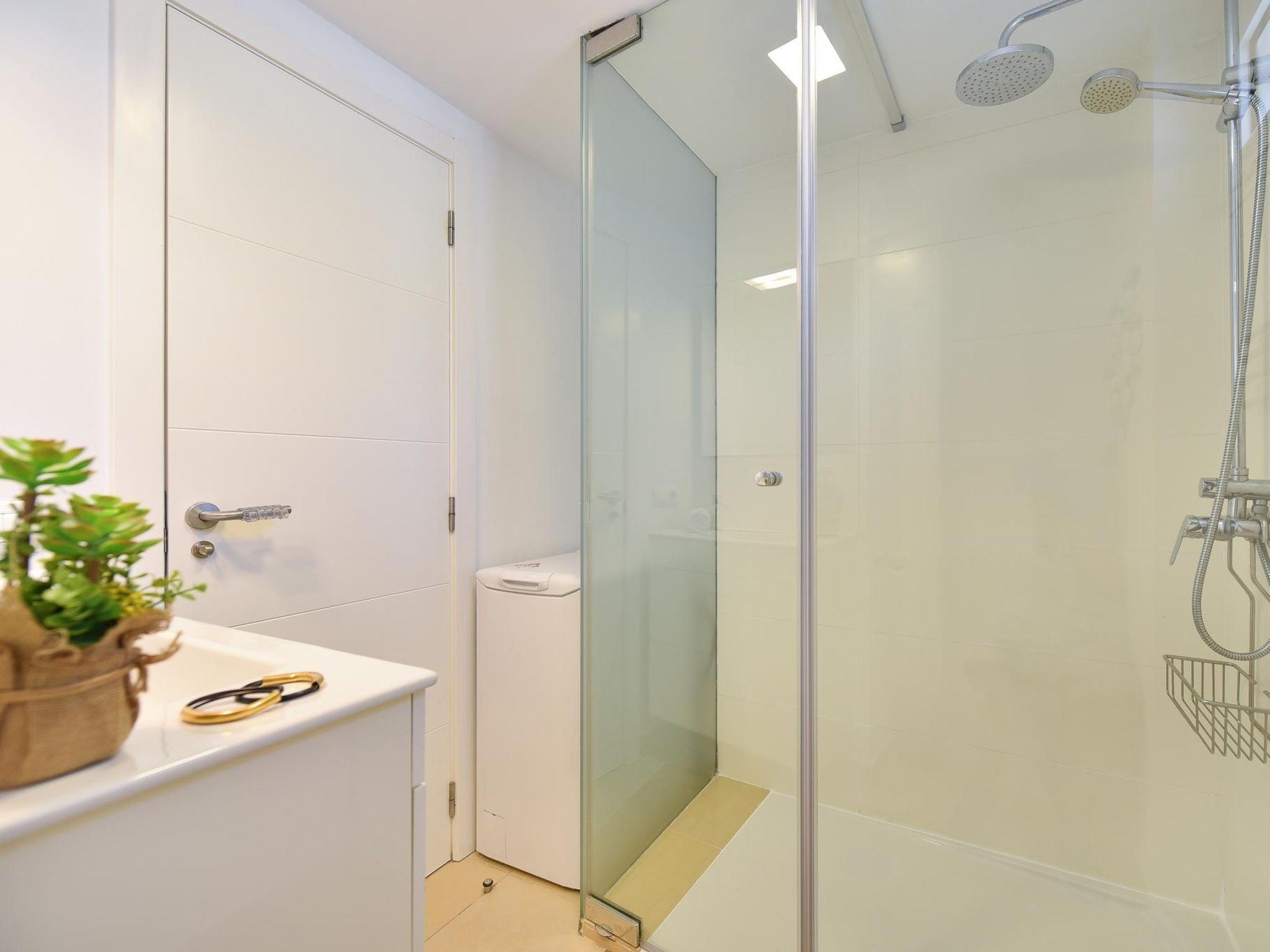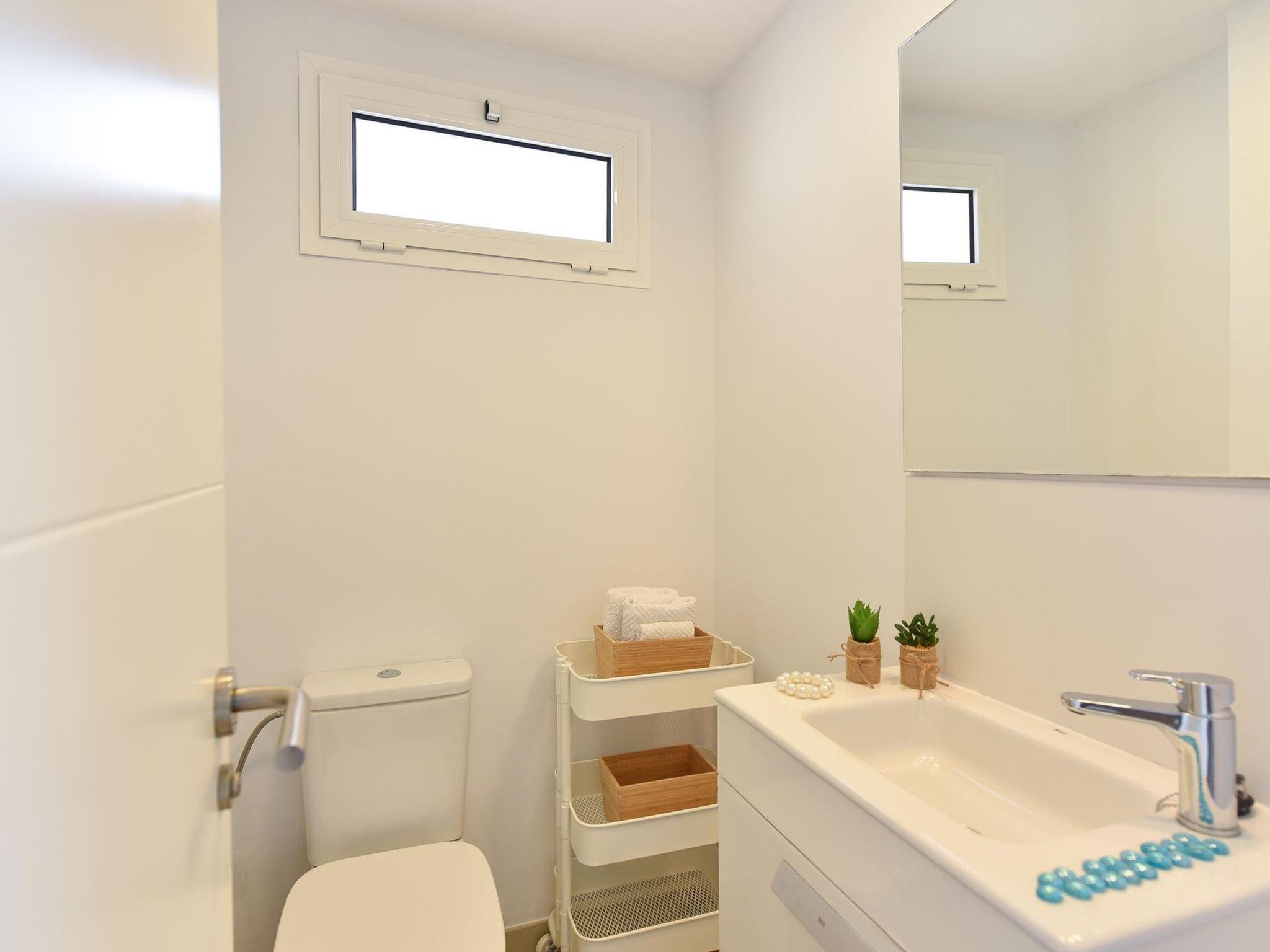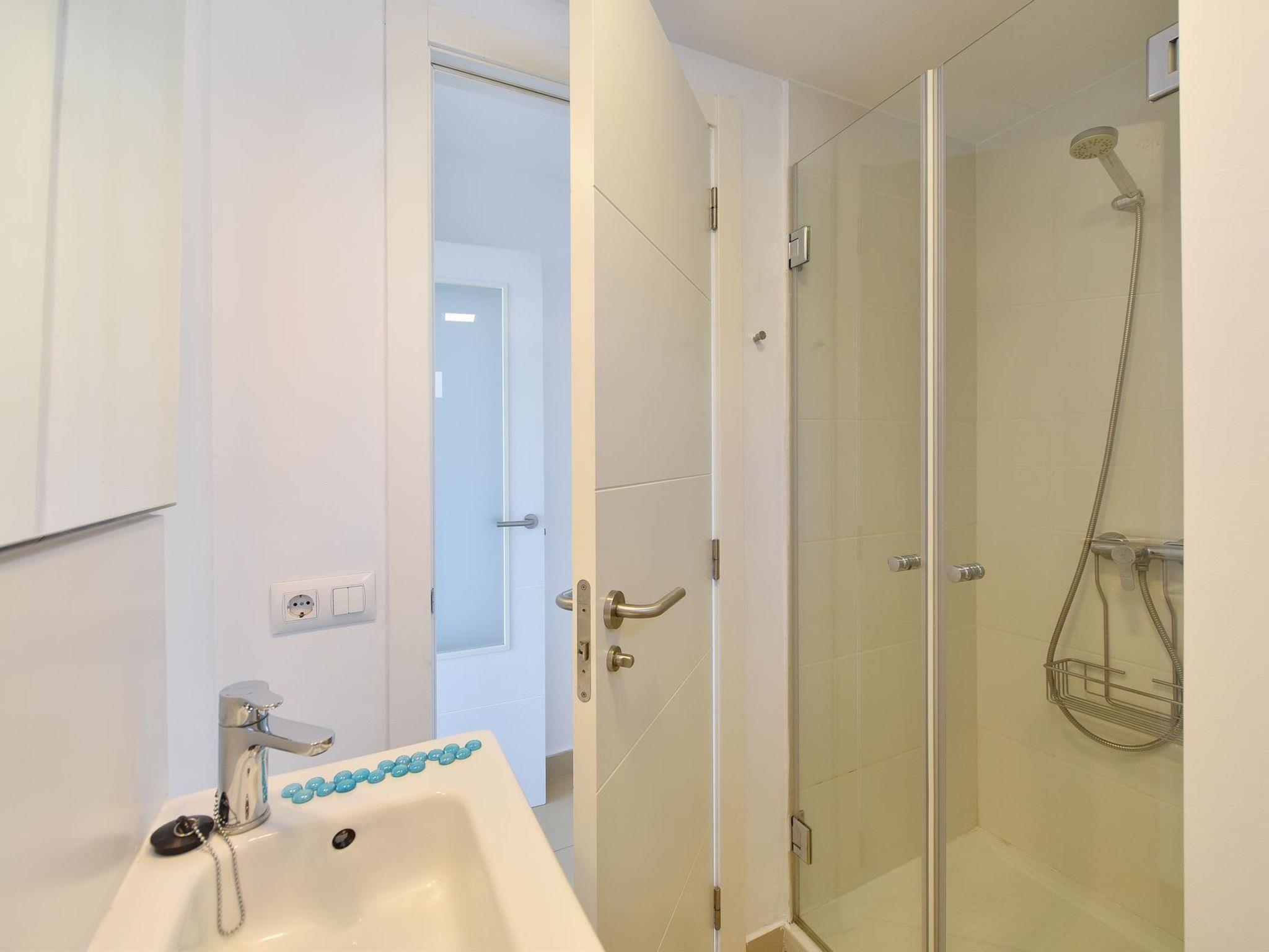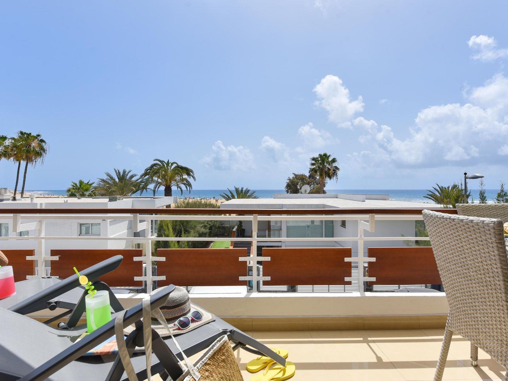 "Charca CM18", 4-room apartment 110 m2. Comfortable and modern furnishings: living/dining room with dining nook, satellite TV, digital TV and air conditioning. Exit to the balcony. 1 room with 1 french bed and air conditioning. 2 rooms, each room with 2 beds and air conditioning. Kitchen-/living room (oven, dishwasher, 4 ceramic glass hob hotplates, toaster, kettle, microwave, electric coffee machine) with dining table. 2 showers/WC. Balcony. Balcony furniture. View of the sea. Facilities: washing machine, safe, iron, children's high chair, baby cot for up to 2 year olds, hair dryer. Internet (WiFi, free). Parking (1 car). Please note: non-smoking house. 2021-T2958 // Reg. Nr.: ESFCTU000035013000428312000000000000000VV-35-00156705