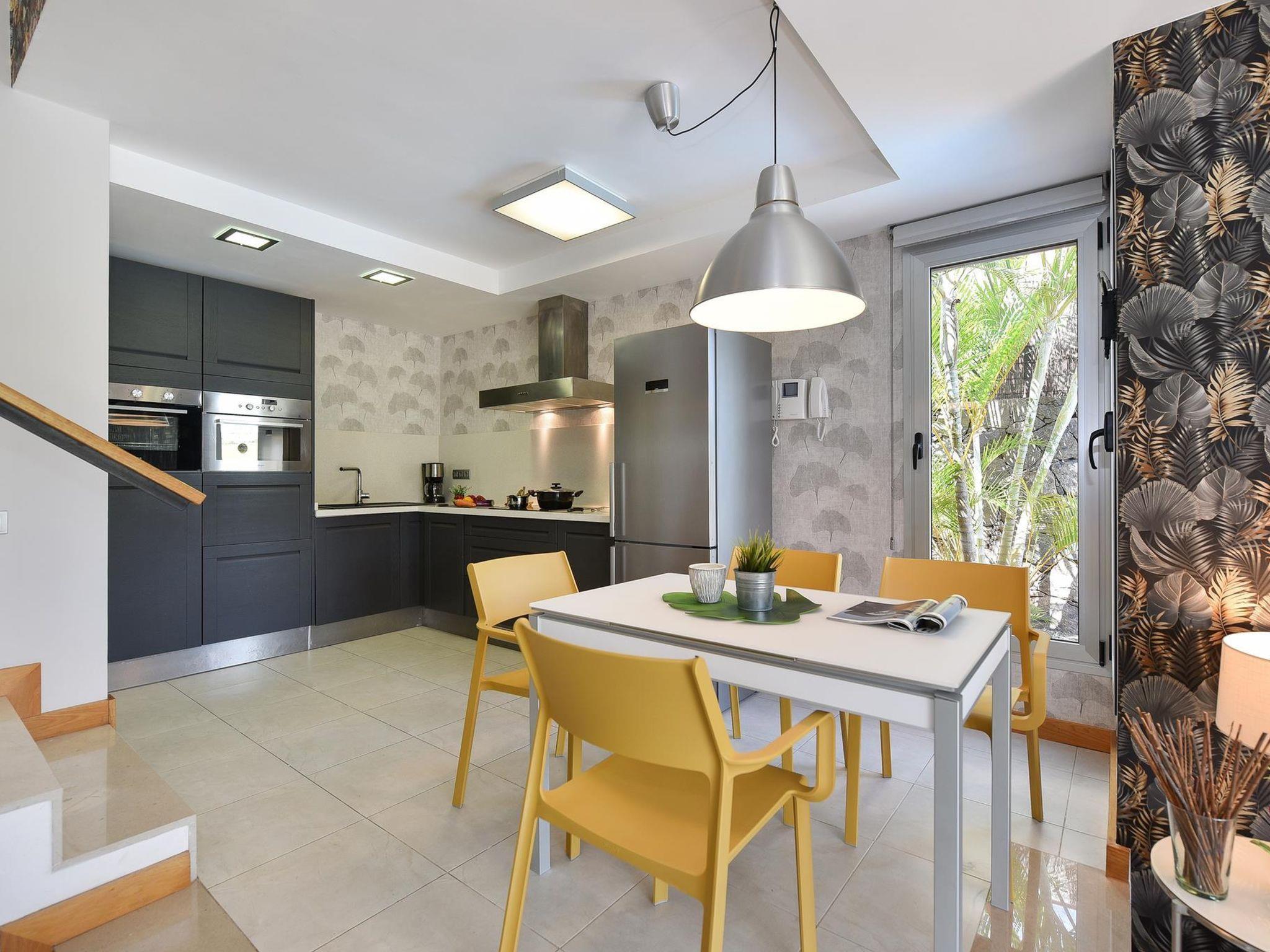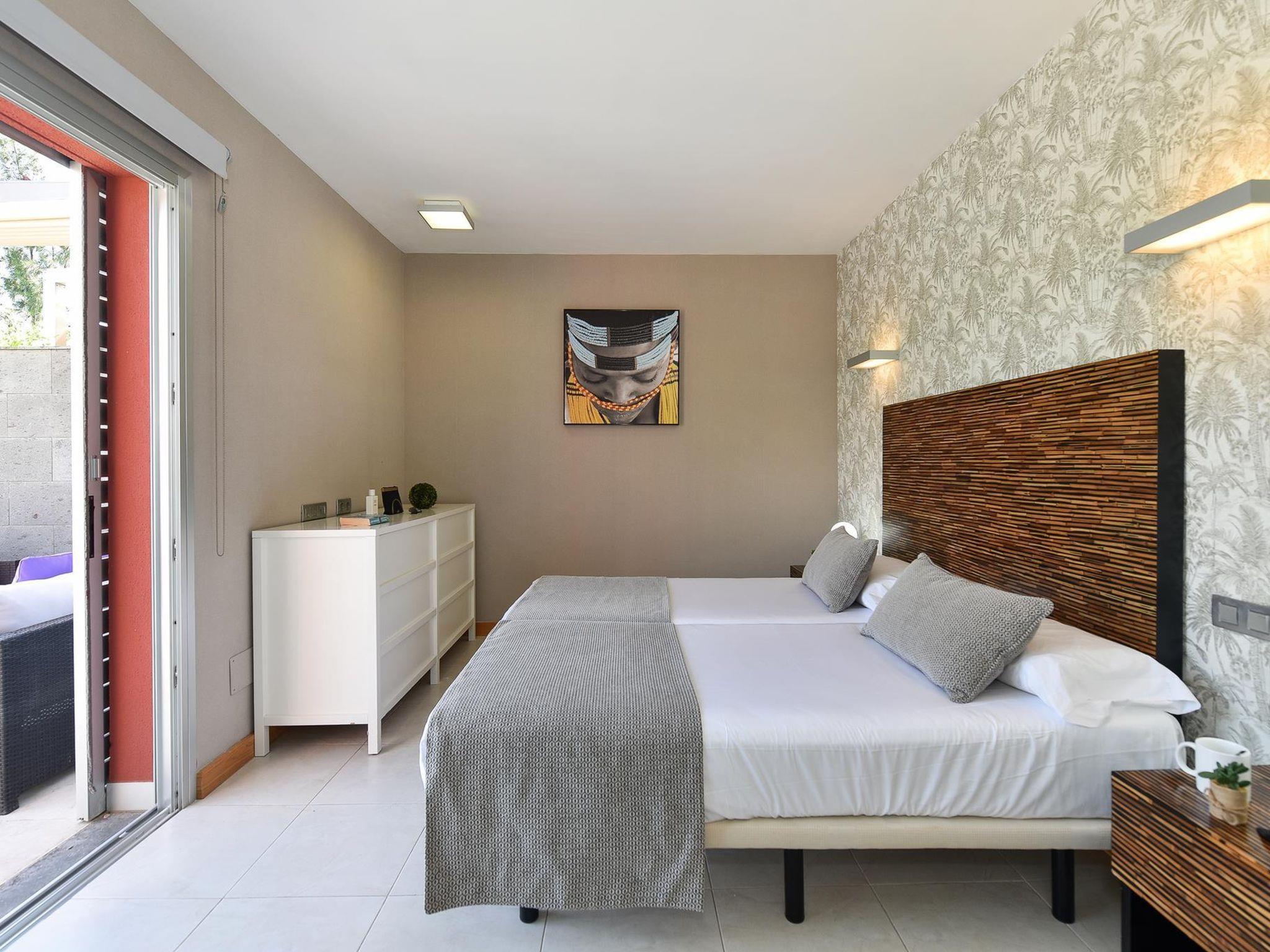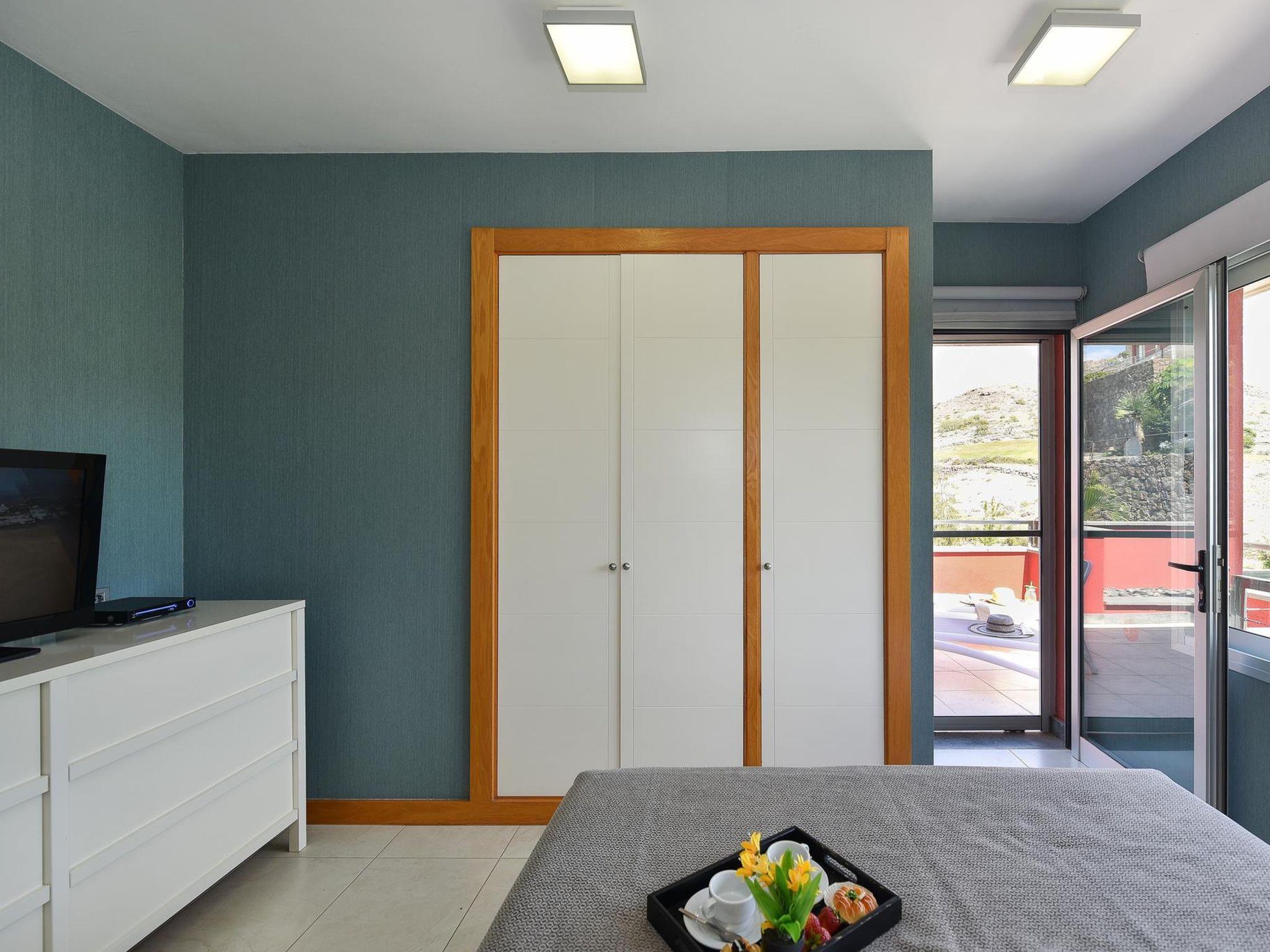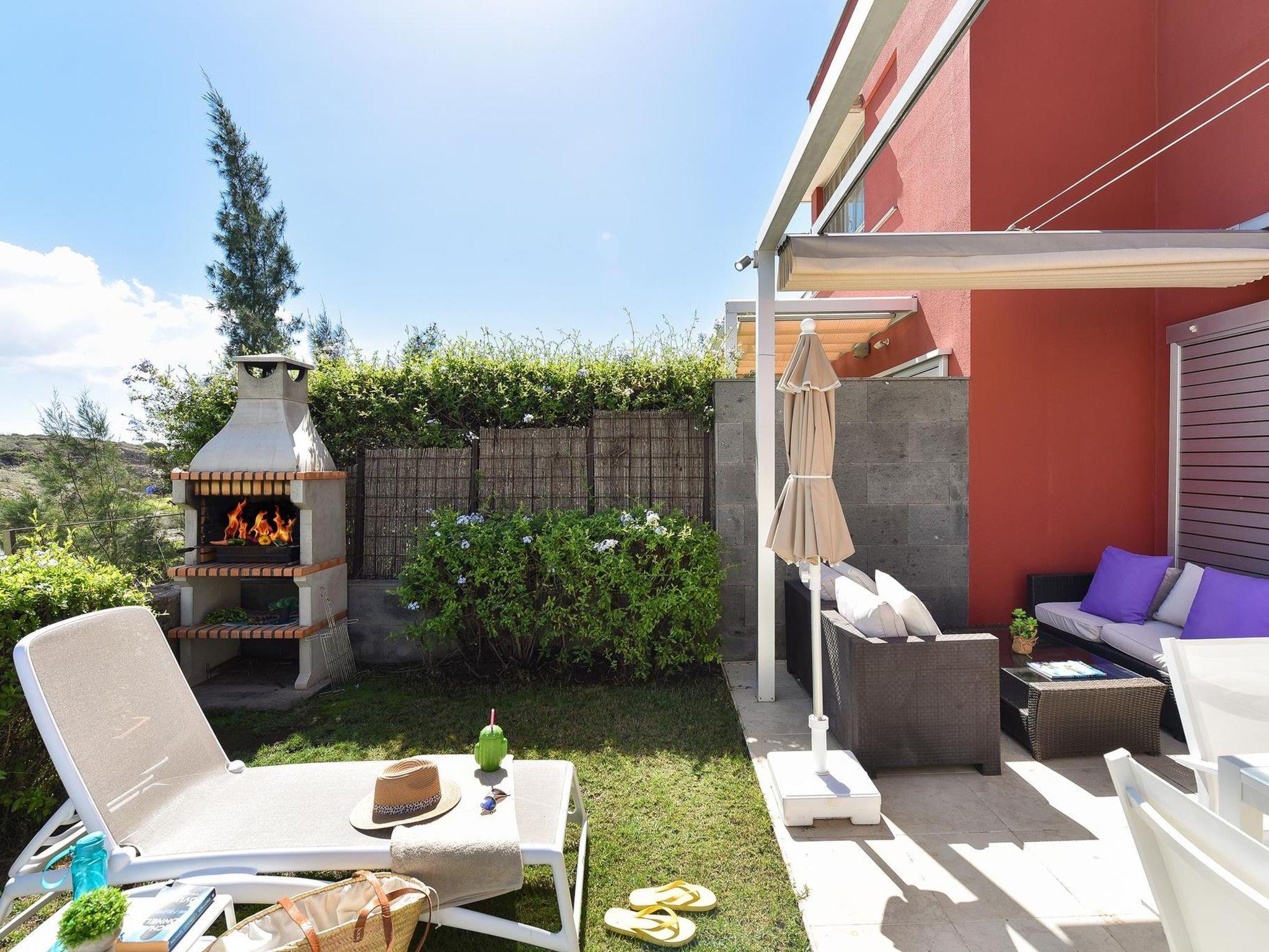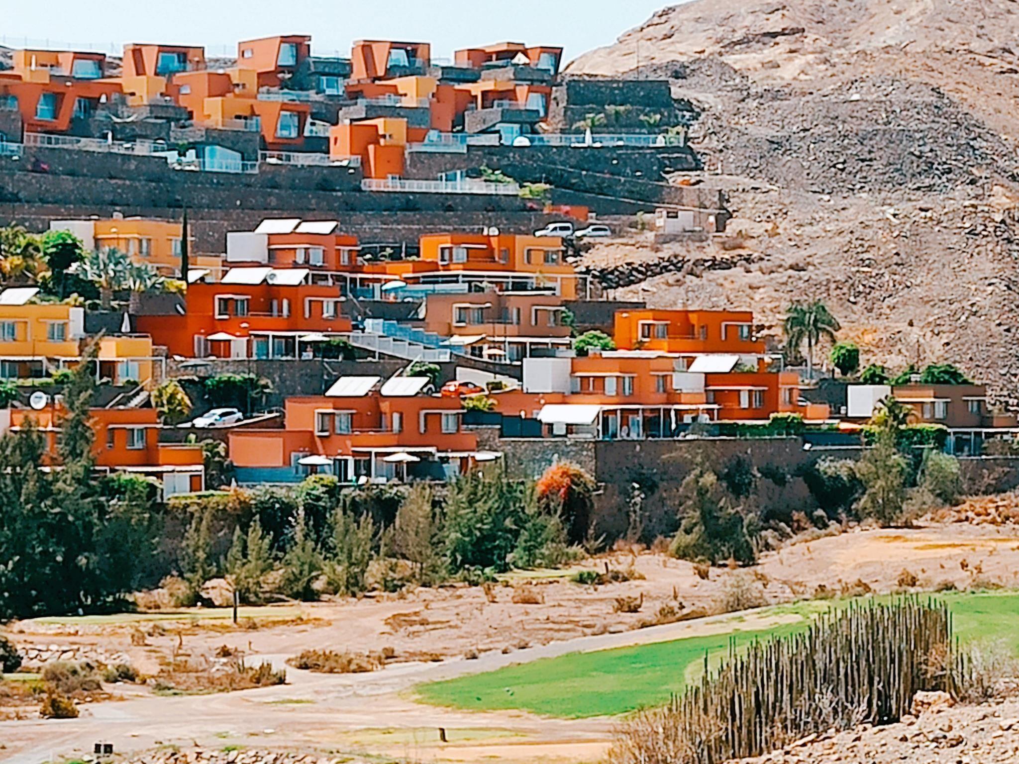 Modern, beautiful villa "Vista Golf 22". In the centre of Salobre Golf, outside the resort Maspalomas, in a secluded, quiet, sunny position on top of a hill. Private: garden (fenced) with lawn, swimming pool angular (5 x 2 m, seasonal availability: 01.Jan. - 31.Dec.). Outdoor shower. In the house: sun terrace. Parking on the premises, public parking on the road. Bus stop "Las Crucitas" 19 km. The owner does not accept any youth groups. Neighbourhood highly sensitive to noise. Quietness and good behaviour expected.