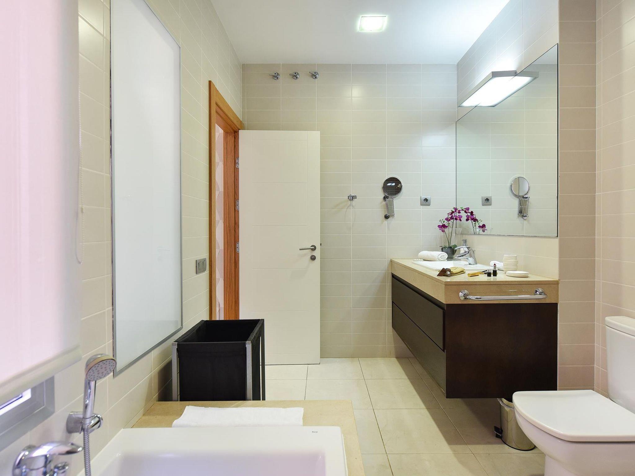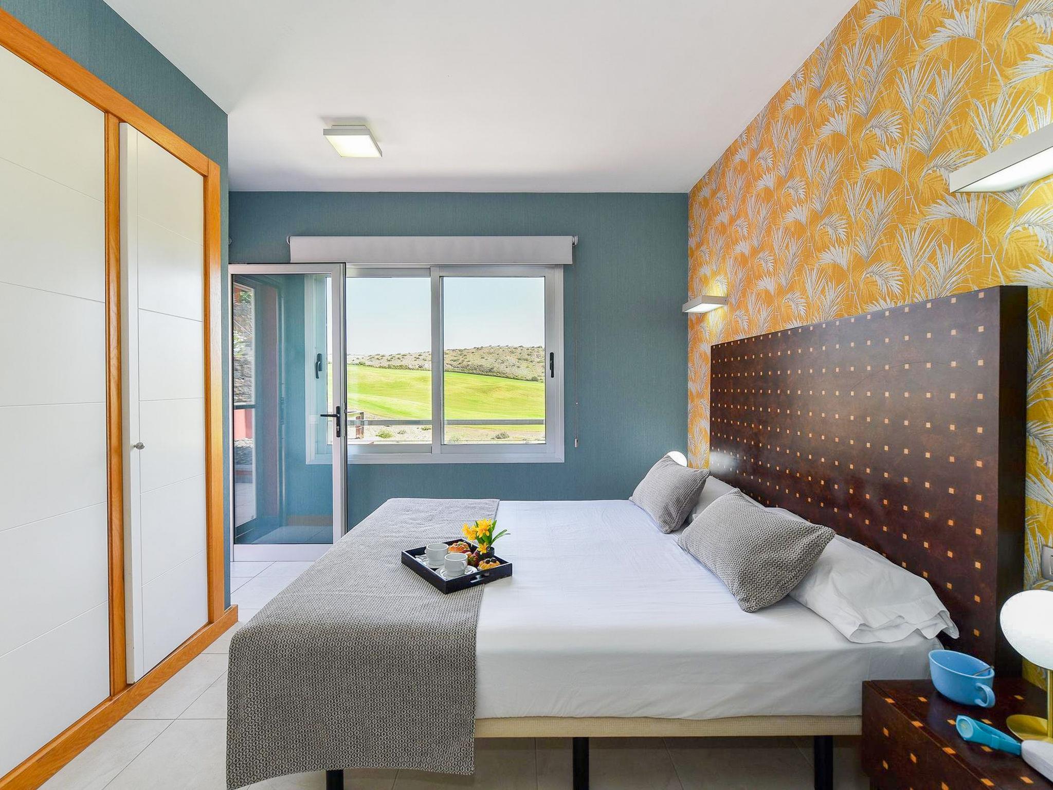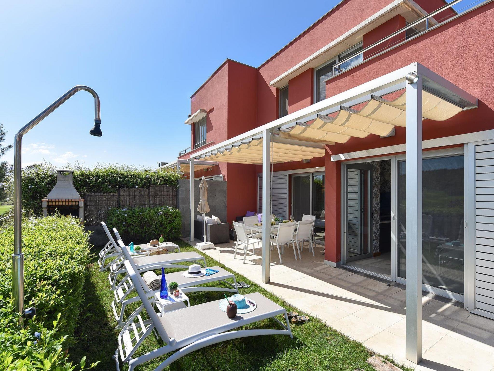 "Vista Golf 22", 3-room house 105 m2 on 2 levels. Comfortable and modern furnishings: living/dining room with satellite TV, digital TV and air conditioning. Exit to the patio. 1 room with 1 french bed, shower/bidet/WC and air conditioning. Exit to the garden, to the swimming pool. Kitchen (oven, dishwasher, 3 ceramic glass hob hotplates, toaster, kettle, microwave, freezer, electric coffee machine) with dining table. Upper floor: 1 room with 2 beds, shower/bidet/WC and air conditioning. Exit to the terrace. Patio. Terrace furniture, barbecue, deck chairs. Of the mountains. Facilities: washing machine, safe, iron, children's high chair, baby cot for up to 2 year olds, hair dryer. Internet (WiFi, free). Parking (1 car). Please note: non-smoking house. Maximum 1 pet/ dog allowed. 2022-T10125 // Reg. Nr.: ESFCTU0000350120004896060000000000000VV-35-1-00179423