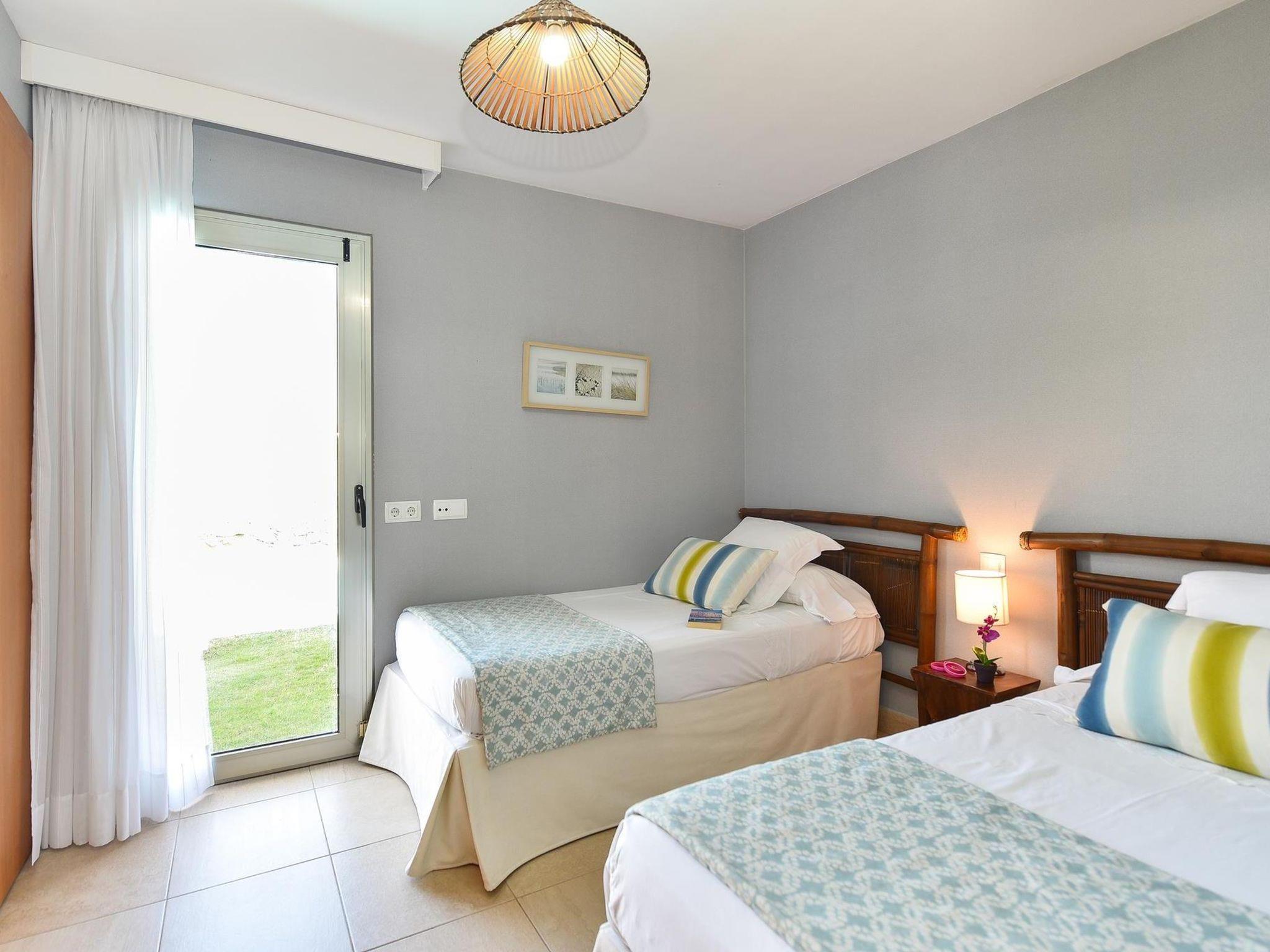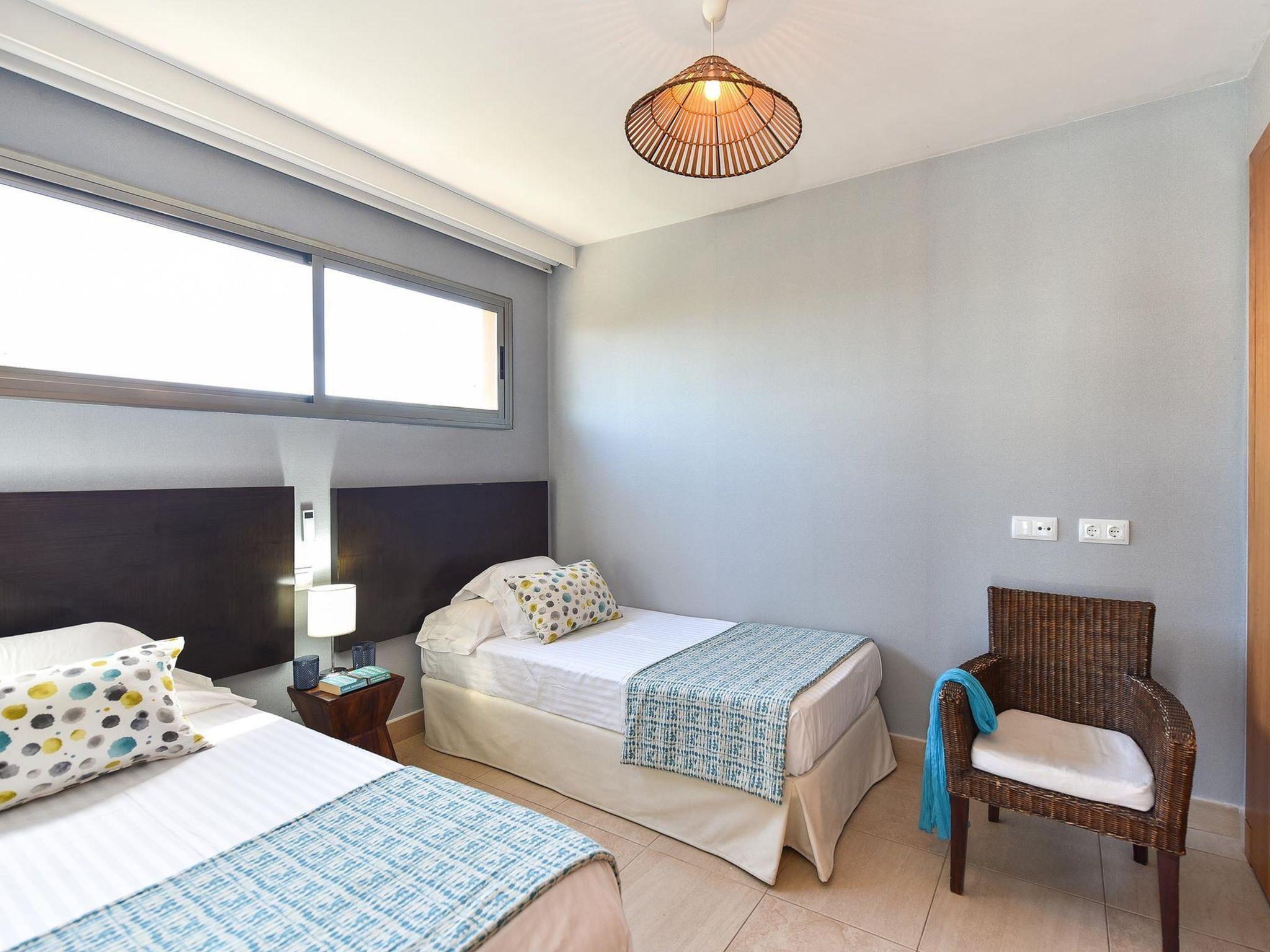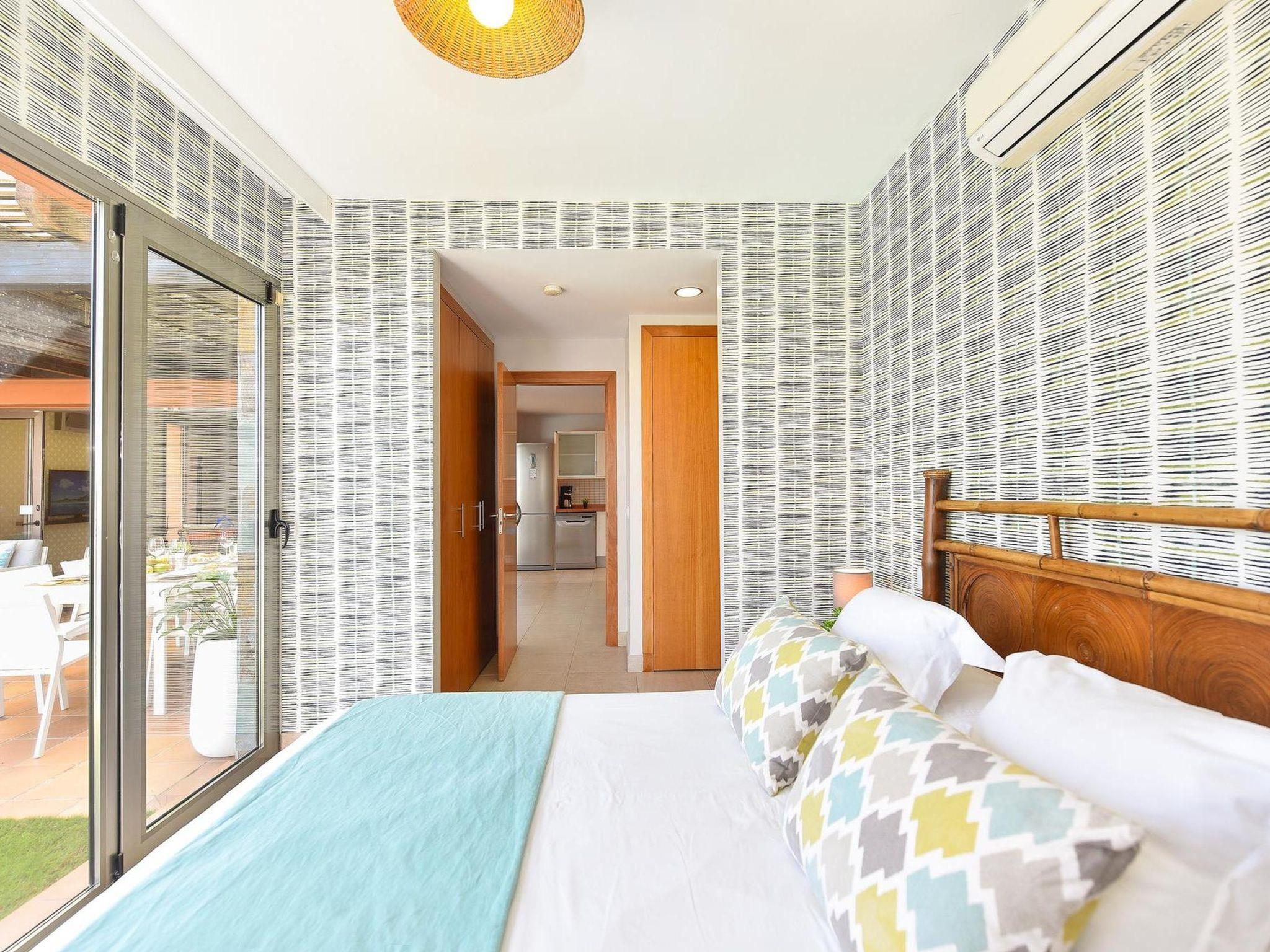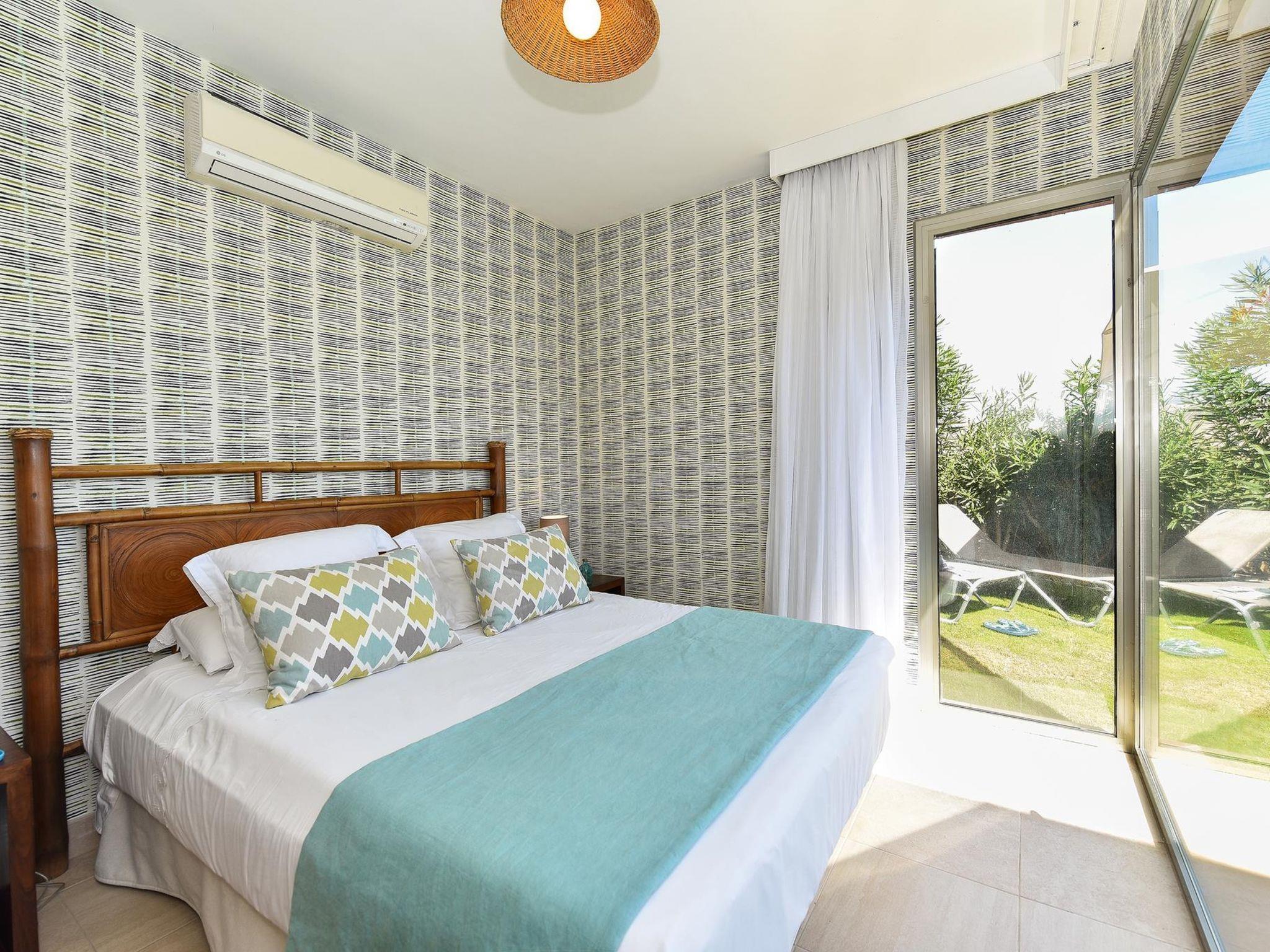 "Tipo 3 dormitorios", 4-room house 115 m2. Comfortable and modern furnishings: living room with satellite TV, digital TV, video, hi-fi system, DVD and air conditioning. Exit to the patio. 1 room with 1 french bed, shower/WC and air conditioning. Exit to the garden. 1 room with 2 beds. Exit to the garden. 1 room with 2 beds. Open kitchen (oven, dishwasher, 4 ceramic glass hob hotplates, toaster, kettle, microwave, freezer, electric coffee machine) with dining table and air conditioning. Shower/WC. Patio. Terrace furniture, barbecue, deck chairs. View of the mountains and the resort. Facilities: washing machine, dryer, safe, iron, children's high chair, baby cot for up to 2 year olds, hair dryer. Internet (WiFi, free). Parking (1 car). Please note: non-smoking house. Maximum 1 pet/ dog allowed. 2016/407 // Reg. Nr.: ESFCTU0000350120004736290000000000000000VV35100149131