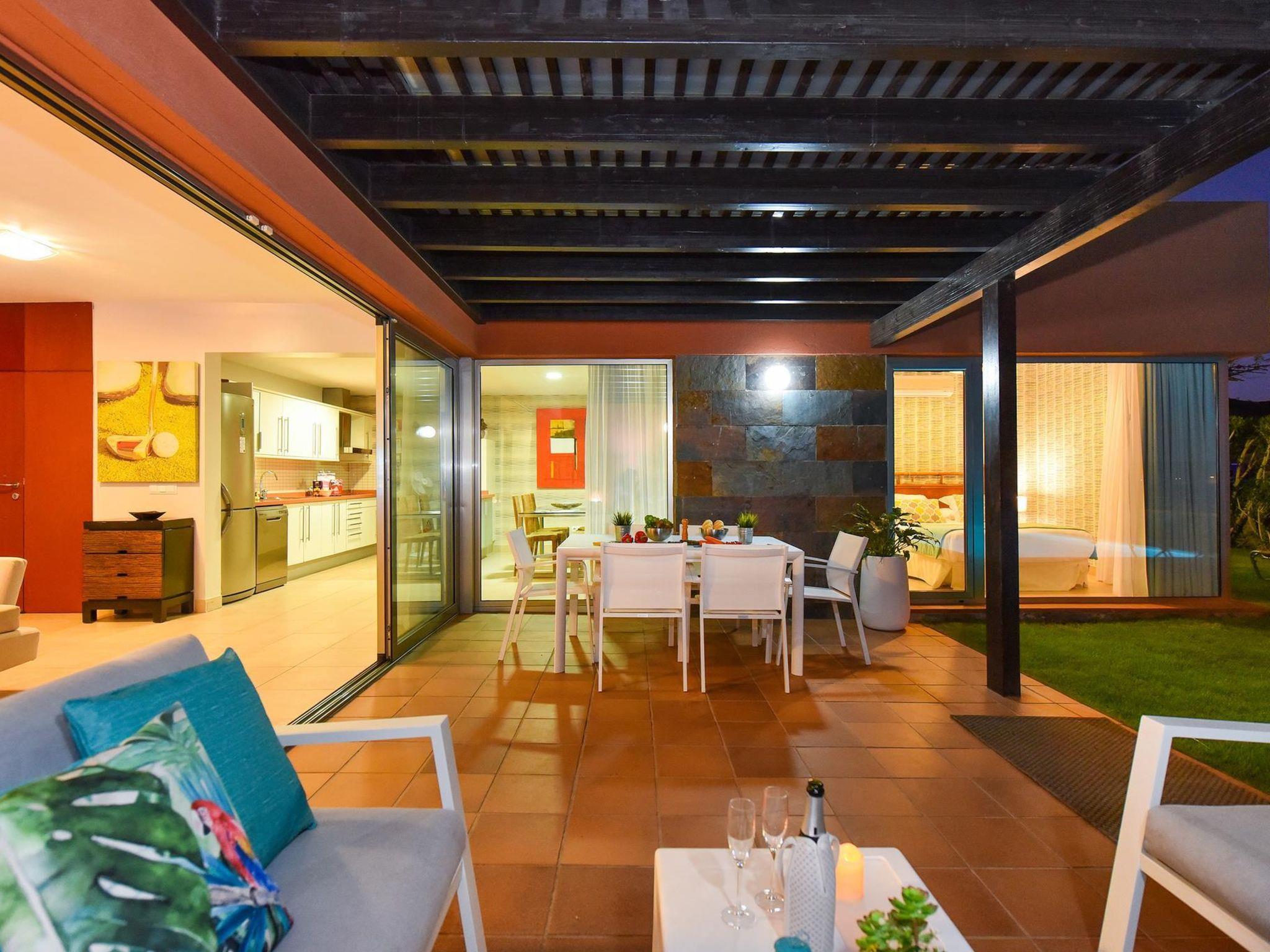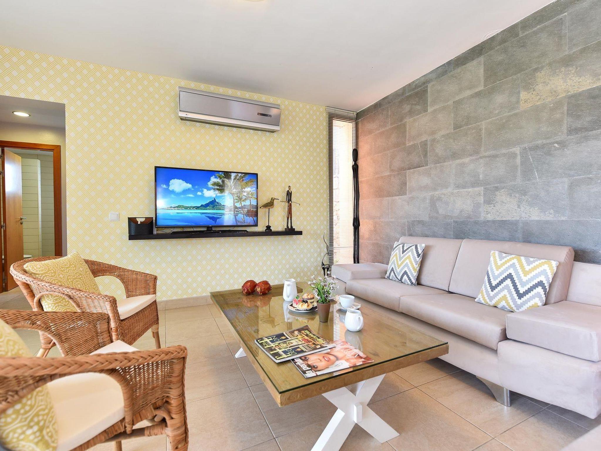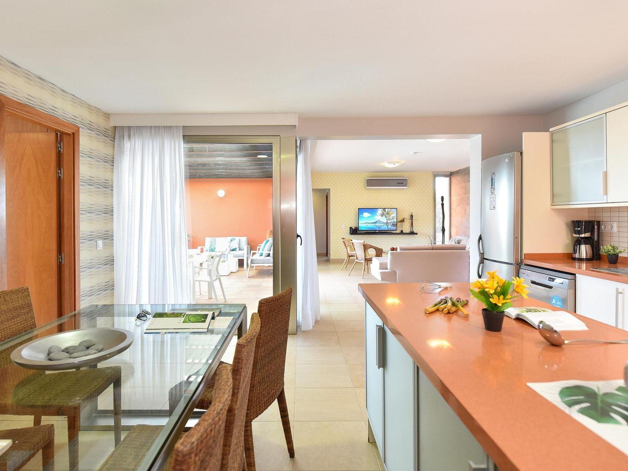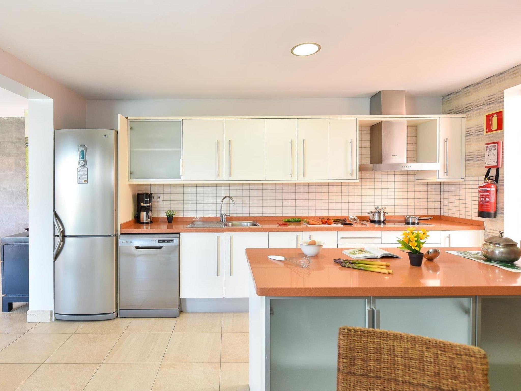 "Tipo 3 dormitorios", 4-room house 115 m2. Comfortable and modern furnishings: living room with satellite TV, digital TV, video, hi-fi system, DVD and air conditioning. Exit to the patio. 1 room with 1 french bed, shower/WC and air conditioning. Exit to the garden. 1 room with 2 beds. Exit to the garden. 1 room with 2 beds. Open kitchen (oven, dishwasher, 4 ceramic glass hob hotplates, toaster, kettle, microwave, freezer, electric coffee machine) with dining table and air conditioning. Shower/WC. Patio. Terrace furniture, barbecue, deck chairs. View of the mountains and the resort. Facilities: washing machine, dryer, safe, iron, children's high chair, baby cot for up to 2 year olds, hair dryer. Internet (WiFi, free). Parking (1 car). Please note: non-smoking house. Maximum 1 pet/ dog allowed. 2016/407 // Reg. Nr.: ESFCTU0000350120004736290000000000000000VV35100149131