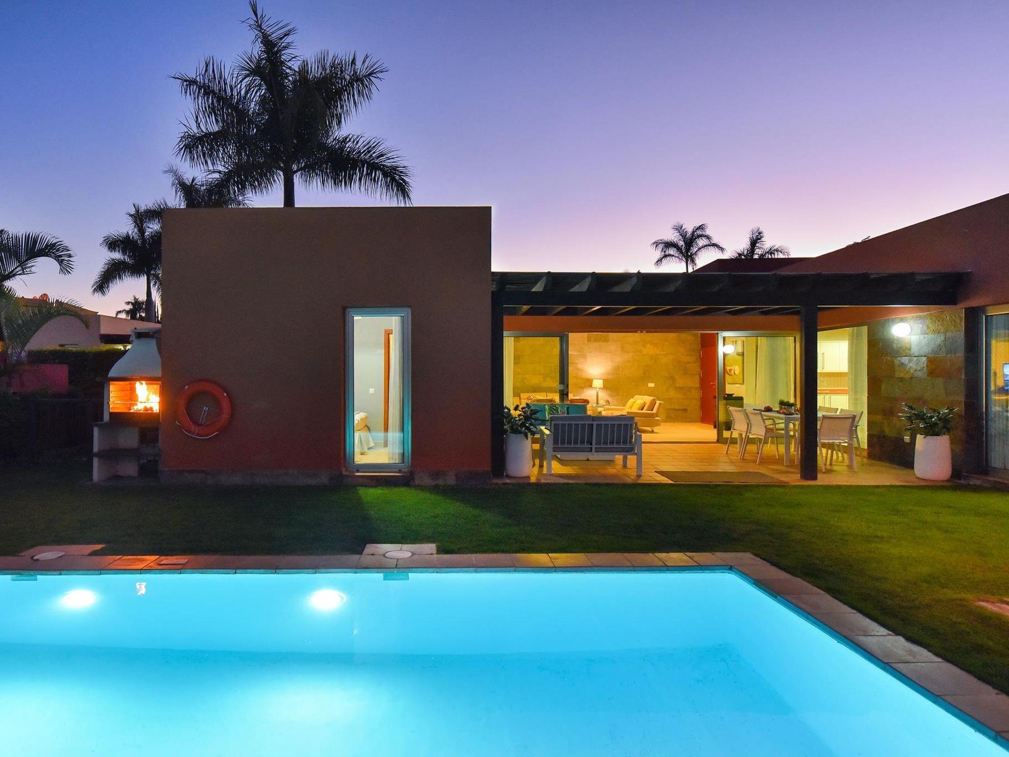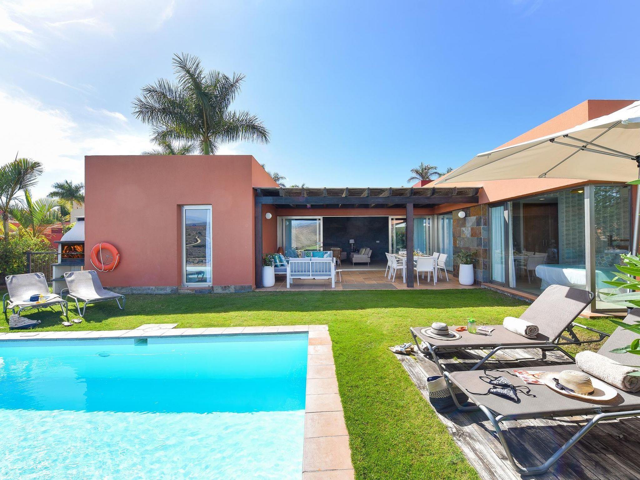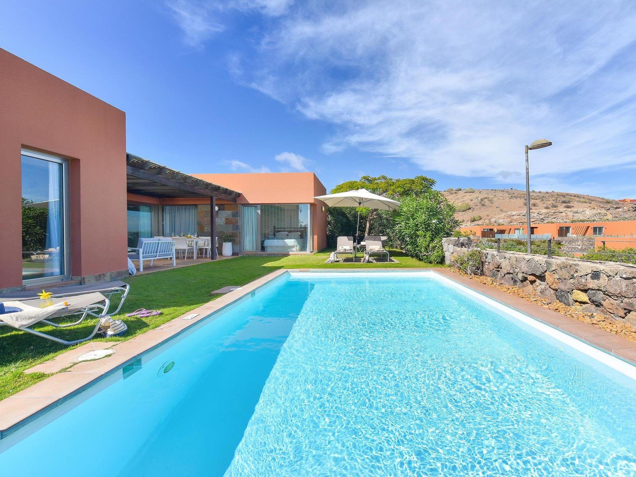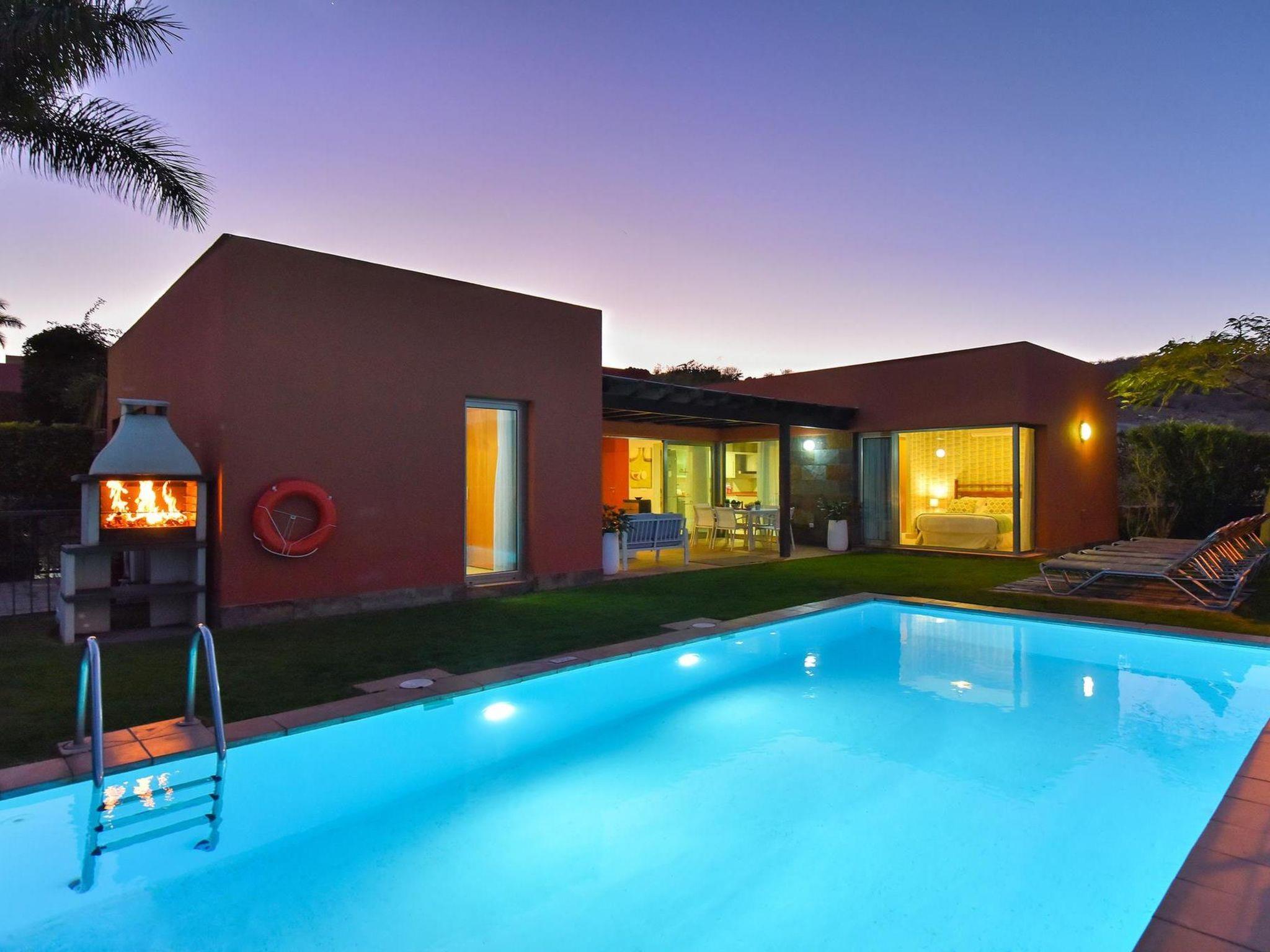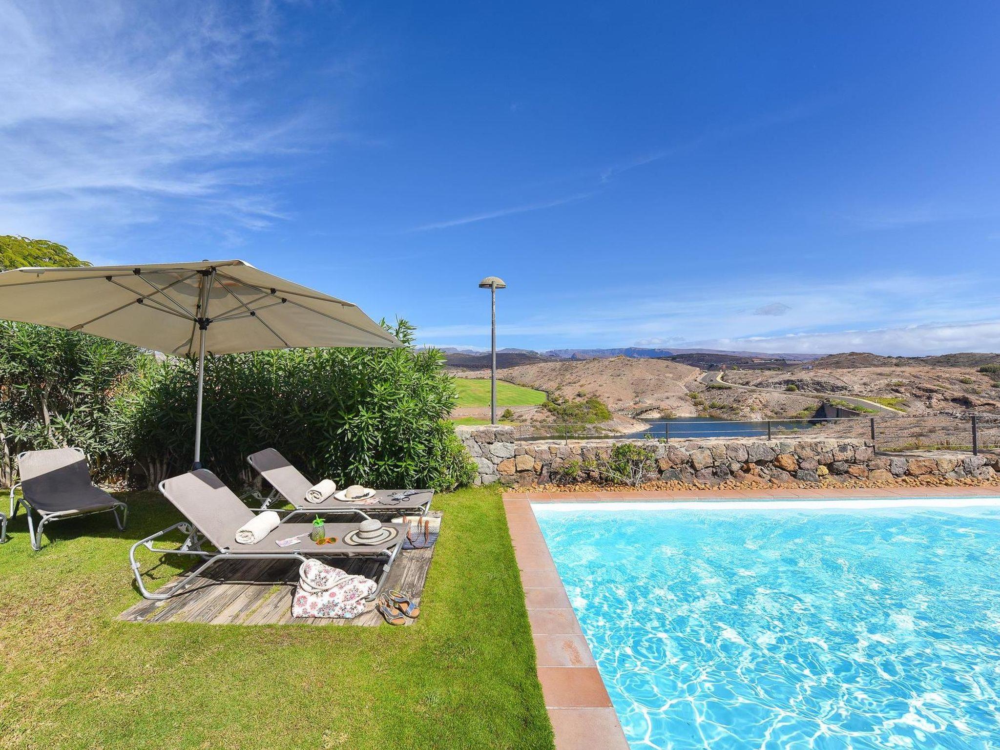 Modern, comfortable villa "Par4 Villa 21". In the centre of Salobre Golf Resort, on the outskirts Maspalomas 5 km, outside the resort Meloneras 7 km, in a quiet, sunny, elevated position in the residential district. Private: garden 80 m2 (fenced), lawn for sunbathing, swimming pool angular (8 x 4 m, depth 140 - 140 cm, seasonal availability: 01.Jan. - 31.Dec.). Barbecue, parking on the premises, public parking on the road. Shop 4 km, supermarket 3 km, restaurant 200 m, bus stop "Las Crucitas" 19 km, sandy beach 3 km. Golf course (18 hole) 500 m. Please note: car recommended. The owner does not accept any youth groups. Airfield 25 km from the property. Neighbourhood highly sensitive to noise. Quietness and good behaviour expected.