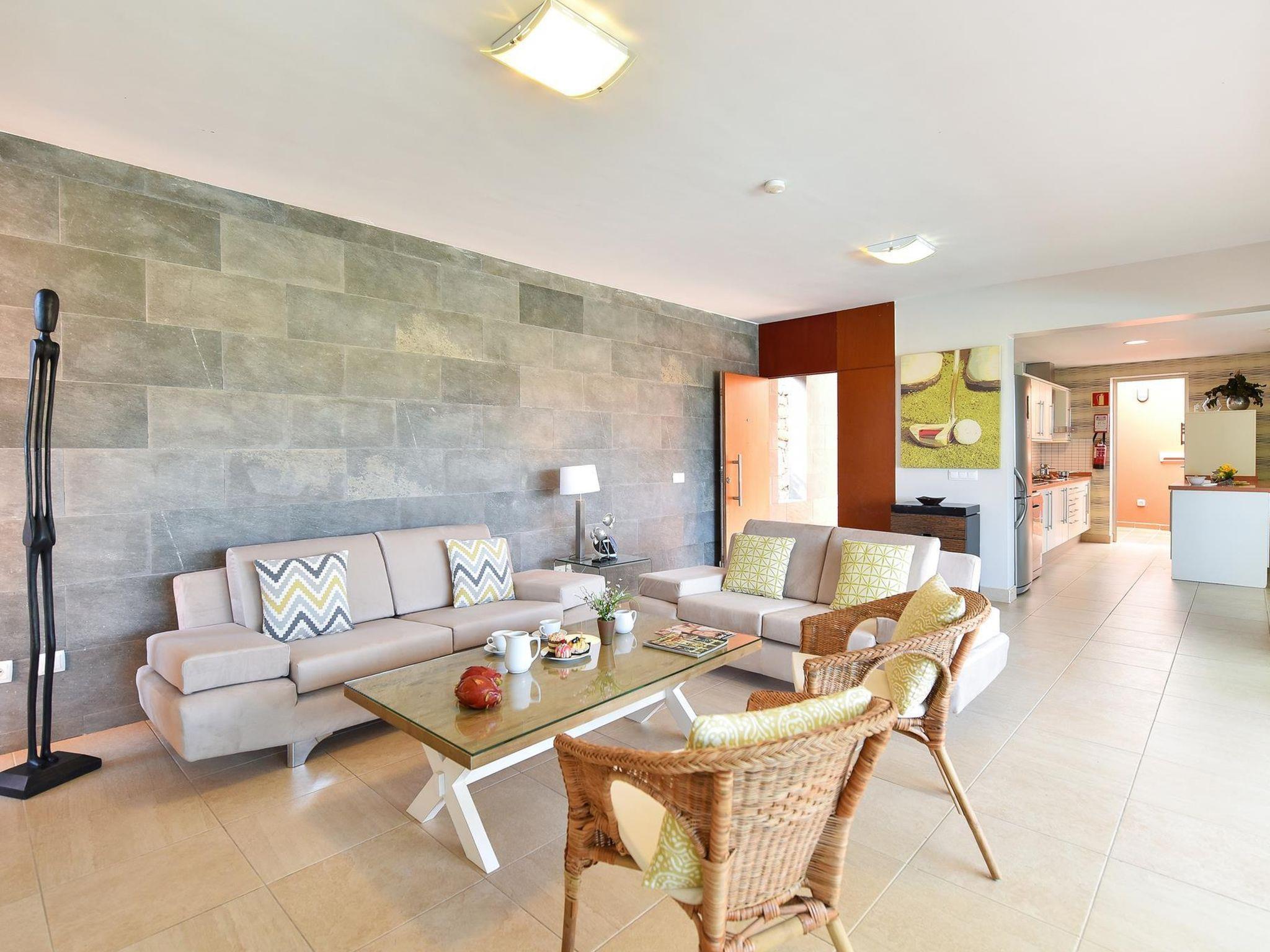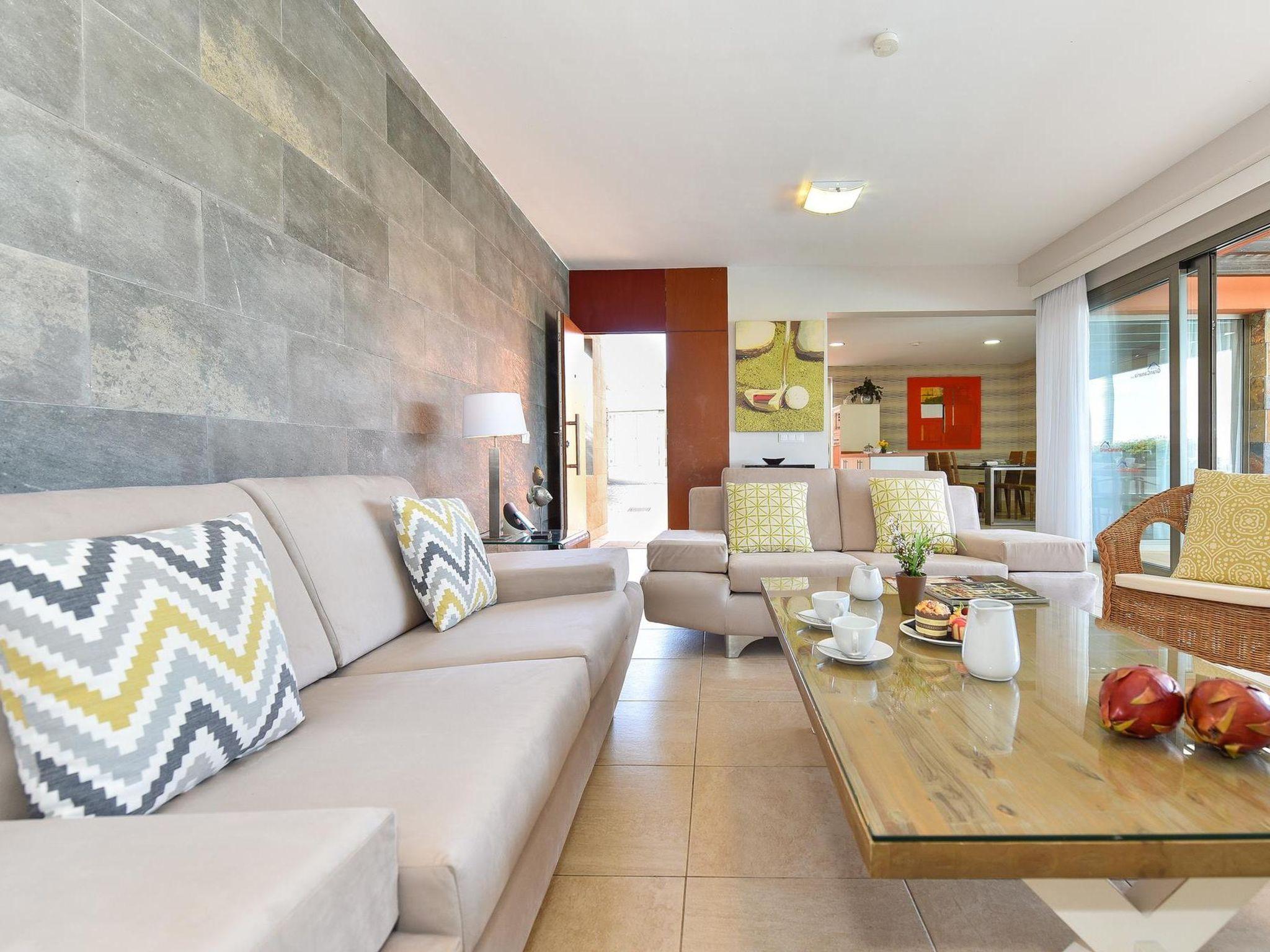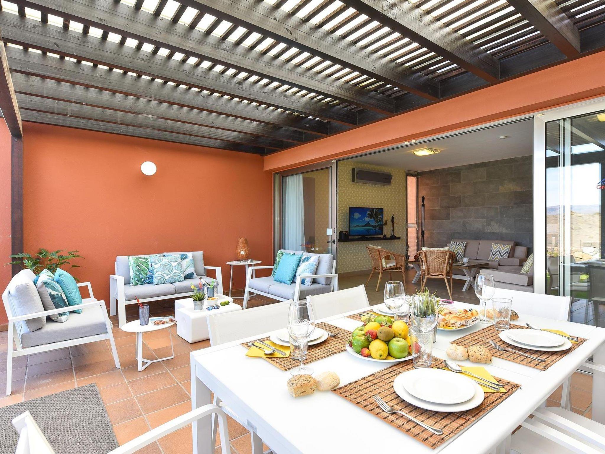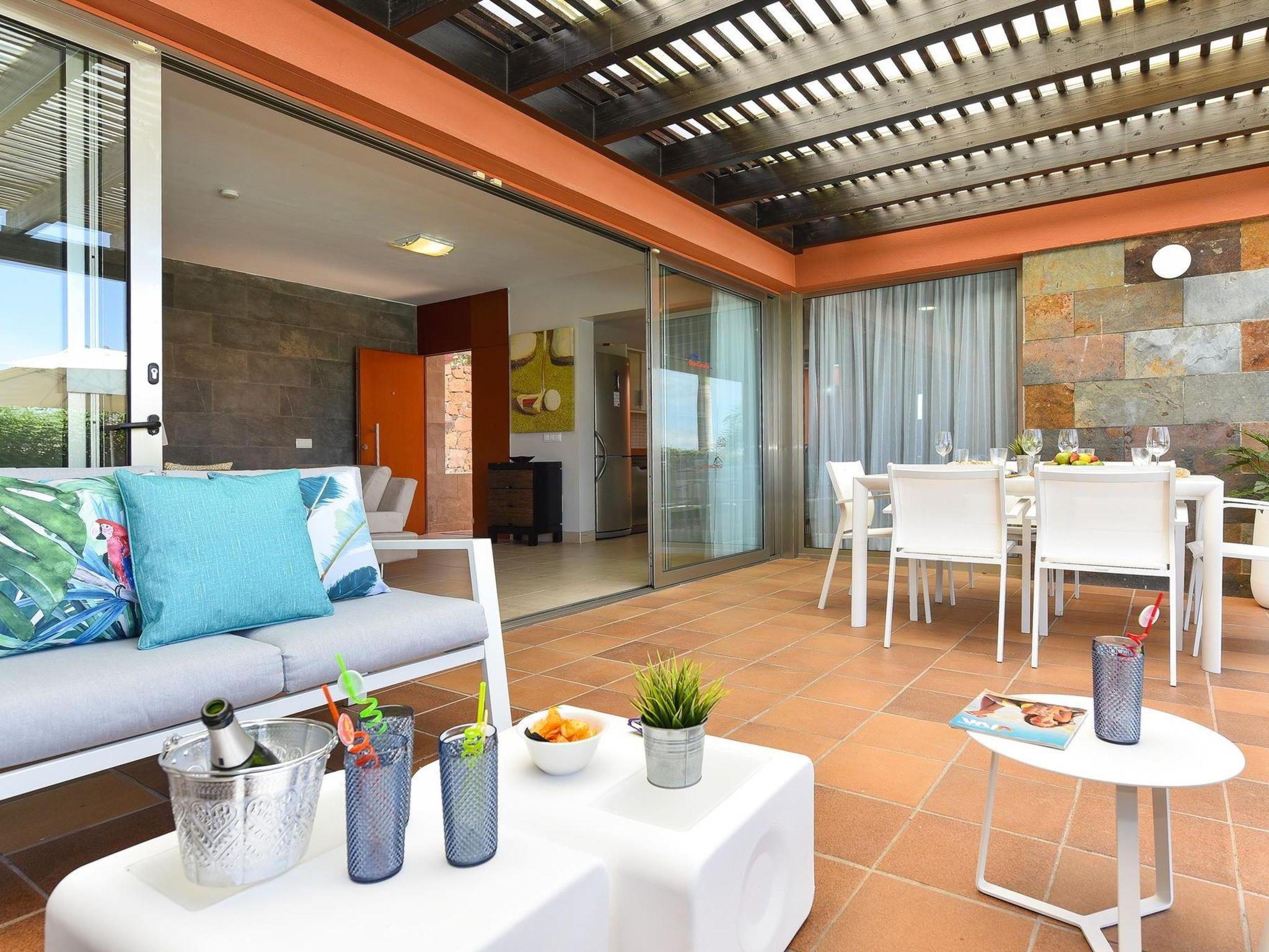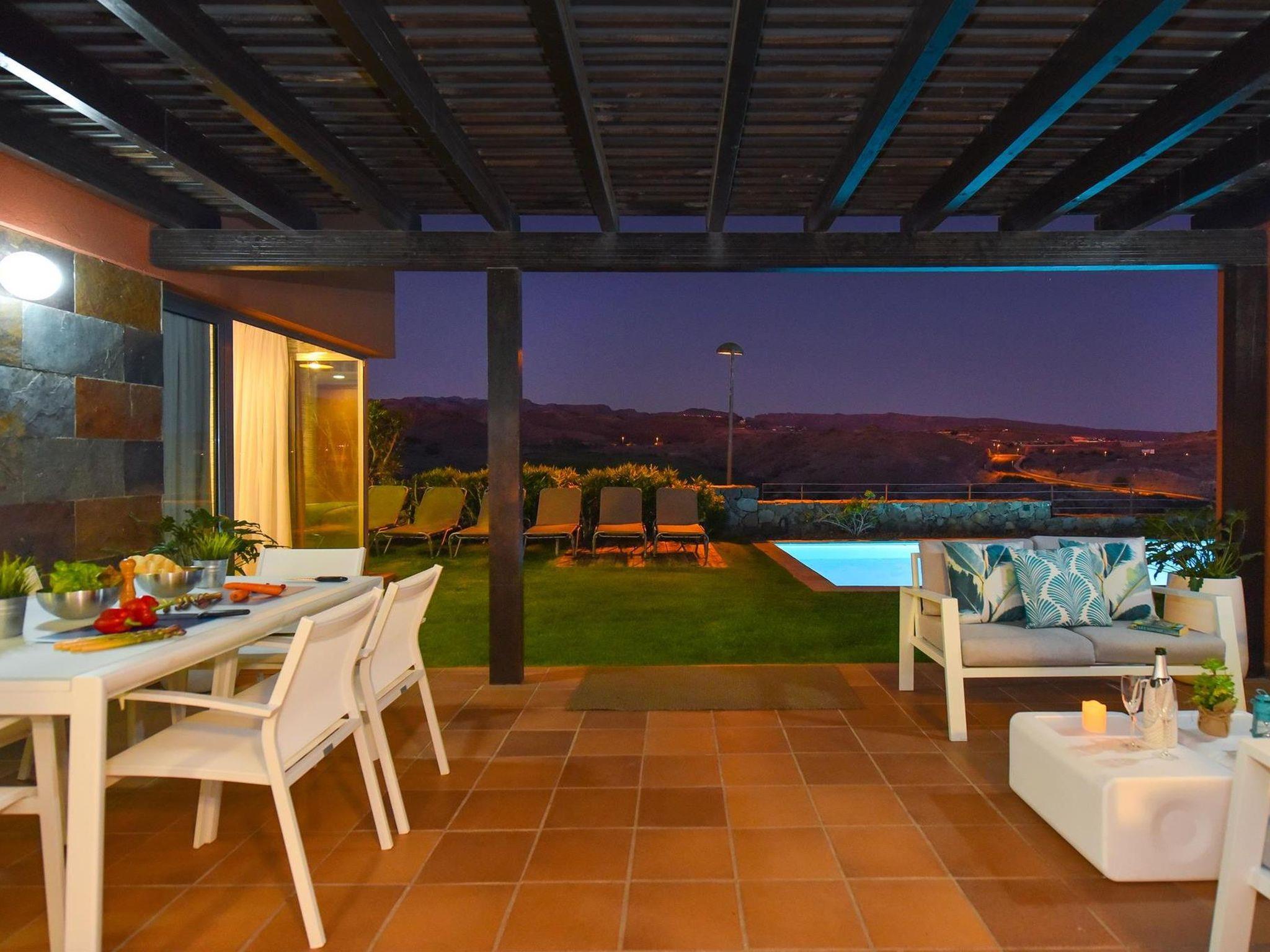 Modern, comfortable villa "Par4 Villa 21". In the centre of Salobre Golf Resort, on the outskirts Maspalomas 5 km, outside the resort Meloneras 7 km, in a quiet, sunny, elevated position in the residential district. Private: garden 80 m2 (fenced), lawn for sunbathing, swimming pool angular (8 x 4 m, depth 140 - 140 cm, seasonal availability: 01.Jan. - 31.Dec.). Barbecue, parking on the premises, public parking on the road. Shop 4 km, supermarket 3 km, restaurant 200 m, bus stop "Las Crucitas" 19 km, sandy beach 3 km. Golf course (18 hole) 500 m. Please note: car recommended. The owner does not accept any youth groups. Airfield 25 km from the property. Neighbourhood highly sensitive to noise. Quietness and good behaviour expected.