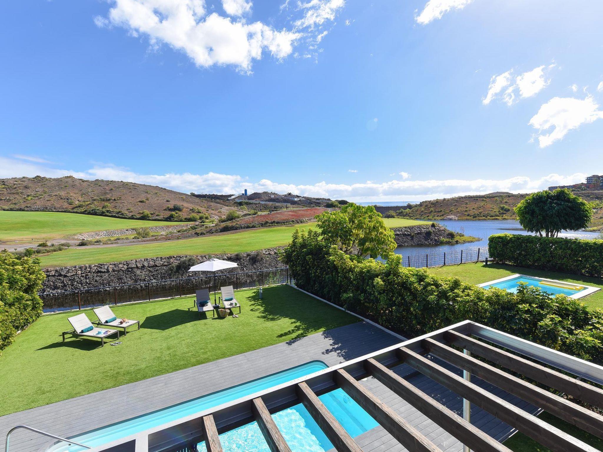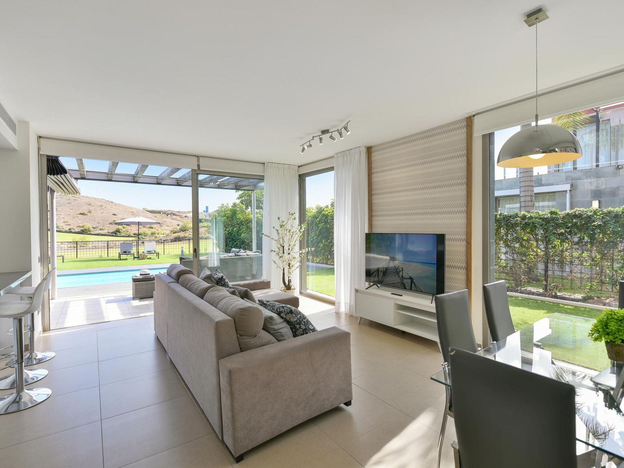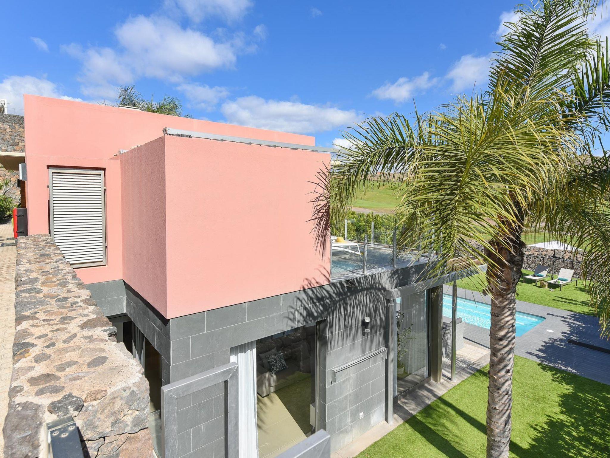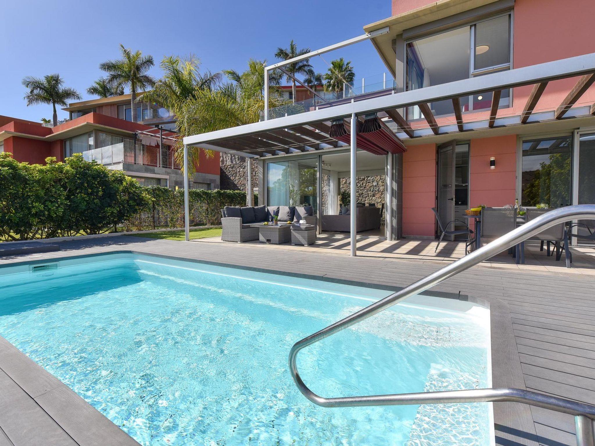 Modern, comfortable villa "Los Dragos 13". In the centre of Maspalomas, in a quiet, sunny position. Private: garden (fenced) with lawn, swimming pool angular (6 x 3 m, depth 100 - 100 cm, seasonal availability: 01.Jan. - 31.Dec.). Outdoor shower. In the house: sun terrace, air conditioning. Parking on the premises, public parking on the road. Bus stop "Las Crucitas" 19 km. The owner does not accept any youth groups. Please note: airfield 40 km from the property. Neighbourhood highly sensitive to noise. Quietness and good behaviour expected.