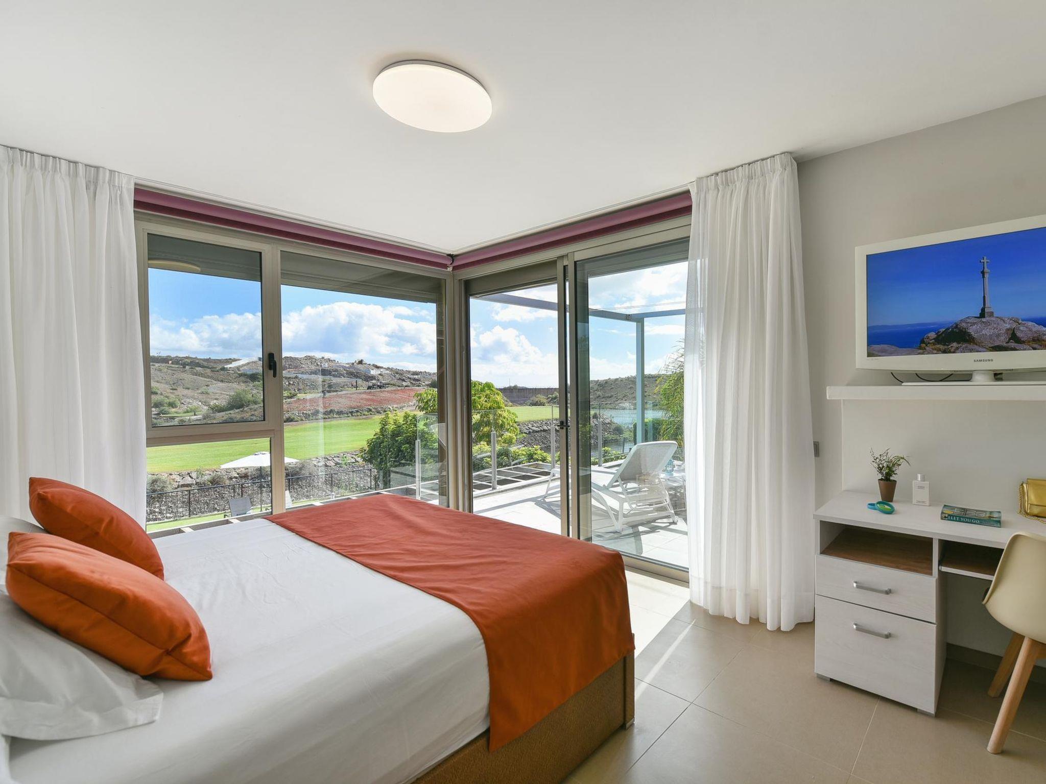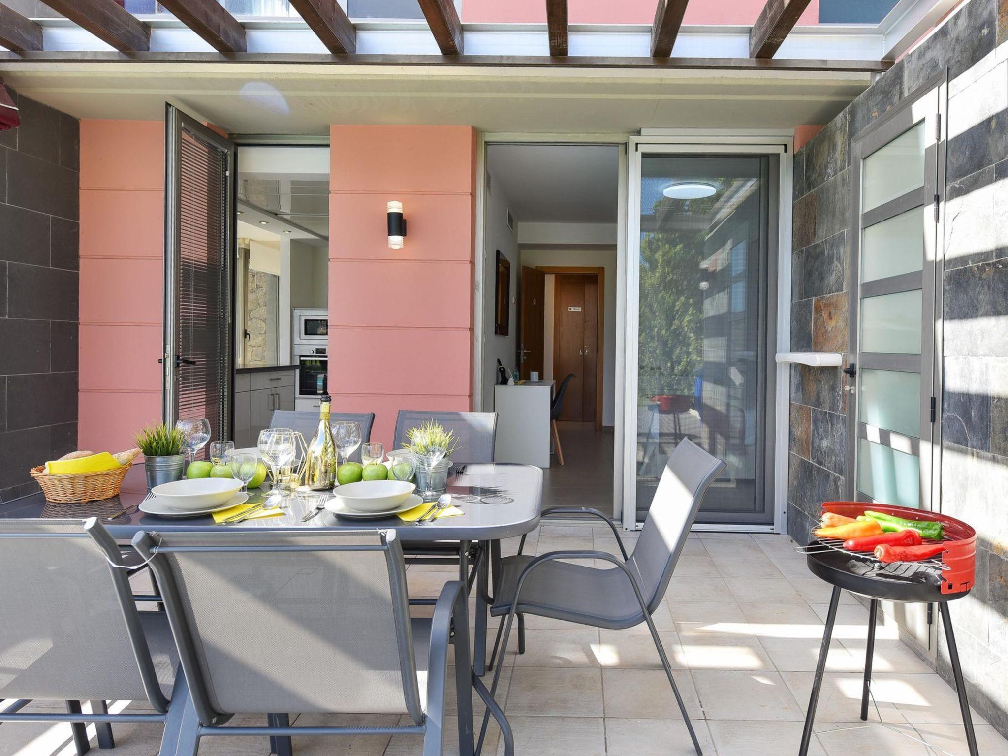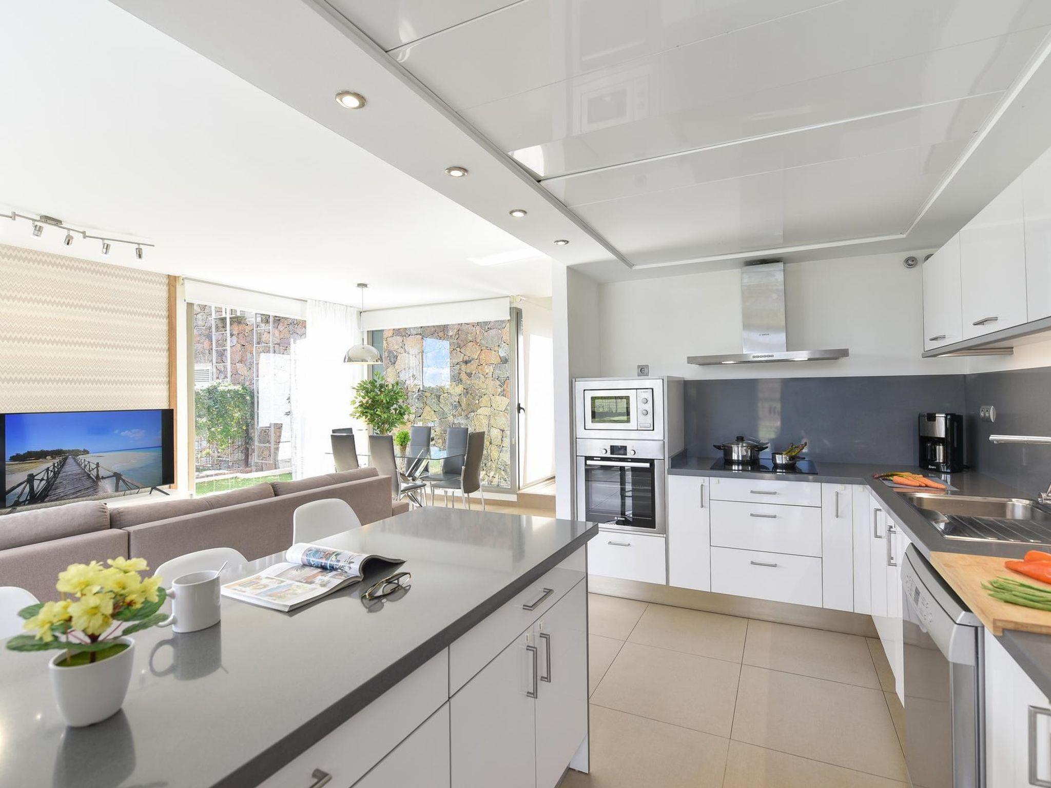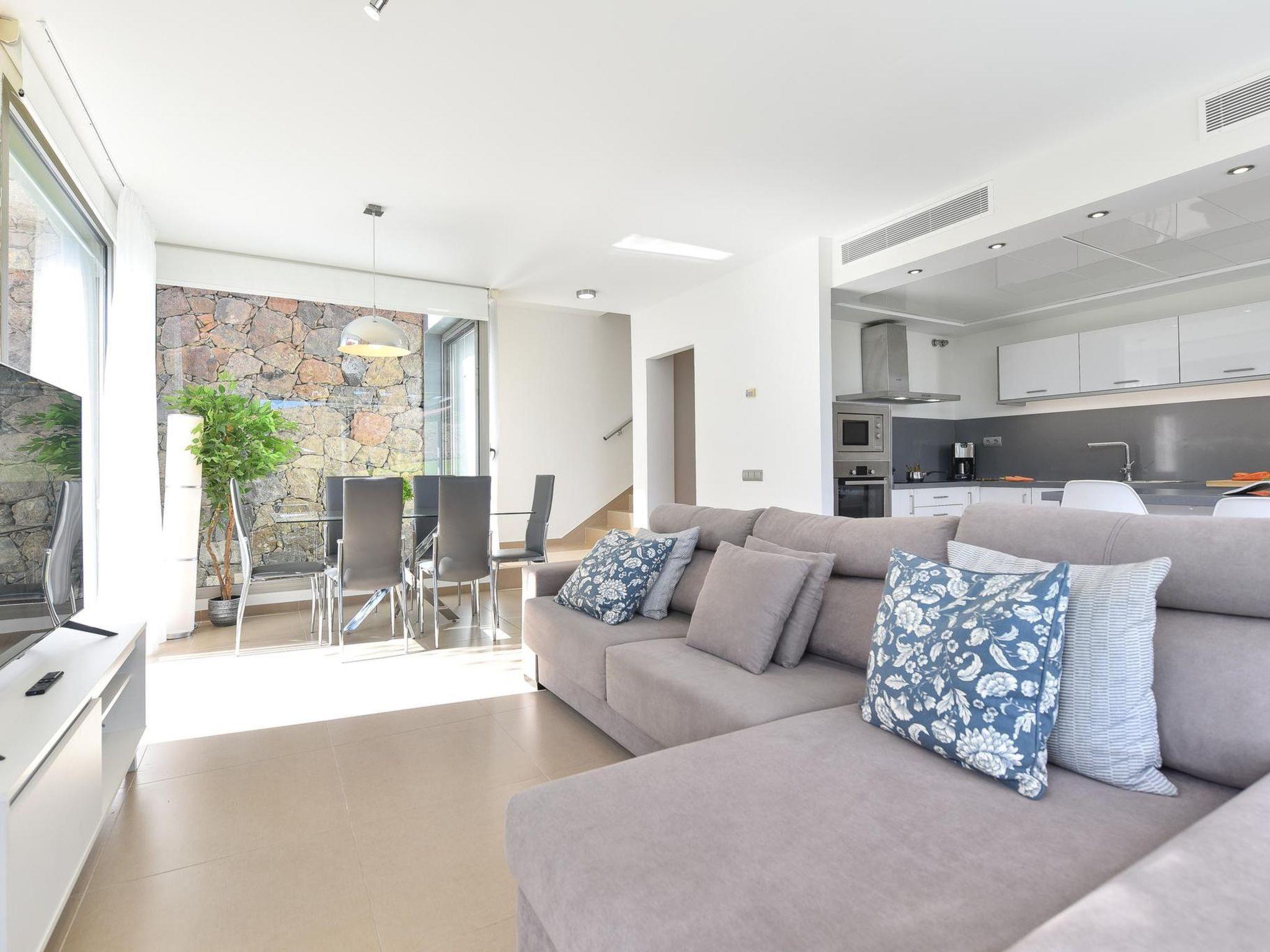 "Los Dragos 13", 3-room house 120 m2. Comfortable and modern furnishings: living/dining room with dining table, digital TV and air conditioning. Exit to the patio. 1 room with 1 french bed, shower/WC and air conditioning. Exit to the patio. Open kitchen (oven, dishwasher, 1 ceramic glass hob hotplate, toaster, kettle, microwave, freezer, electric coffee machine). Upper floor: 1 room with 1 french bed, shower/bidet/WC and air conditioning. Exit to the balcony. Patio. Terrace furniture, balcony furniture, deck chairs. View of the countryside. Facilities: washing machine, safe, iron, children's high chair, baby cot for up to 2 year olds, hair dryer. Internet (WiFi, free). Parking (1 car). Please note: non-smoking house. Maximum 1 pet/ dog allowed. 2022-T13112 // Reg. Nr.: ESFCTU0000350120004893540000000000000VV-35-1-00182294