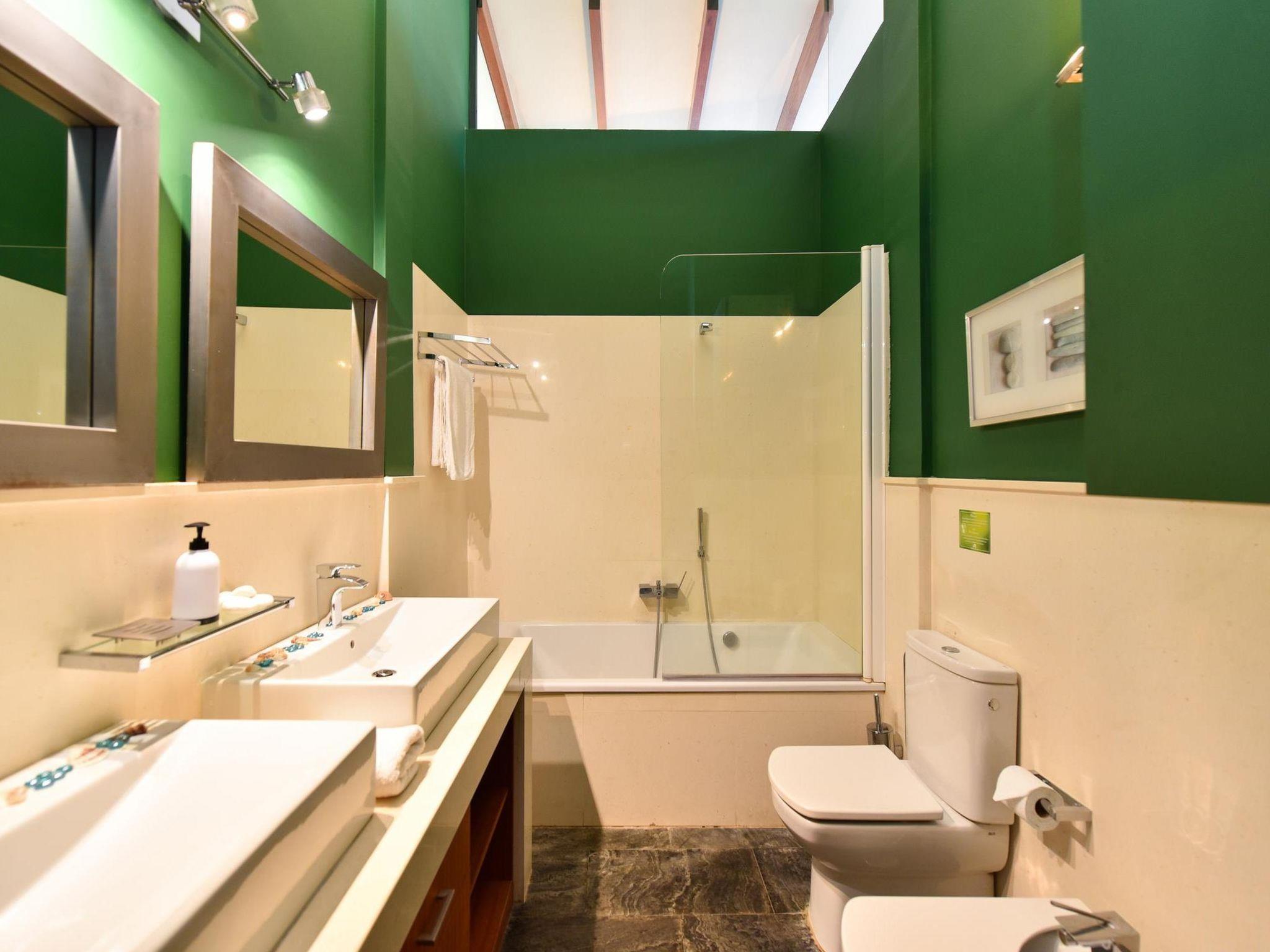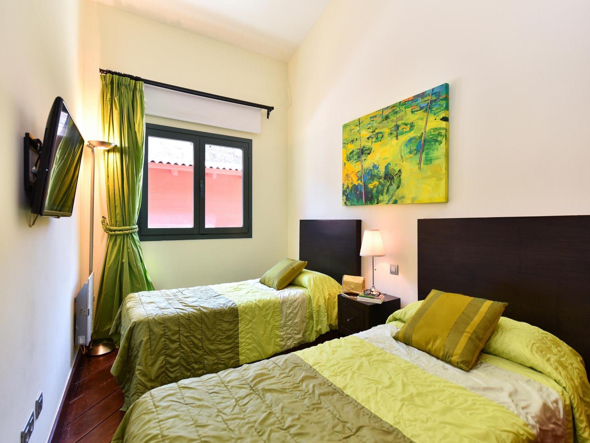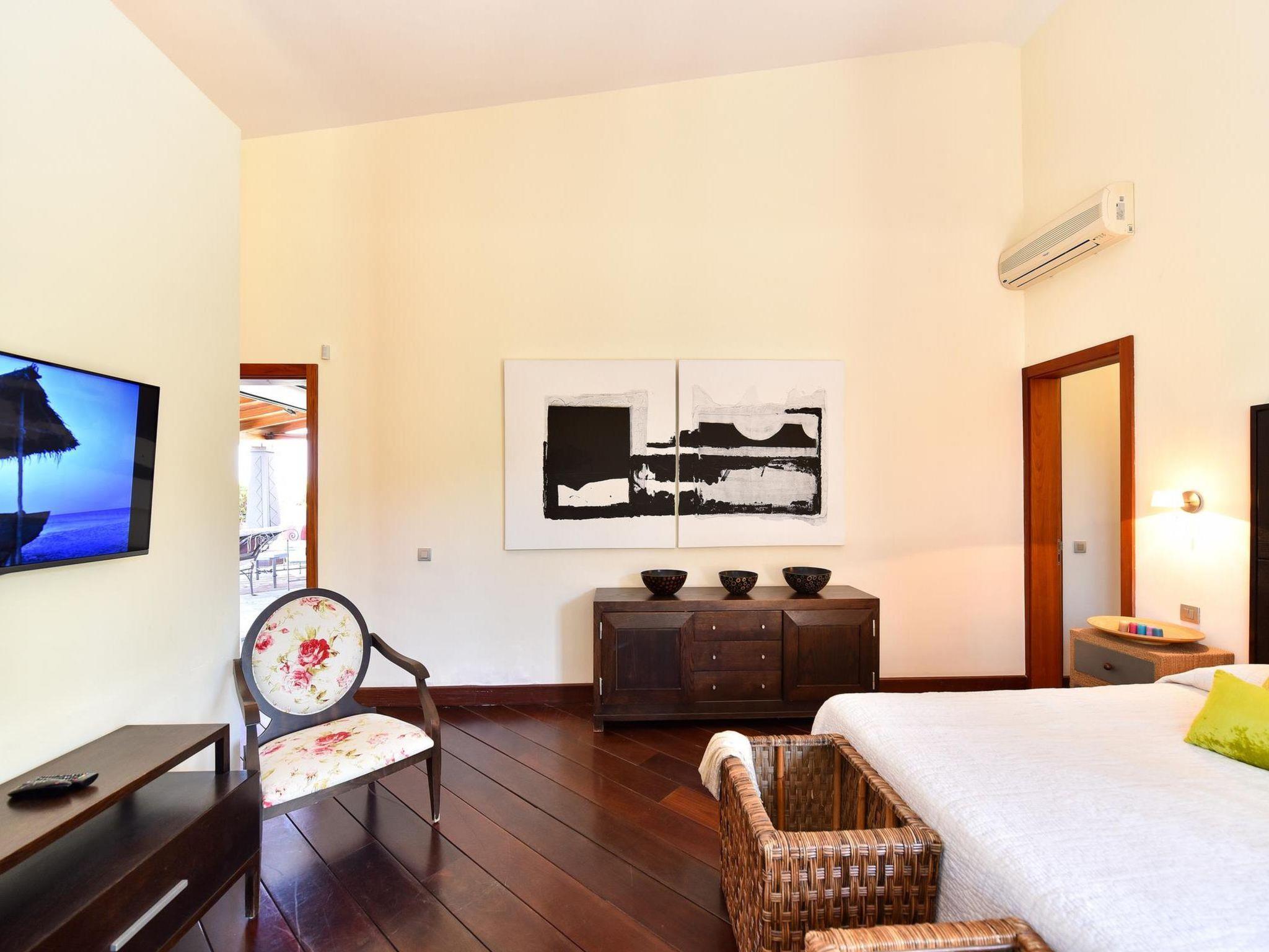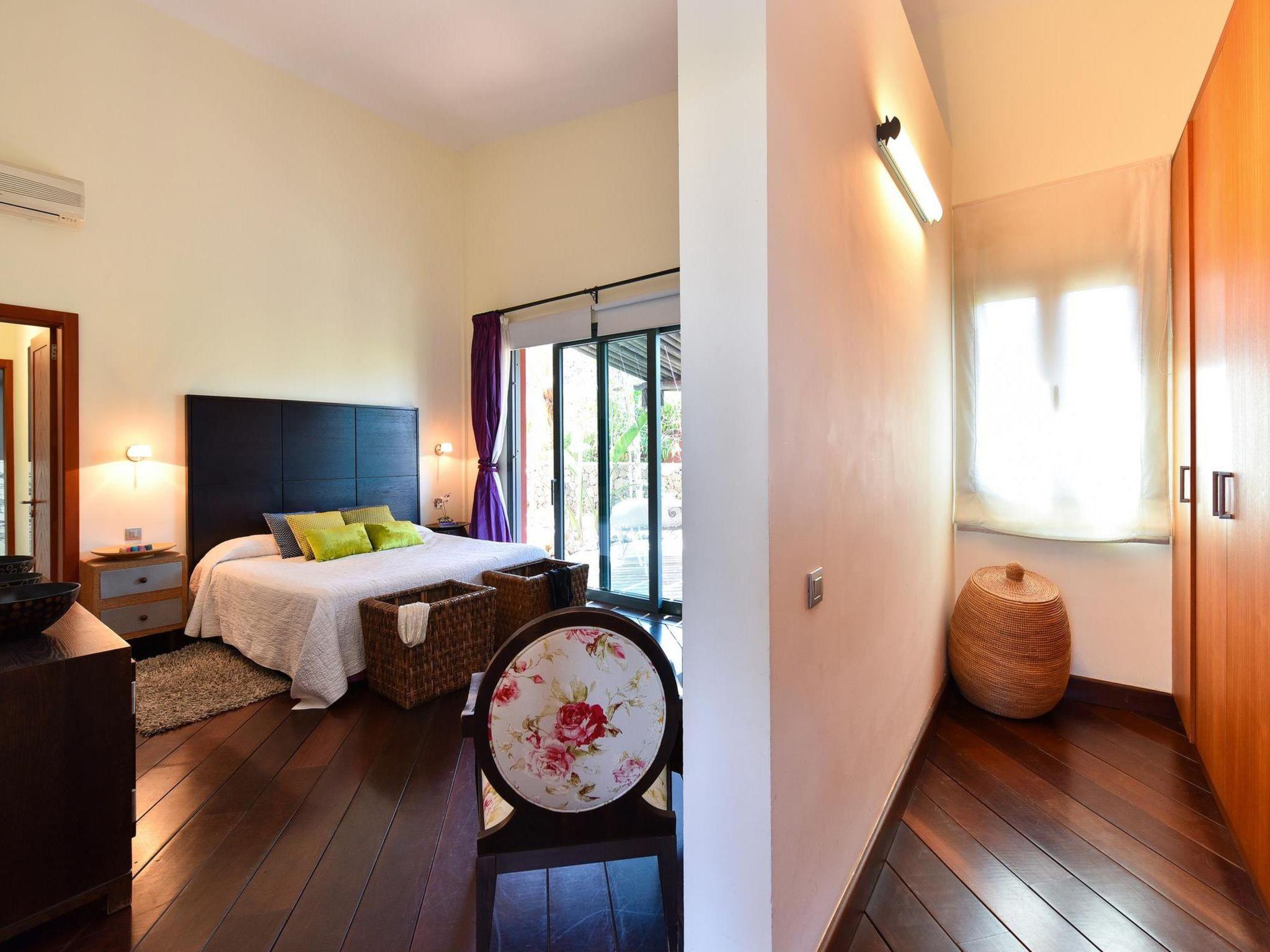 4-room house 250 m2. Spacious and bright, comfortable and modern furnishings: living/dining room with satellite TV and DVD. 1 room with 1 french bed (150 cm, length 190 cm), satellite TV, digital TV and air conditioning. 2 rooms, each room with 2 beds (90 cm, length 190 cm), satellite TV, digital TV and air conditioning. Open kitchen (oven, 1 ceramic glass hob hotplate, electric coffee machine). Exit to the terrace. Bath/WC, shower/WC. No heating option. Parquet floors. Terrace furniture, deck chairs (6). Facilities: dryer, safe, children's high chair, hair dryer. Internet (WiFi). Please note: suitable for families. Non-smokers only. Maximum 1 pet/ dog allowed. 2015/42 // Reg. Nr.: ESFCTU00003501200036396800000000000000E-35-1-00011353