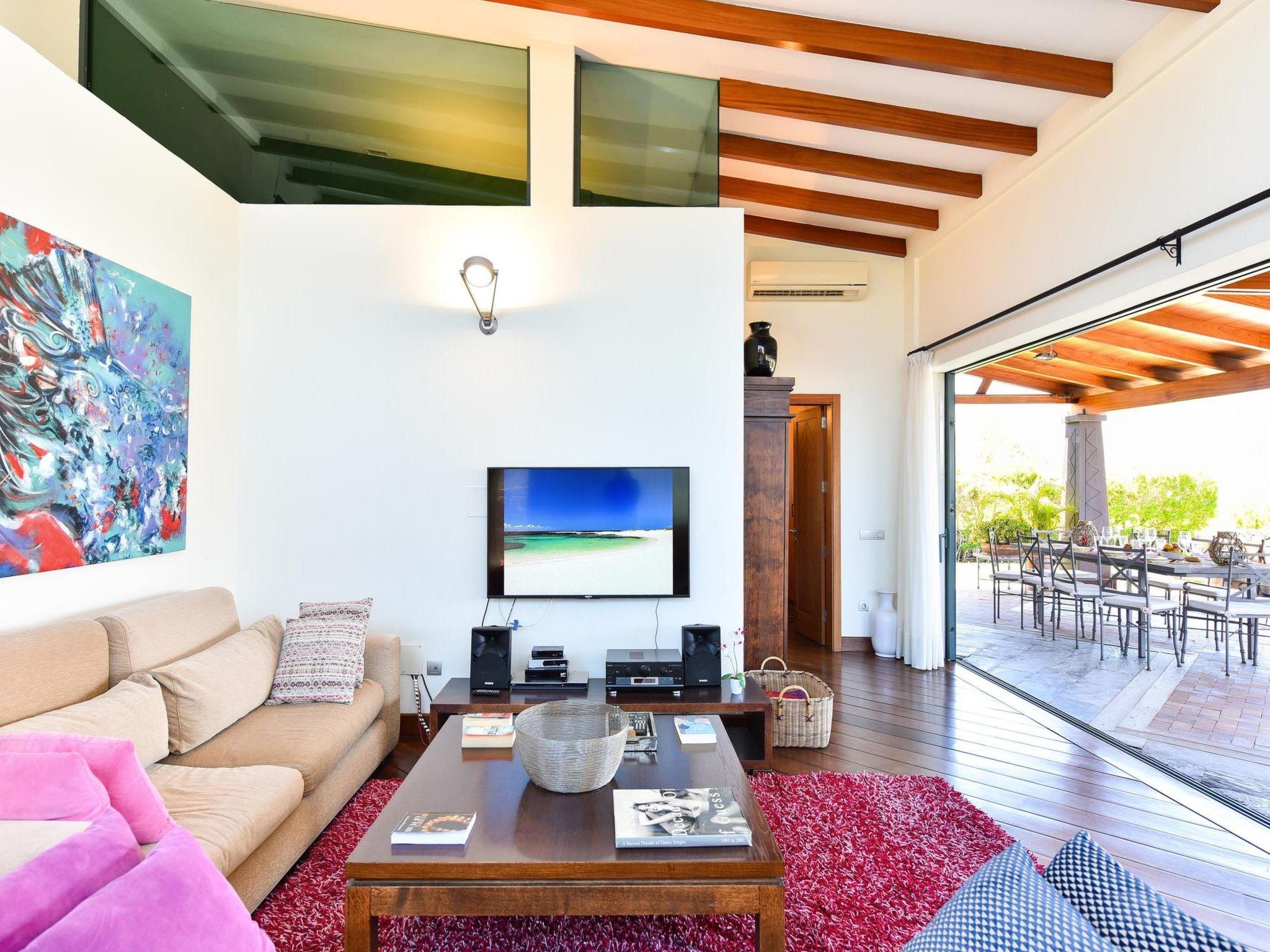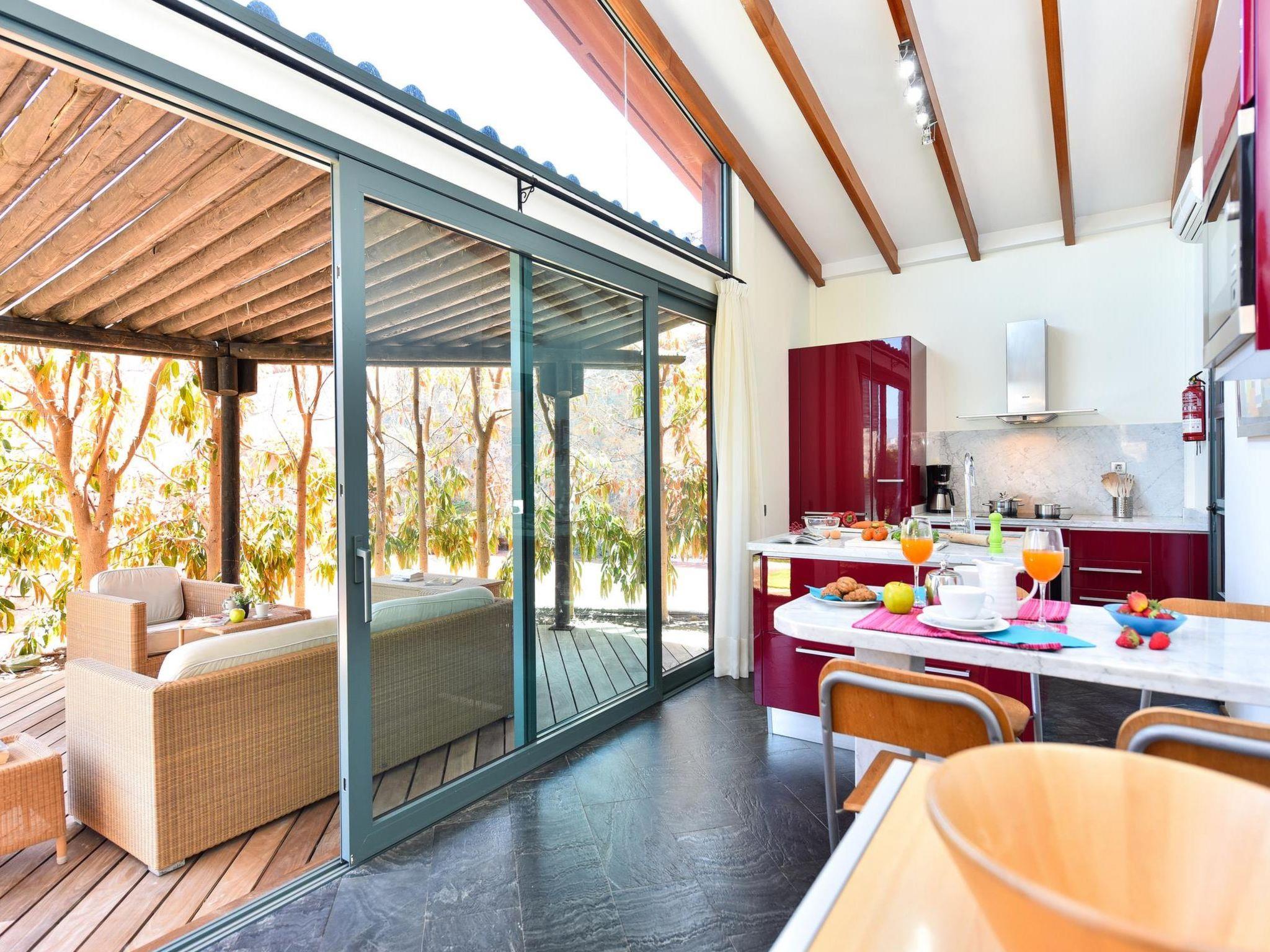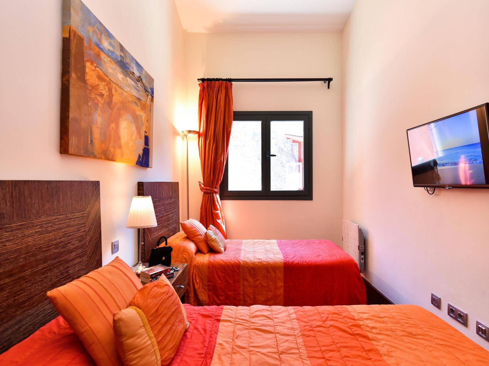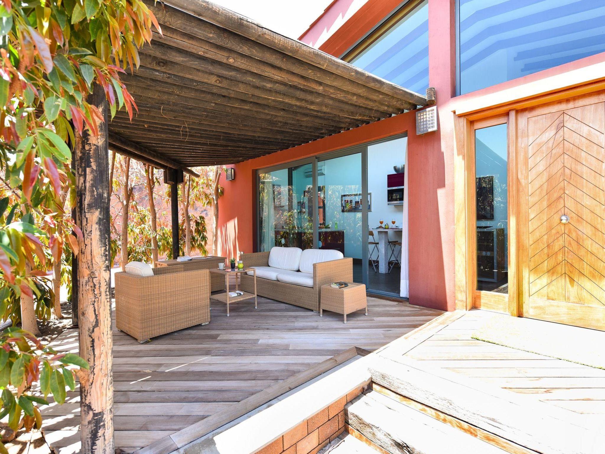 4-room house 250 m2. Spacious and bright, comfortable and modern furnishings: living/dining room with satellite TV and DVD. 1 room with 1 french bed (150 cm, length 190 cm), satellite TV, digital TV and air conditioning. 2 rooms, each room with 2 beds (90 cm, length 190 cm), satellite TV, digital TV and air conditioning. Open kitchen (oven, 1 ceramic glass hob hotplate, electric coffee machine). Exit to the terrace. Bath/WC, shower/WC. No heating option. Parquet floors. Terrace furniture, deck chairs (6). Facilities: dryer, safe, children's high chair, hair dryer. Internet (WiFi). Please note: suitable for families. Non-smokers only. Maximum 1 pet/ dog allowed. 2015/42 // Reg. Nr.: ESFCTU00003501200036396800000000000000E-35-1-00011353