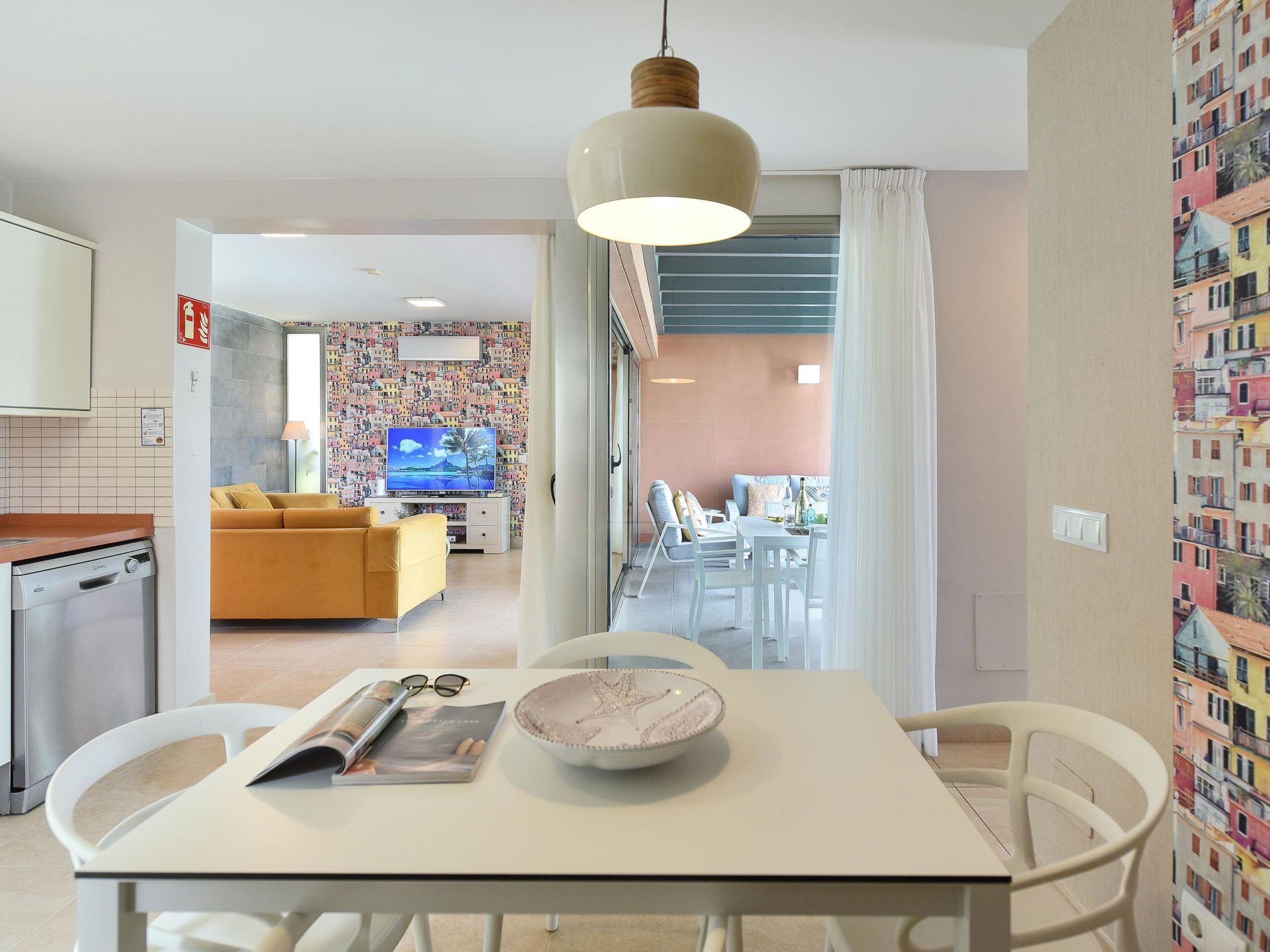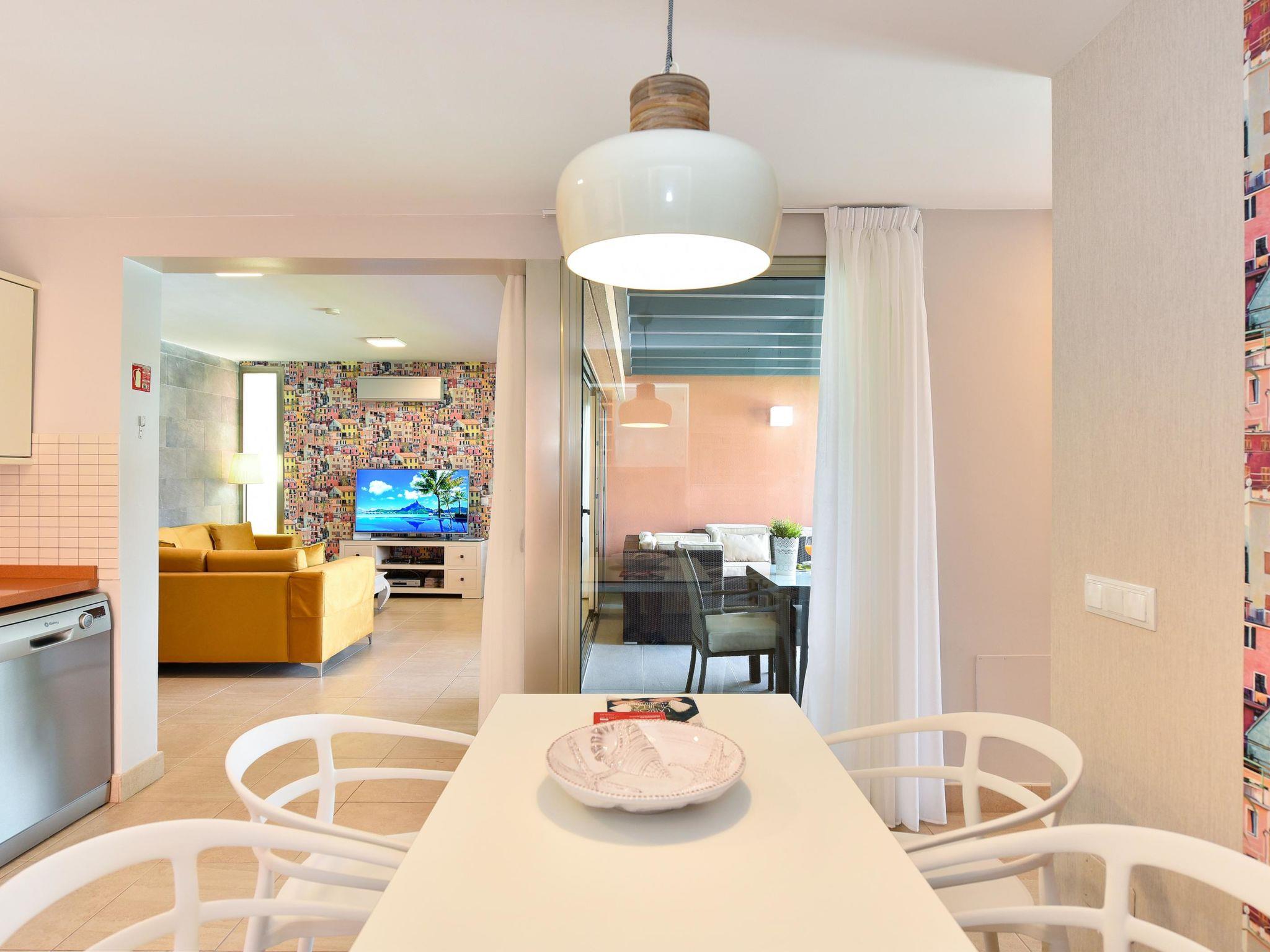 "Tipo 2 dormitorios", 3-room house 115 m2. Comfortable and modern furnishings: living room with satellite TV, digital TV and air conditioning. Exit to the patio, to the swimming pool. 1 room with 1 french bed and air conditioning. Exit to the patio. 1 room with 2 beds (90 cm, length 190 cm), satellite TV and digital TV. Kitchen (4 ceramic glass hob hotplates, toaster, kettle, microwave, freezer, electric coffee machine) with dining table, air conditioning. Bath/bidet/WC, shower/WC. Natural stone floors. Garden. Terrace furniture, barbecue, deck chairs (6). Beautiful view of the valley. Facilities: washing machine, safe, baby cot for up to 2 year olds, hair dryer. Internet (WiFi). Suitable for families. Maximum 1 pet/ dog allowed. 2022-T12638 // Reg. Nr.: ESFCTU0000350120004734900000000000000VV-35-1-00181765