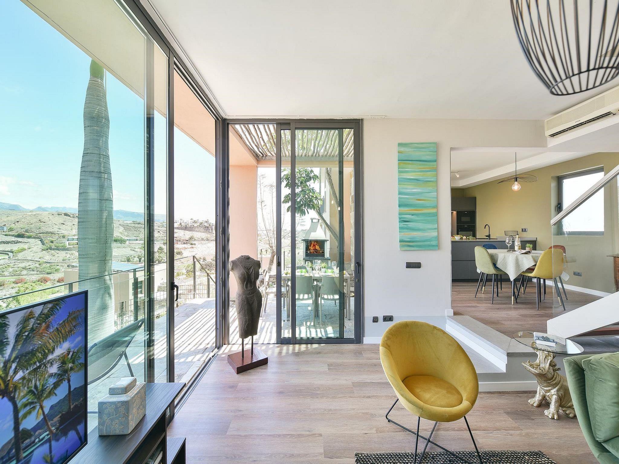 Modern, beautiful single-family house "Los Lagos 37". On the outskirts Maspalomas, in a quiet position, in the countryside. For shared use: property (fenced), 2 swimming pools heated (seasonal availability: 01.Jan. - 31.Dec.). Private: garden (fenced) with lawn. Barbecue. In the house: sun terrace, air conditioning. Parking on the premises, public parking on the road. Bus stop "Las Crucitas" 19 km. The owner does not accept any youth groups. Neighbourhood highly sensitive to noise. Quietness and good behaviour expected.