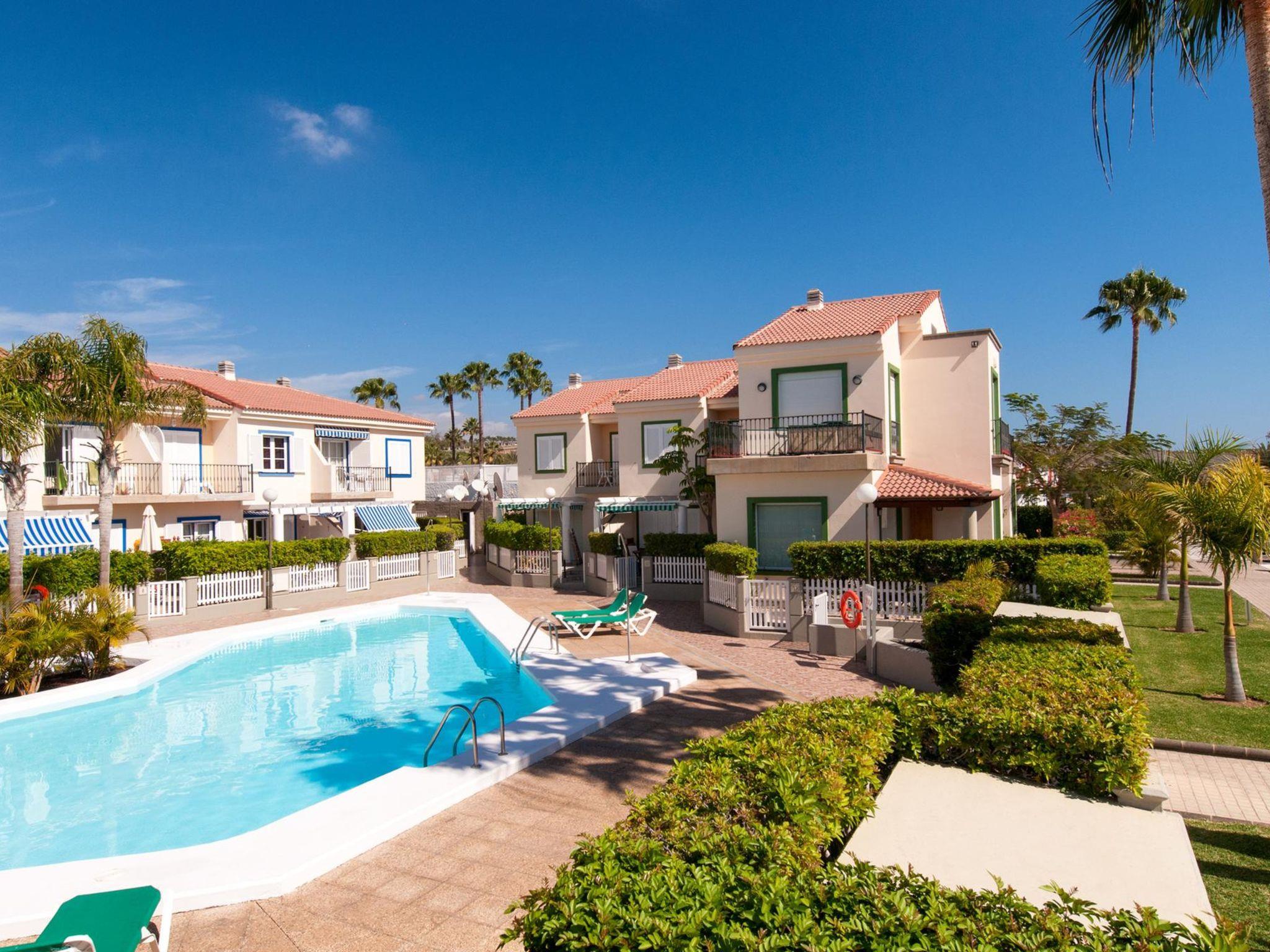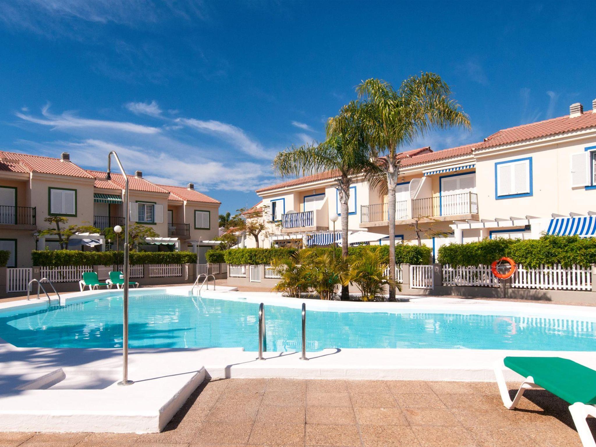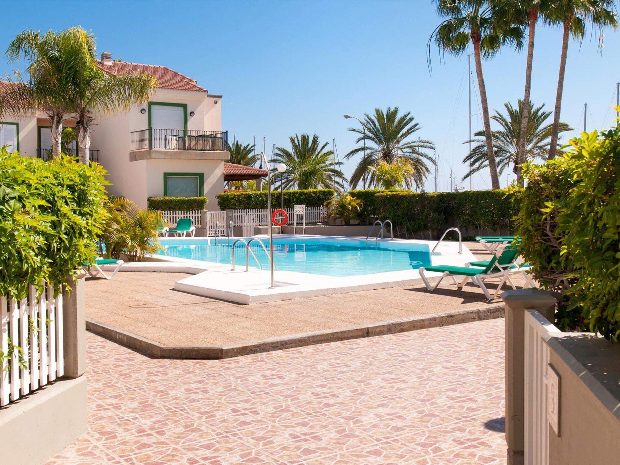 Large, child friendly, cosy holiday development "Marina Port 4". In the centre of Pasito Blanco meloneras a 3 km, in a quiet, sunny position. For shared use: swimming pool (12 x 8 m, seasonal availability: 01.Jan. - 31.Dec.). Outdoor shower. In the house: air conditioning, washing machine. Parking on the premises, public parking on the road. Shop 3 km, supermarket 100 m, restaurant 500 m, bus stop "Cruce Pasito Blanco" 5 km, sandy beach "100". Golf course (18 hole) 2.3 km. Please note: car recommended. Suitable for families, suitable for seniors baby equipment on request. The owner does not accept any youth groups. Motorway 1 km from the property. Airfield 25 km from the property. Neighbourhood highly sensitive to noise. Quietness and good behaviour expected.