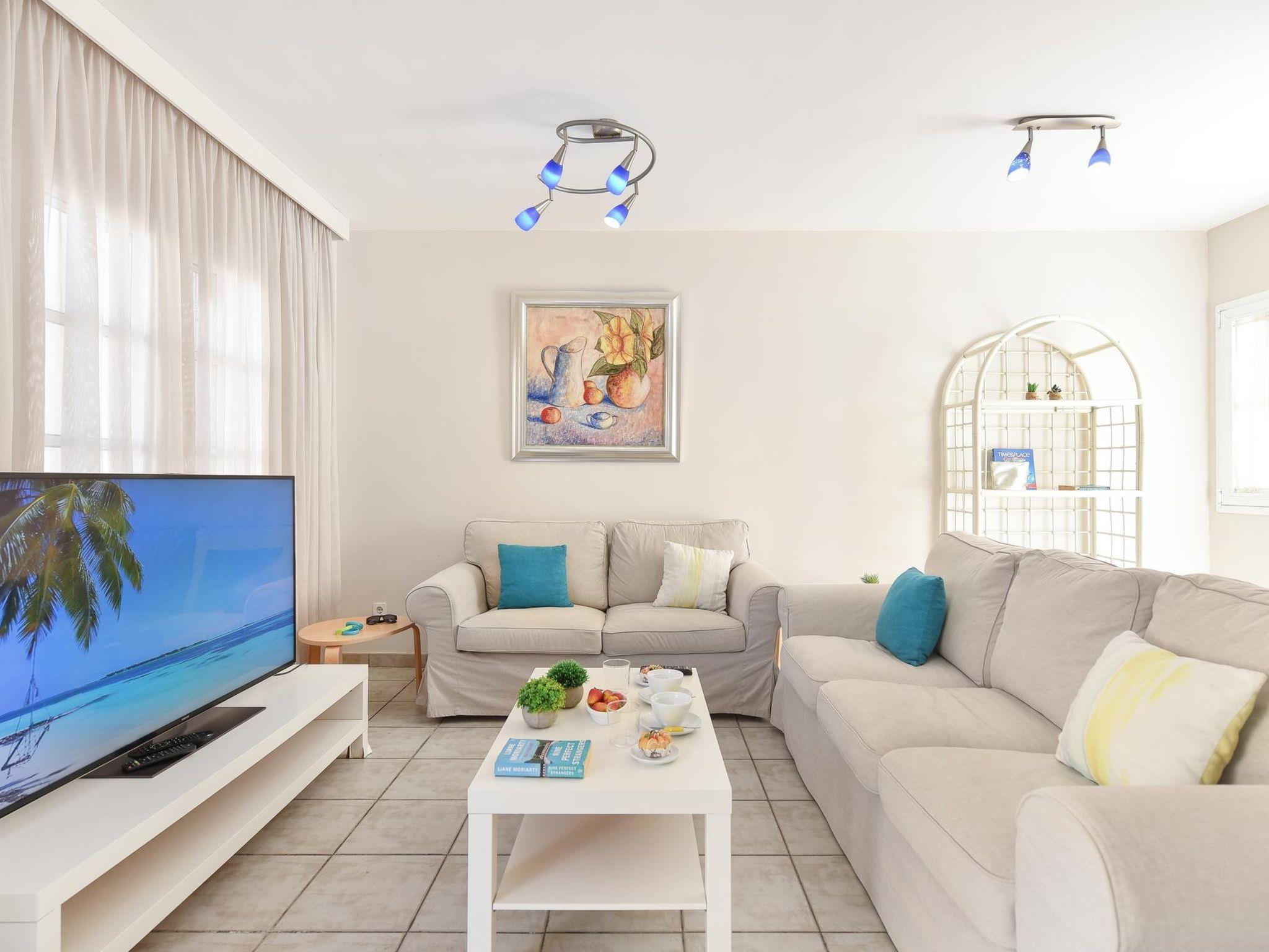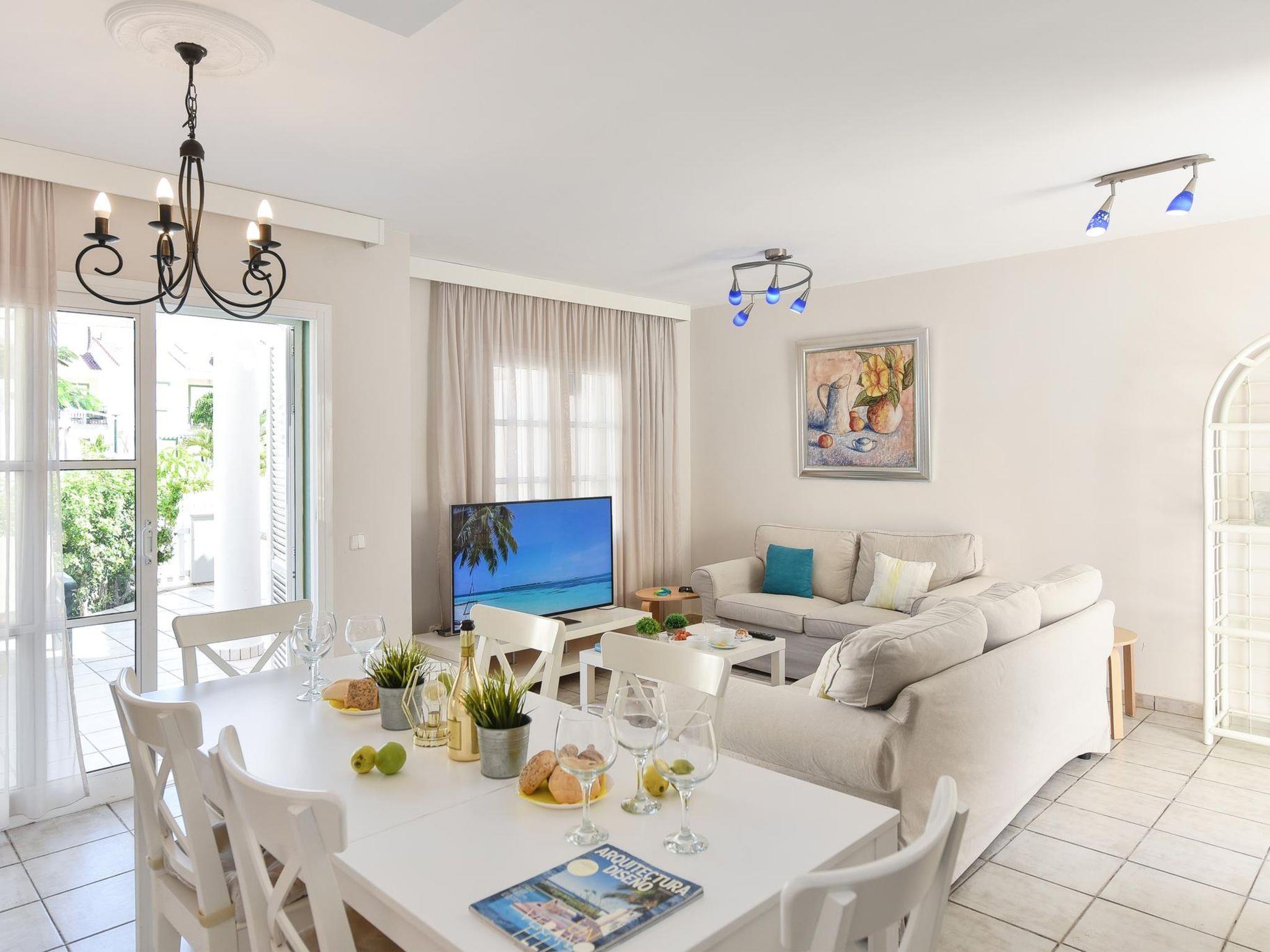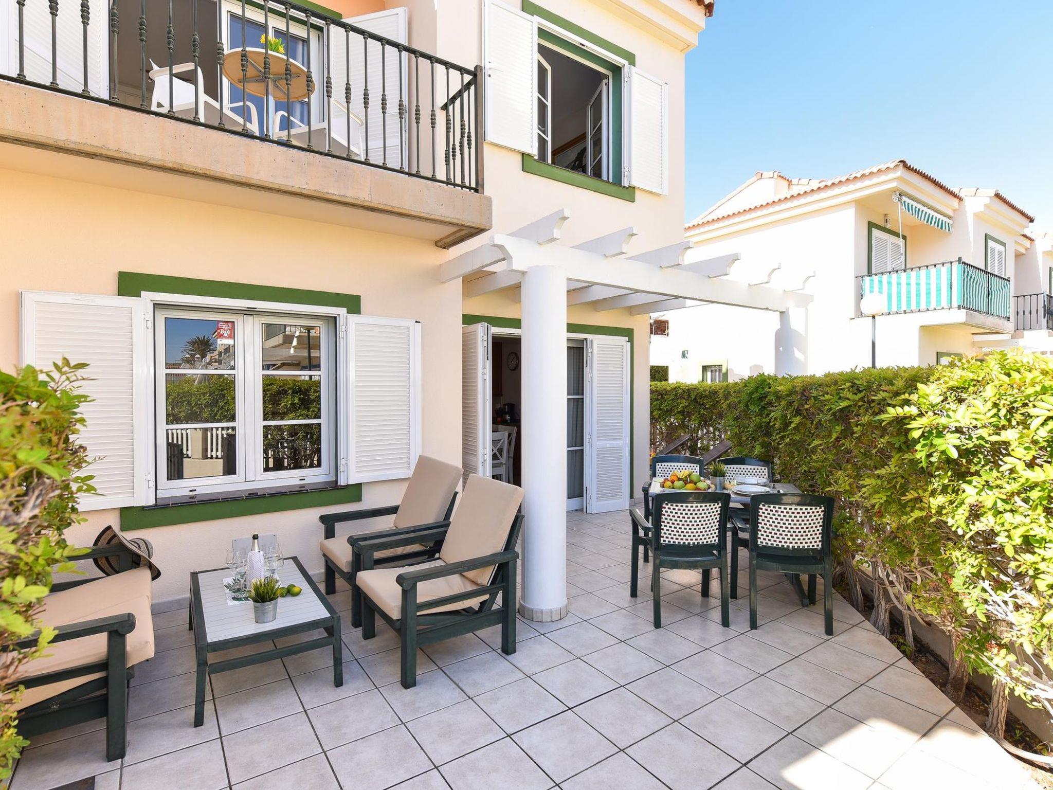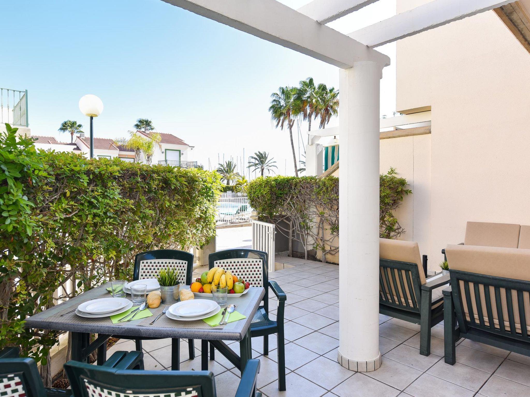 Large, child friendly, cosy holiday development "Marina Port 4". In the centre of Pasito Blanco meloneras a 3 km, in a quiet, sunny position. For shared use: swimming pool (12 x 8 m, seasonal availability: 01.Jan. - 31.Dec.). Outdoor shower. In the house: air conditioning, washing machine. Parking on the premises, public parking on the road. Shop 3 km, supermarket 100 m, restaurant 500 m, bus stop "Cruce Pasito Blanco" 5 km, sandy beach "100". Golf course (18 hole) 2.3 km. Please note: car recommended. Suitable for families, suitable for seniors baby equipment on request. The owner does not accept any youth groups. Motorway 1 km from the property. Airfield 25 km from the property. Neighbourhood highly sensitive to noise. Quietness and good behaviour expected.