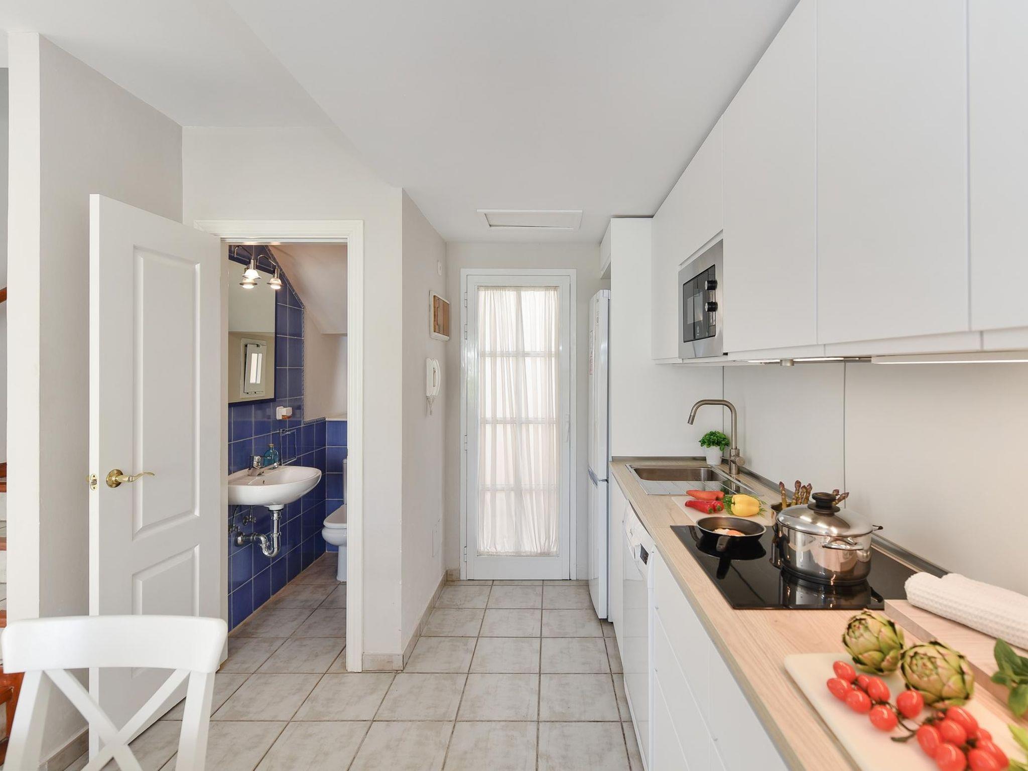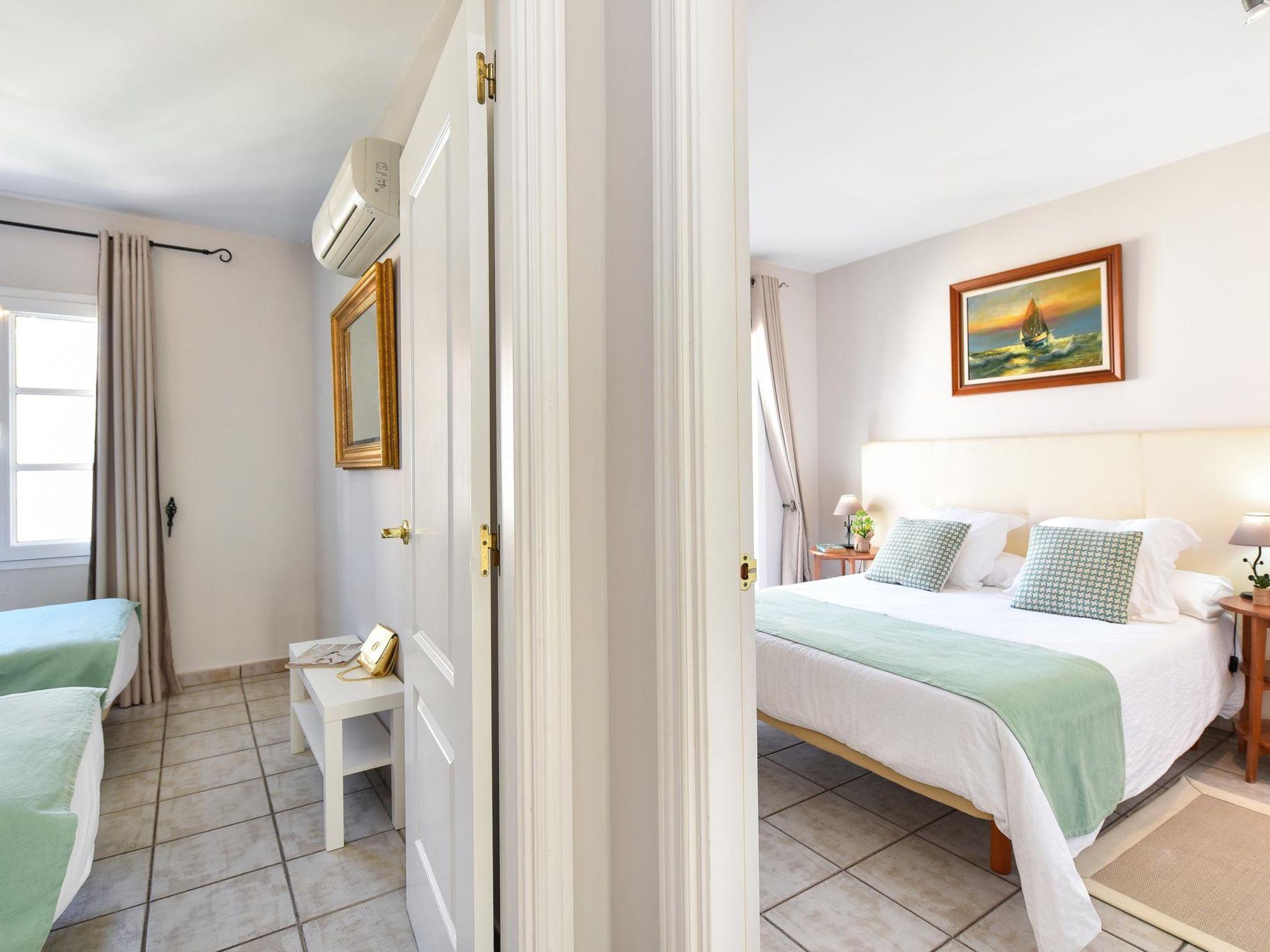 "Cabosos 4", 3-room apartment 70 m2 on 2 levels. Simple and cosy furnishings: living room with dining nook, satellite TV and digital TV. Exit to the terrace. Open kitchen (oven, 4 ceramic glass hob hotplates, toaster, kettle, microwave, freezer, electric coffee machine) with dining table. Sep. WC. Upper floor: 1 room with 1 french bed and air conditioning. Exit to the balcony. 1 room with 2 beds and air conditioning. Shower/WC. Terrace. Terrace furniture. Facilities: washing machine, safe, iron, children's high chair, baby cot for up to 2 year olds, hair dryer. Internet (WiFi, free). Parking (1 car). Please note: non-smokers only. Maximum 1 pet/ dog allowed. VV-35-1-0015783 // Reg. Nr.: ESFCTU0000350120001816470000000000000000VV35100157835