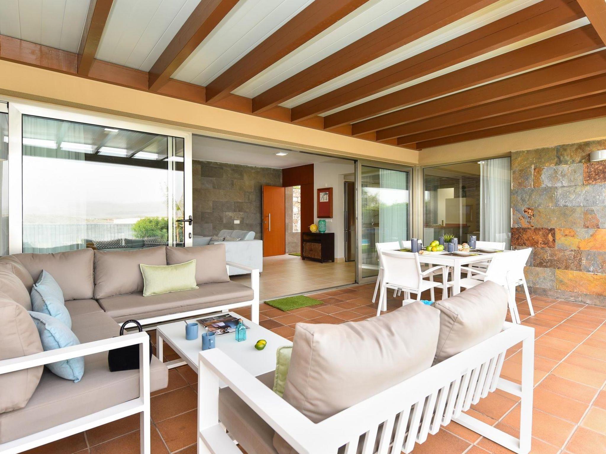 Modern, comfortable villa "Par 4 Villa 9 with Pool Salobre". In the centre of Salobre Golf Resort, on the outskirts Maspalomas 5 km, outside the resort Meloneras 7 km, in a quiet, sunny, elevated position. Private: garden (fenced) with lawn 80 m2, swimming pool angular (8 x 4 m, depth 140 - 140 cm, seasonal availability: 01.Jan. - 31.Dec.). Barbecue. In the house: sun terrace, air conditioning. Parking on the premises, public parking on the road. Shop 4 km, supermarket 3 km, restaurant 200 m, bus stop "Las Crucitas" 19 km, sandy beach 10 km. Golf course (18 hole) 50 m. Please note: car recommended. The owner does not accept any youth groups. Airfield 40 km from the property. Neighbourhood highly sensitive to noise. Quietness and good behaviour expected.