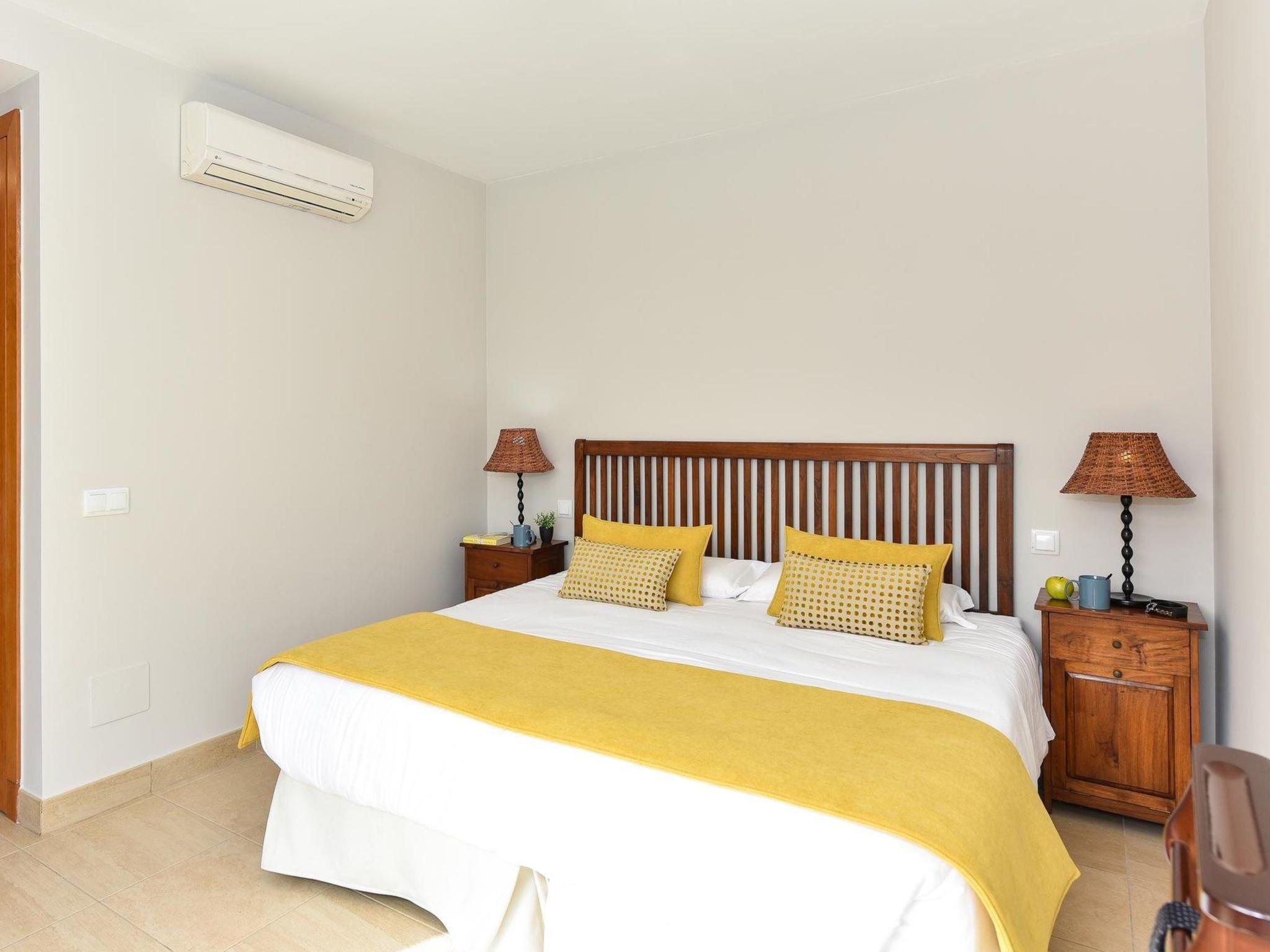 "P9", 4-room house 115 m2. Comfortable and modern furnishings: living room with satellite TV, digital TV, video, hi-fi system, DVD and air conditioning. Exit to the patio. 1 room with 1 french bed, shower/WC and air conditioning. Exit to the garden. 2 rooms, each room with 2 beds and air conditioning. Open kitchen (oven, dishwasher, toaster, kettle, microwave, freezer, electric coffee machine) with dining table, air conditioning. Shower/WC. Patio. Terrace furniture, barbecue. View of the mountains and the resort. Facilities: washing machine, dryer, safe, iron, children's high chair, baby cot for up to 2 year olds, hair dryer. Internet (WiFi, free). Parking (1 car). Please note: non-smoking house. Maximum 1 pet/ dog allowed. 2019/4522 // Reg. Nr.: ESFCTU0000350120004735060000000000000VV-35-1-00040923