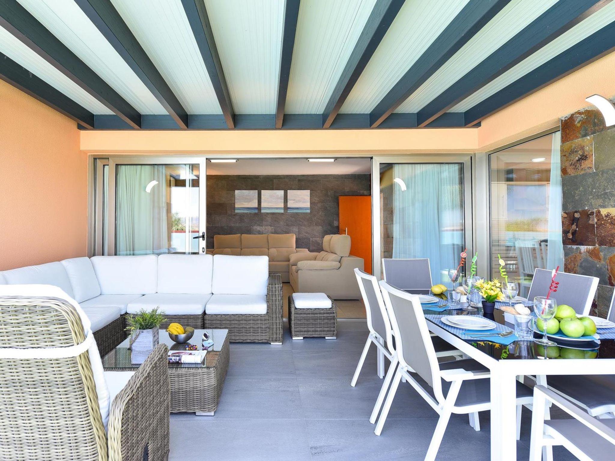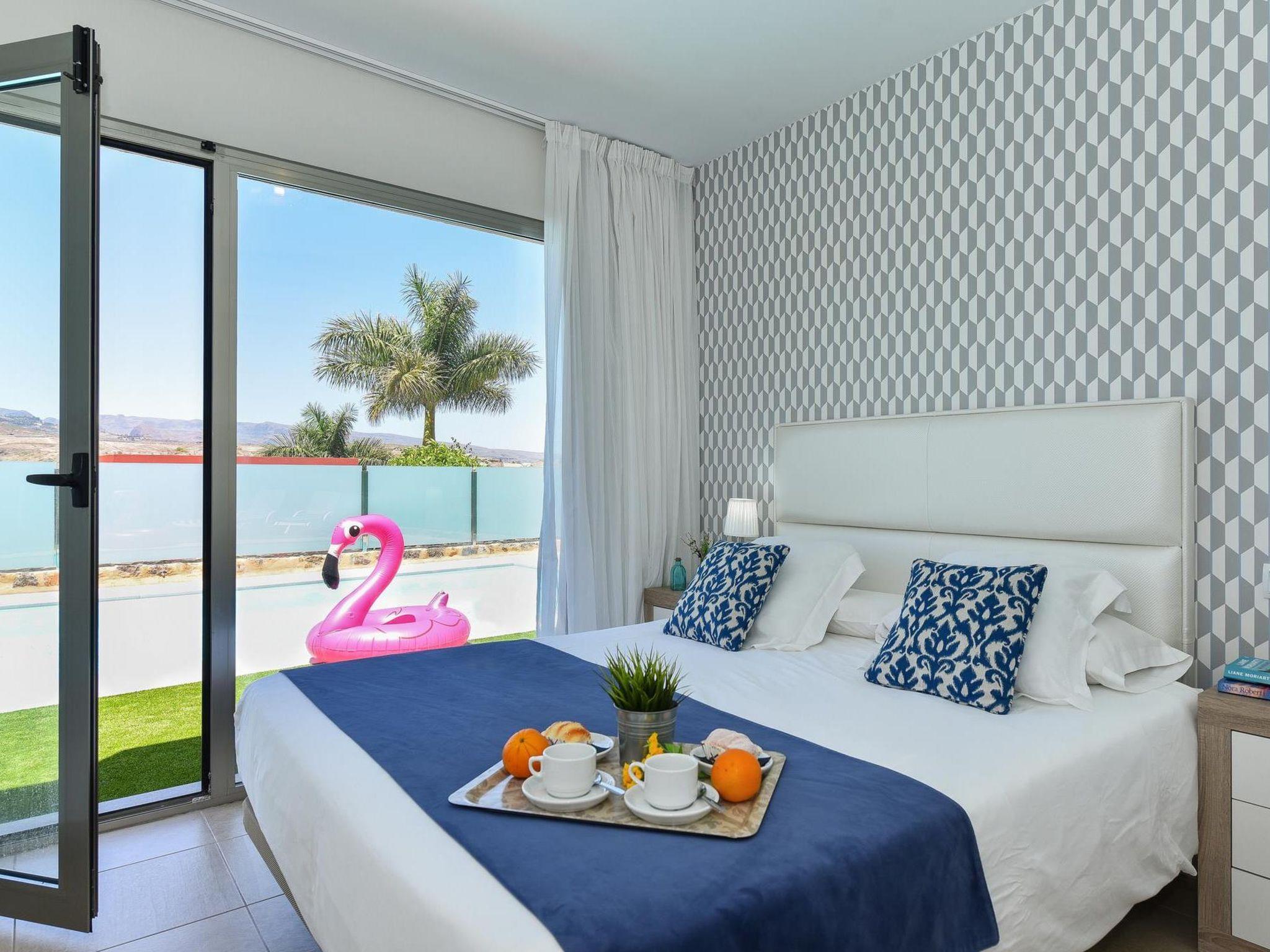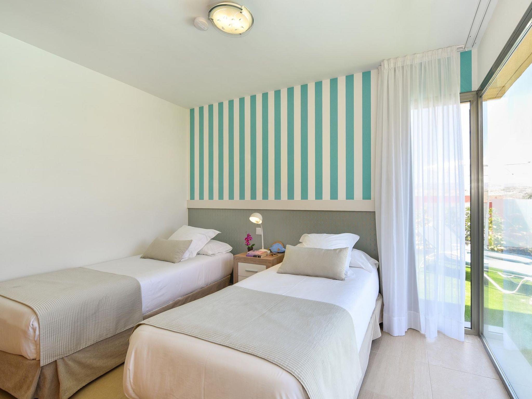 Modern villa "Par4 Villa 13", surrounded by fields. Maspaloma, on the outskirts Salobre, in a quiet, sunny position. For shared use: property, swimming pool (8 x 4 m, seasonal availability: 01.Jan. - 31.Dec.). Private: garden 210 m2. In the house: WiFi, air conditioning, washing machine, tumble dryer. E-charging station. Supermarket 1 km, restaurant 400 m, bus stop "Las Crucitas" 19 km, sandy beach "11000". Golf course (18 hole) 100 m. Please note: car recommended. Baby equipment on request. The owner does not accept any youth groups. Motorway 1.6 km from the property.