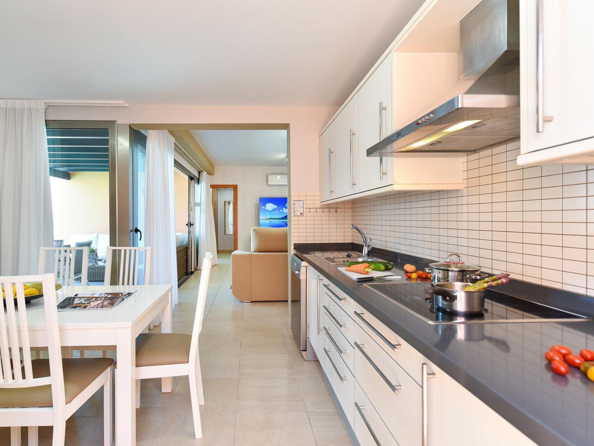 "Villa", 3-room house 90 m2. Modern and luxurious furnishings: living/dining room with 1 double sofabed, TV, satellite TV and digital TV with 2 beds with 1 double bed. Open kitchen (oven, dishwasher, 4 ceramic glass hob hotplates, microwave, freezer) with dining table. Bath/shower/WC. Parquet floors. Patio. Deck chairs (4). Facilities: washing machine, dryer, safe, iron, children's high chair, baby cot for up to 2 year olds, hair dryer. Internet (WiFi). E-charging station. Please note: suitable for families. Non-smokers only. Maximum 1 pet/ dog allowed. 2016/4696 // Reg. Nr.: ESFCTU00003501200047354400000000000000VV-35-100139486