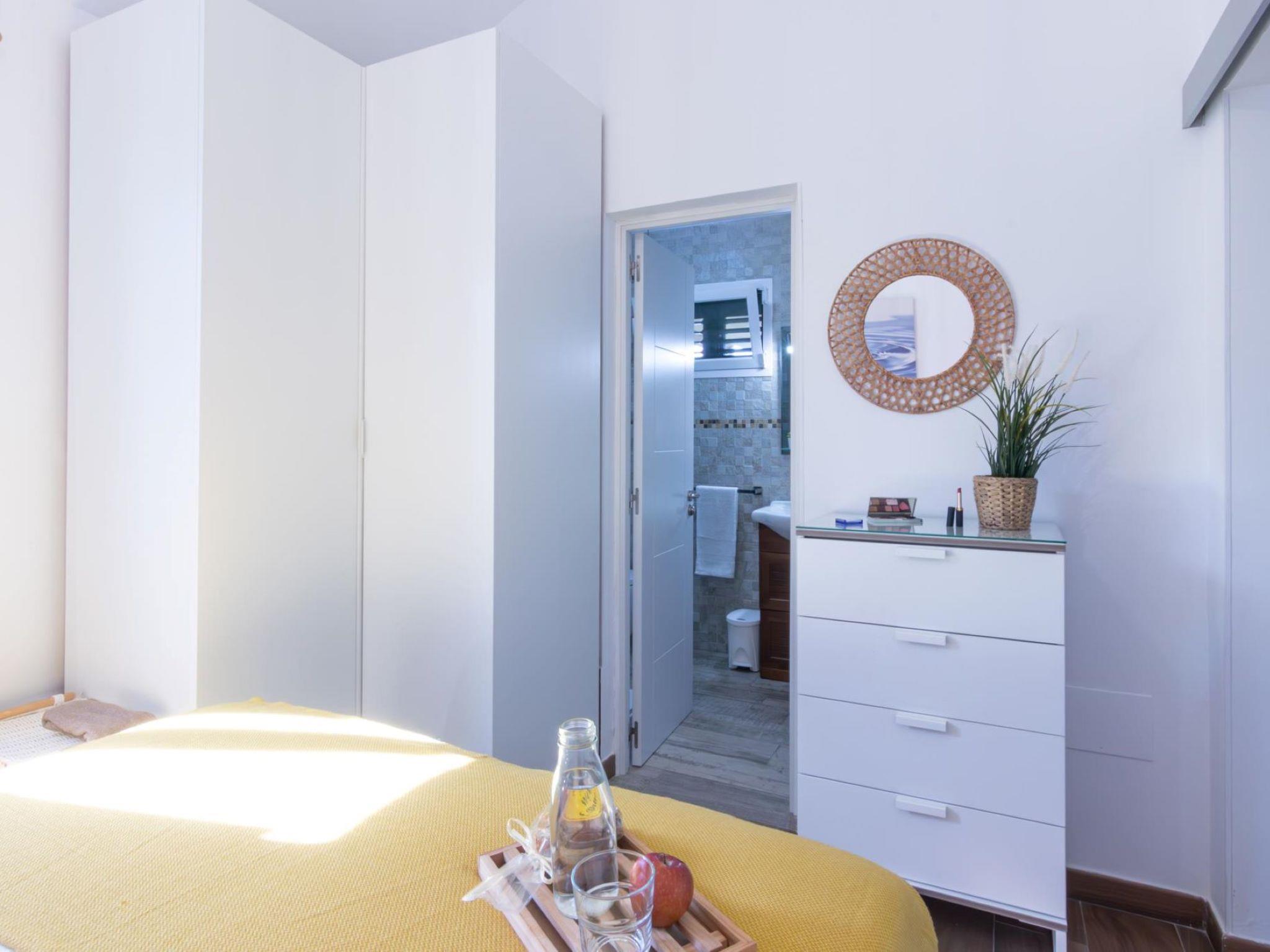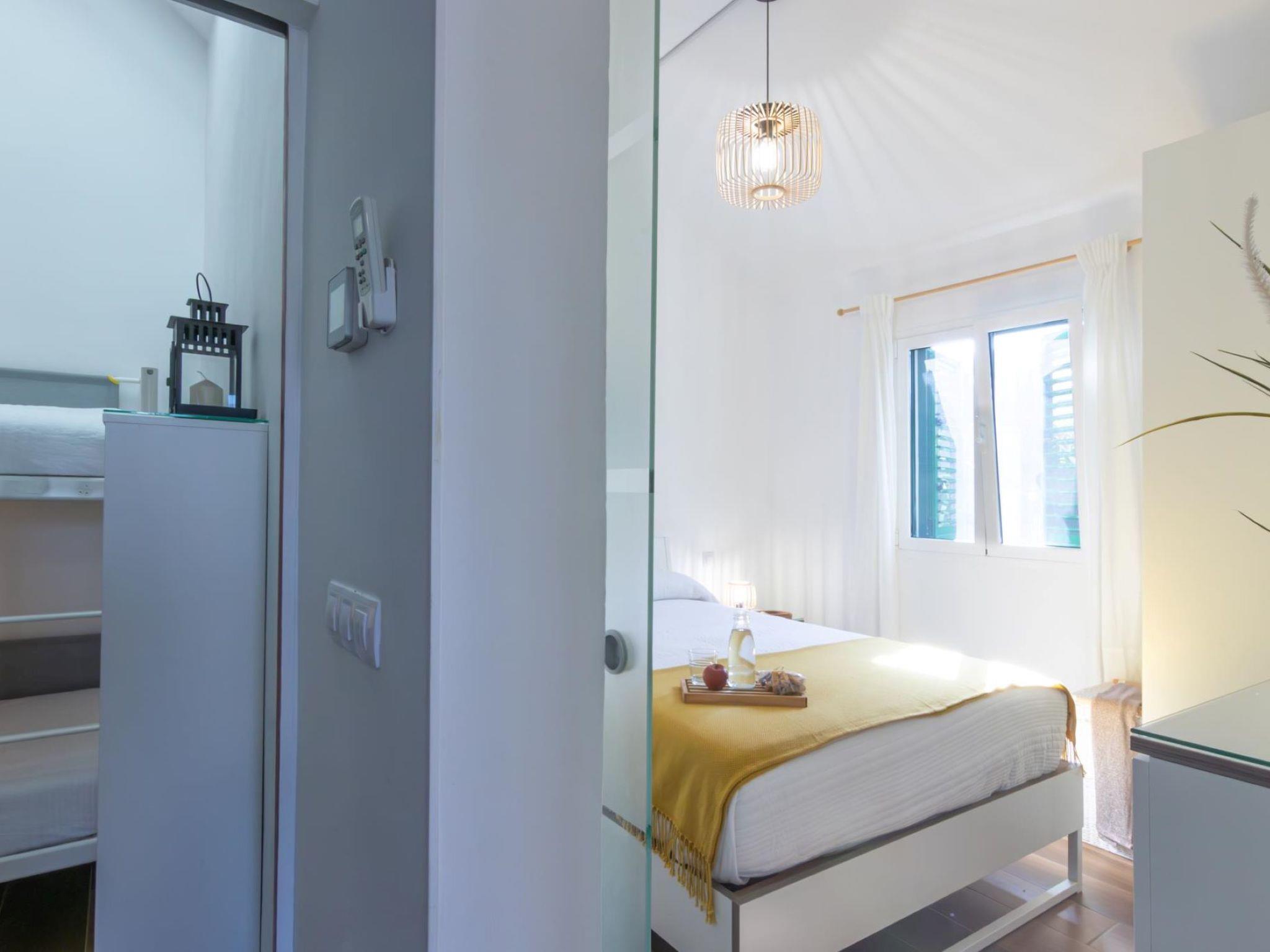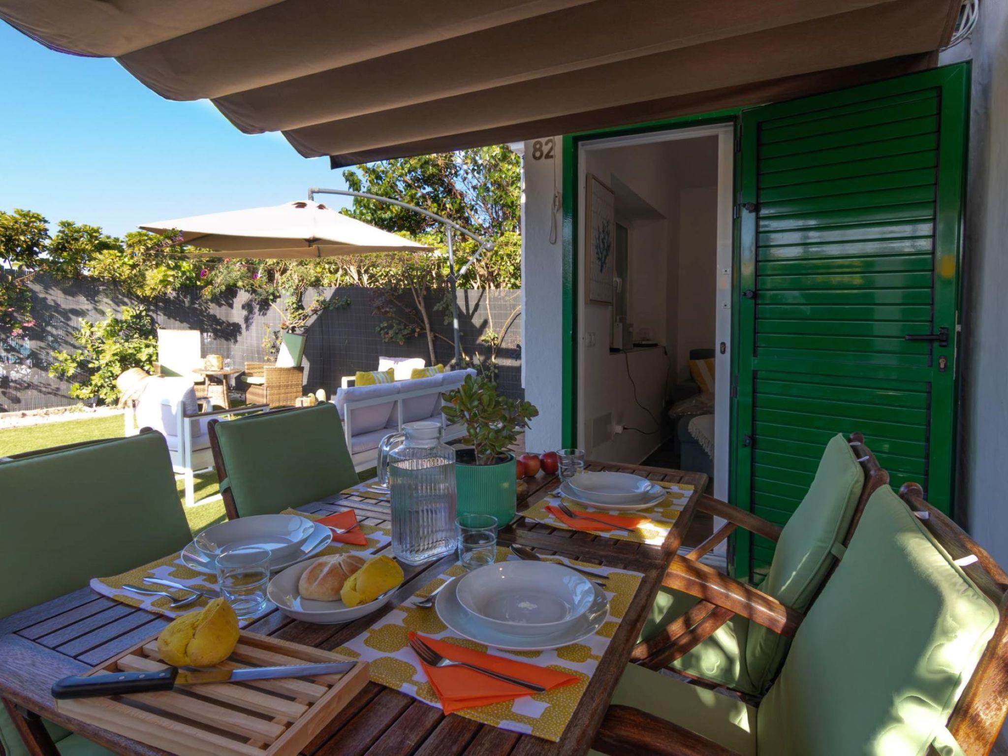 "Playa Flor 82", 3-room bungalow 45 m2. Object suitable for 2 adults + 2 children. Bright, very simple and cosy furnishings: open living/dining room with TV, flat screen and air conditioning. Exit to the patio. 1 room with 1 double bed. 1 room with 1 x 2 bunk beds. Open kitchen (oven, dishwasher, 4 ceramic glass hob hotplates, toaster, microwave, freezer, electric coffee machine) with dining table. Shower/WC. Natural stone floors. Patio, porch. Terrace furniture, barbecue, deck chairs. Facilities: washing machine, dryer, children's high chair, baby cot for up to 2 year olds, hair dryer. Internet (WiFi, free). Please note: suitable for families. Non-smokers only. Late arrivals will have an extra cost to be paid in cash: 20:30-22:00: 30€, 22:00-00:00: 50€, 00:00-01:30: 80€. RGE/176361/2024 // Reg. Nr.: ESFCTU0000350130000748780000000000000VV-35-1-00223791