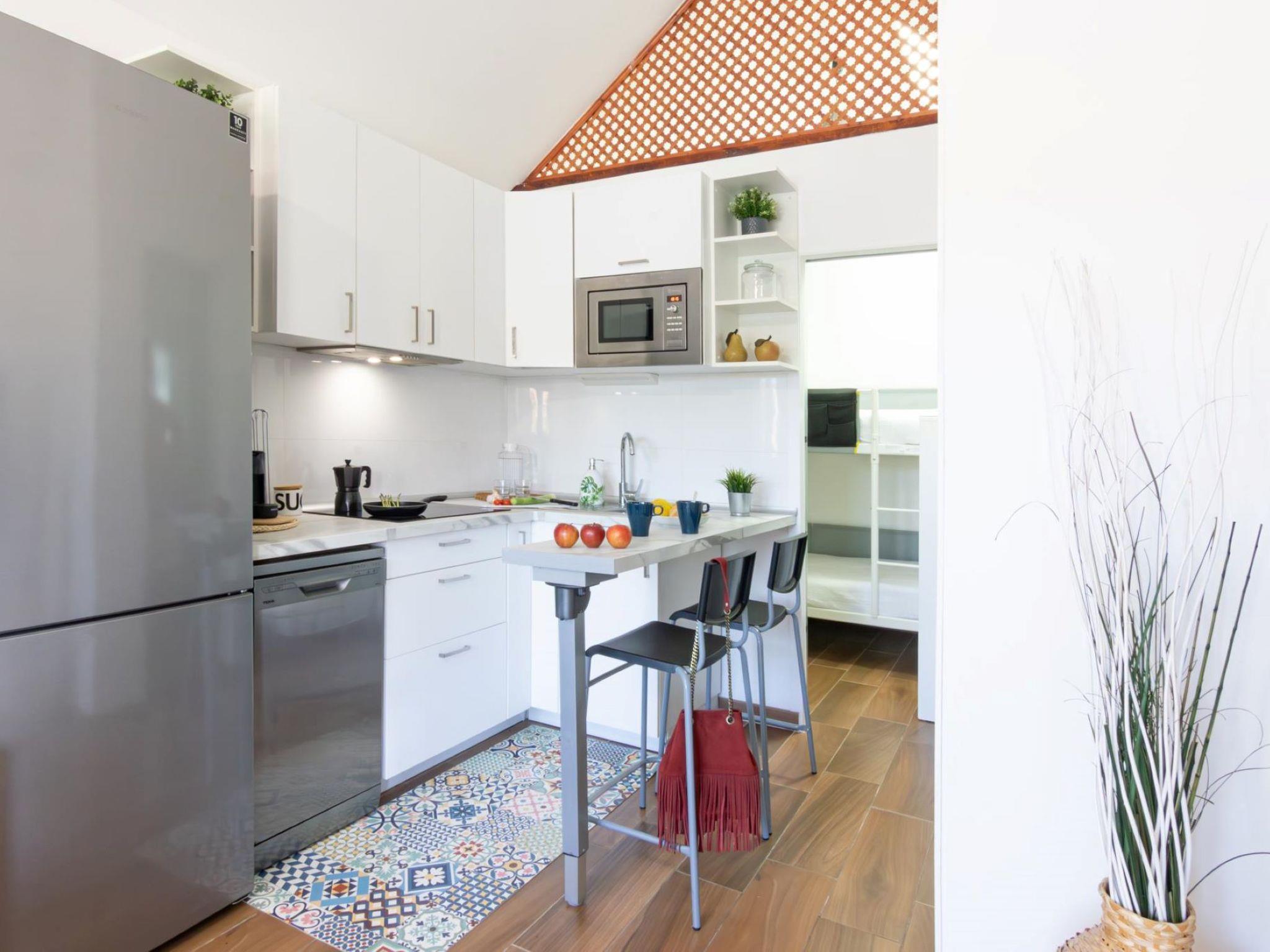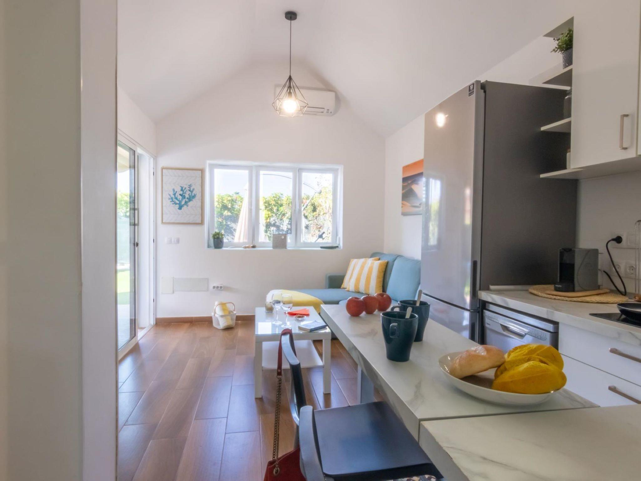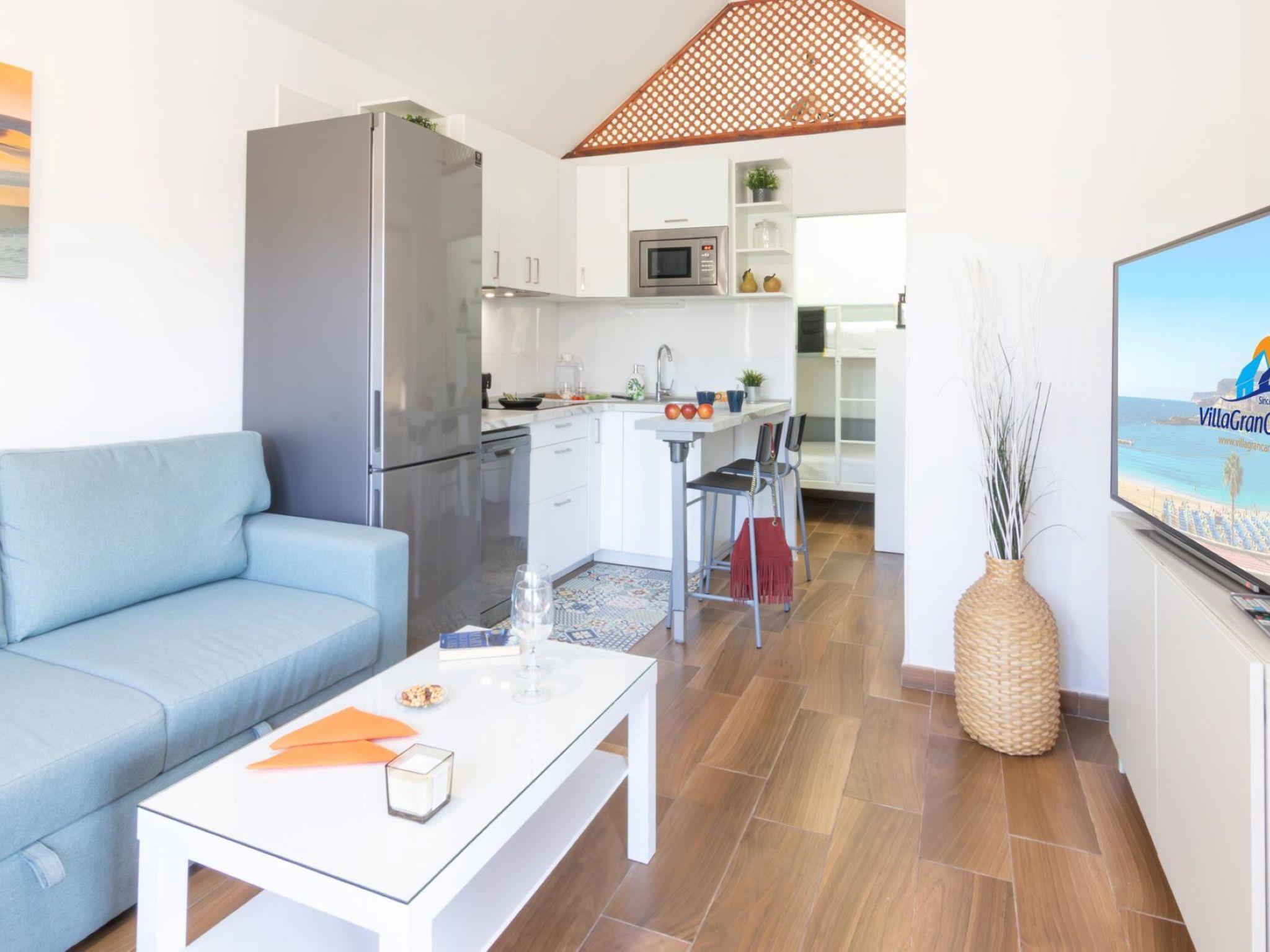 "Playa Flor 82", 3-room bungalow 45 m2. Object suitable for 2 adults + 2 children. Bright, very simple and cosy furnishings: open living/dining room with TV, flat screen and air conditioning. Exit to the patio. 1 room with 1 double bed. 1 room with 1 x 2 bunk beds. Open kitchen (oven, dishwasher, 4 ceramic glass hob hotplates, toaster, microwave, freezer, electric coffee machine) with dining table. Shower/WC. Natural stone floors. Patio, porch. Terrace furniture, barbecue, deck chairs. Facilities: washing machine, dryer, children's high chair, baby cot for up to 2 year olds, hair dryer. Internet (WiFi, free). Please note: suitable for families. Non-smokers only. Late arrivals will have an extra cost to be paid in cash: 20:30-22:00: 30€, 22:00-00:00: 50€, 00:00-01:30: 80€. RGE/176361/2024 // Reg. Nr.: ESFCTU0000350130000748780000000000000VV-35-1-00223791