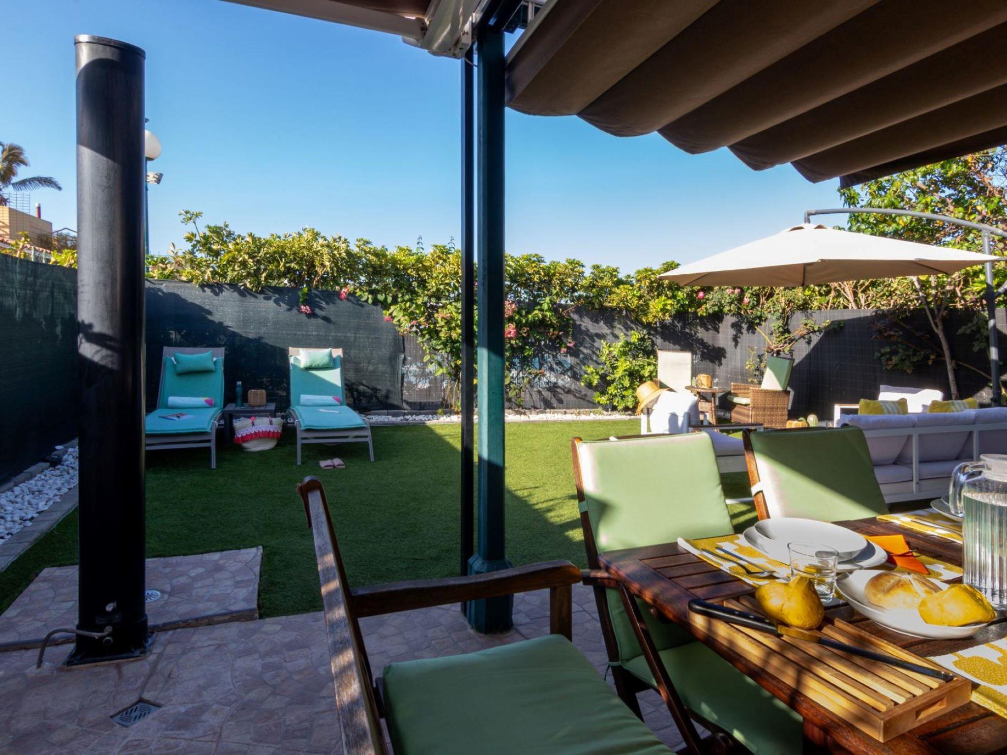 Late check-in carries the following charges, to be paid in cash upon arrival: -Between 20:30 and 22:00 - EUR 30 -Between 22:00 and 00:00 - EUR 50 -Between 00:00 and 01:30 - EUR 80 modern, very comfortable bungalow "Playa Flor Maspalomas". In the centre of Maspalomas, excellent location: right in the centre but still quiet, 3 km from the sea, 3 km from the beach. For shared use: swimming pool kidney-shaped (seasonal availability: 01.Jan. - 31.Dec.). Children's pool. Supermarket 1 km, shopping centre 1 km, restaurant 850 m, bar 1 km, café 1 km, bus stop "TTOO TUI" 160 m. Golf course (18 hole) 2 km, surf school 4 km, tennis 1 km, riding stable 25 km. Please note: baby equipment on request. Object suitable for 2 adults + 2 children. The owner does not accept any youth groups. Airfield 32 km from the property. Neighbourhood highly sensitive to noise. Quietness and good behaviour expected.
