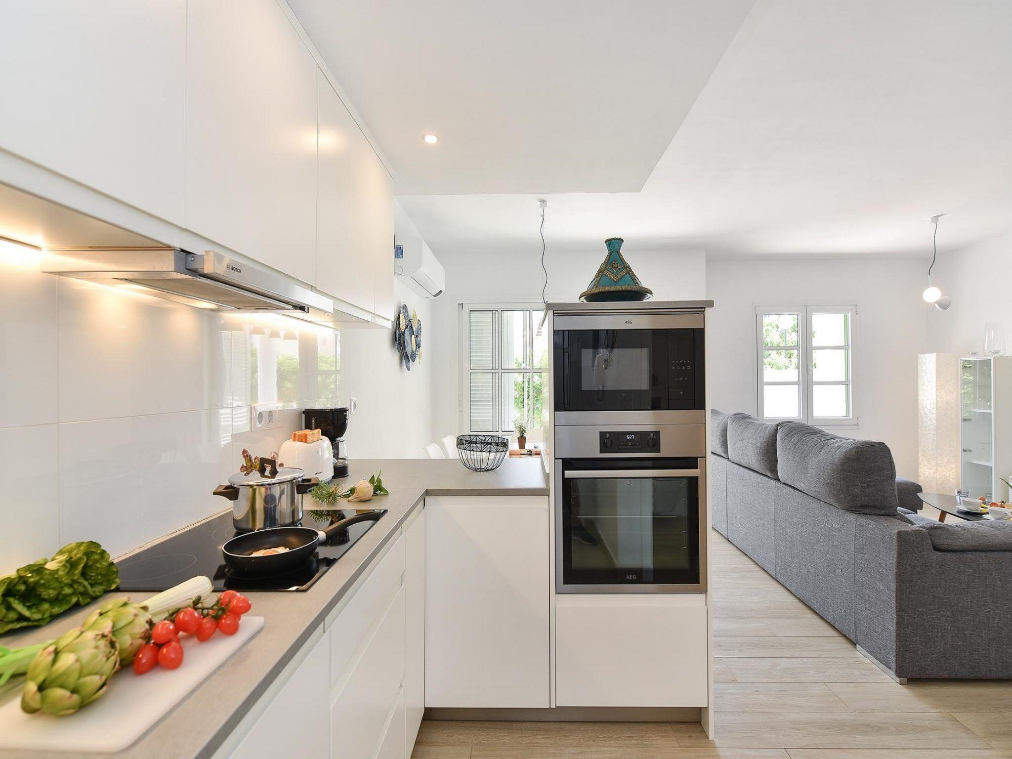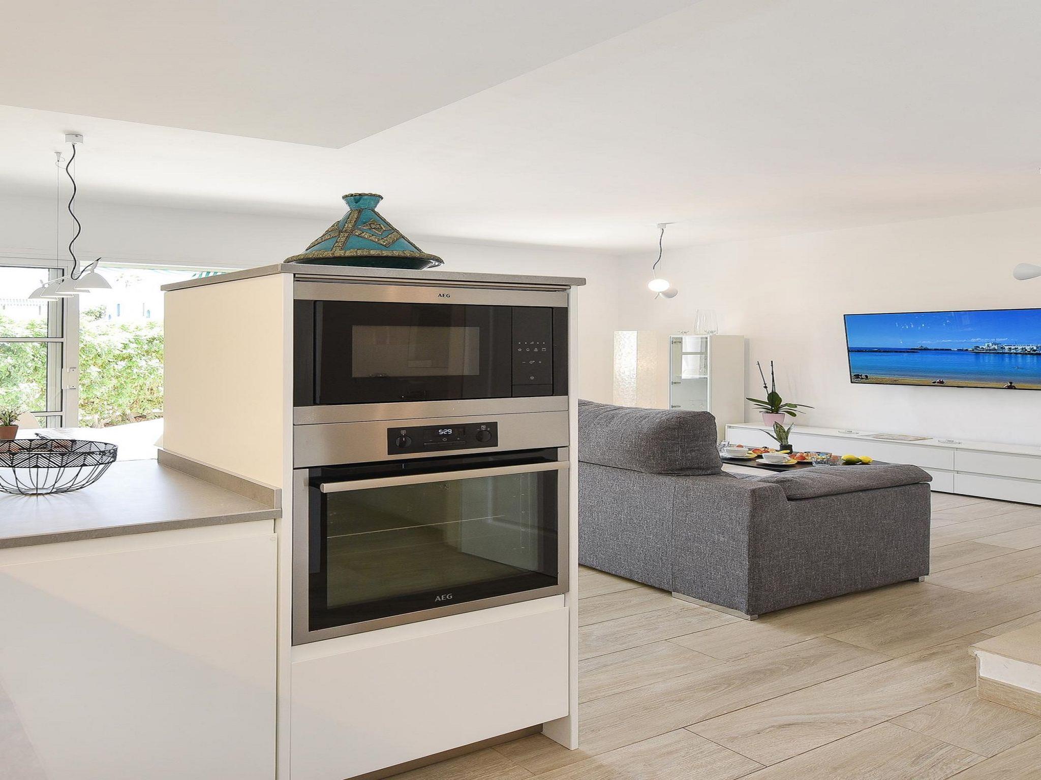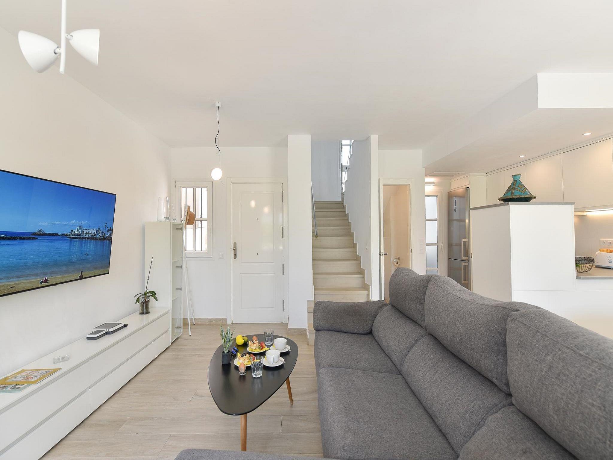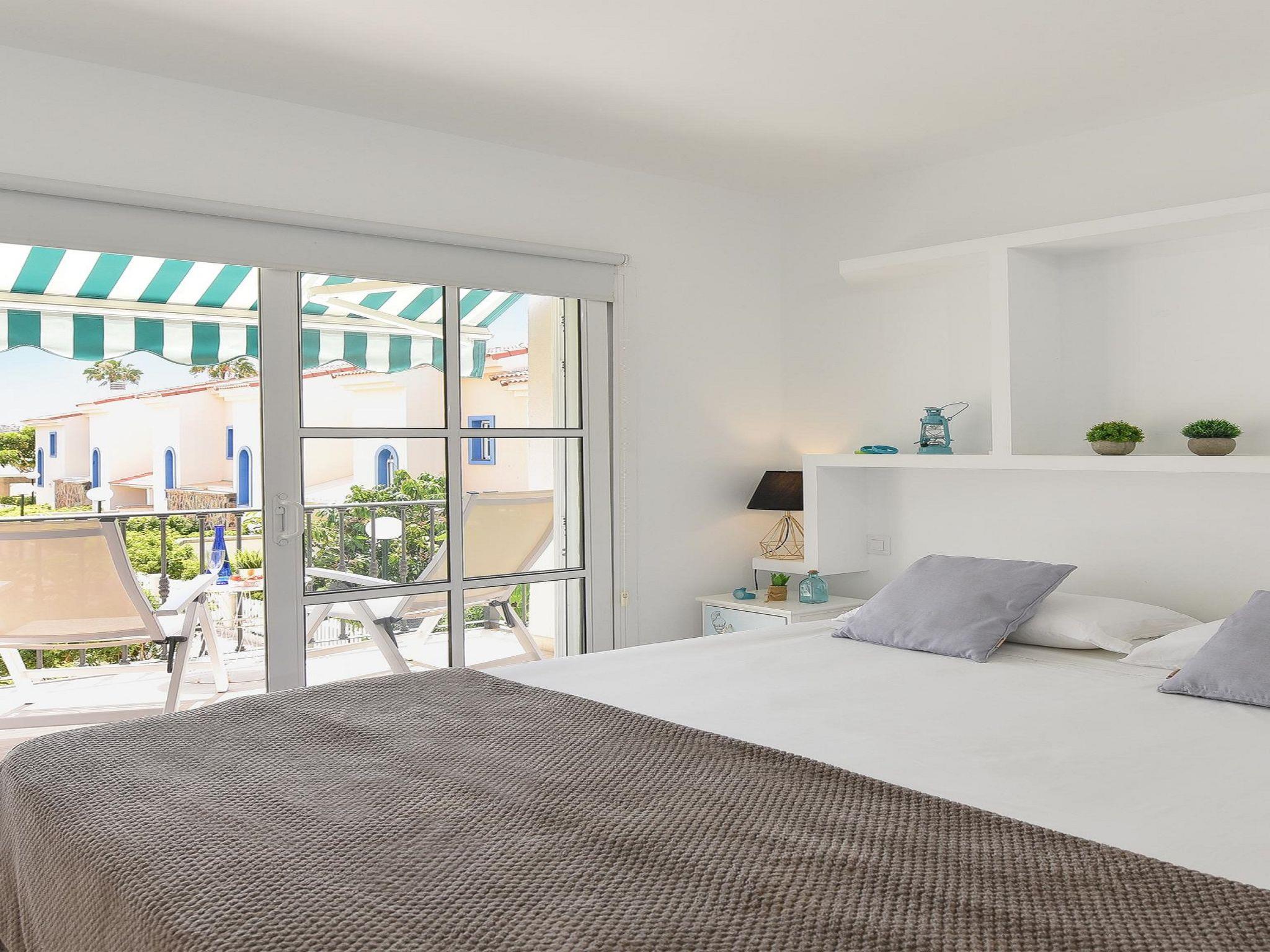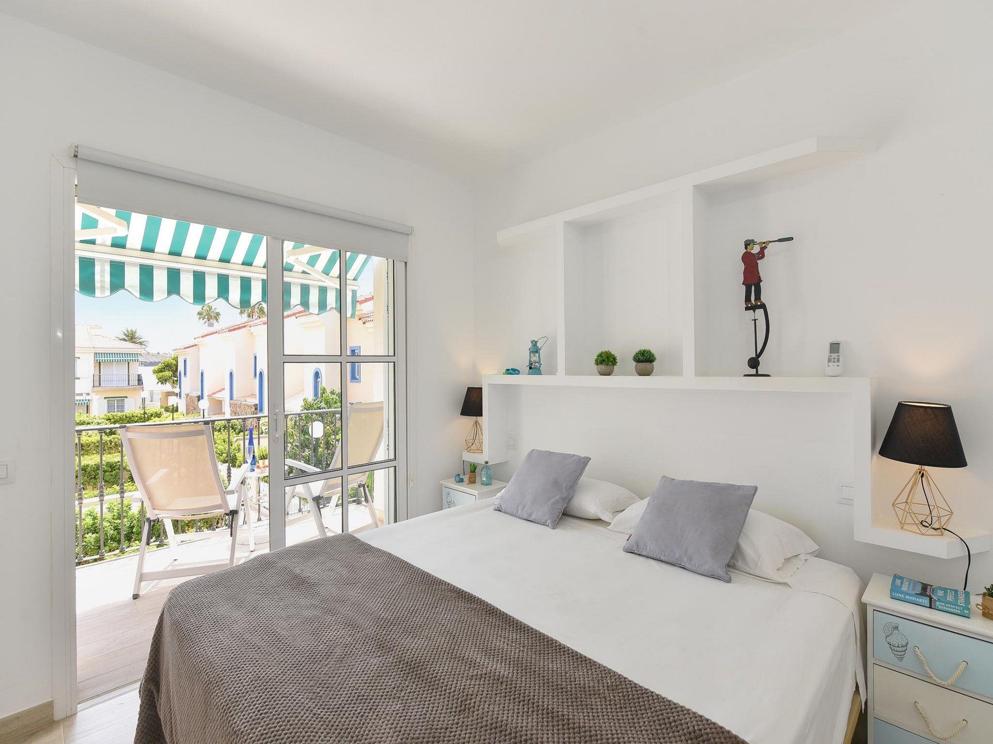 Modern, comfortable holiday development "Marina Port 15". In the centre of Pasito Blanco, excellent location: right in the centre but still quiet. For shared use: swimming pool kidney-shaped (seasonal availability: 01.Jan. - 31.Dec.). Patio, arbour, garden furniture, barbecue. In the house: internet access, WiFi, air conditioning, washing machine, tumble dryer. Public parking on the road. Bus stop "Cruce Pasito Blanco" 5 km. Please note: suitable for families. Object suitable for 4 adults. The owner does not accept any youth groups. Neighbourhood highly sensitive to noise. Quietness and good behaviour expected. Late arrivals will have an extra cost to be paid in cash: 20:30-22:00: 30€, 22:00-00:00: 50€, 00:00-01:30: 80€.