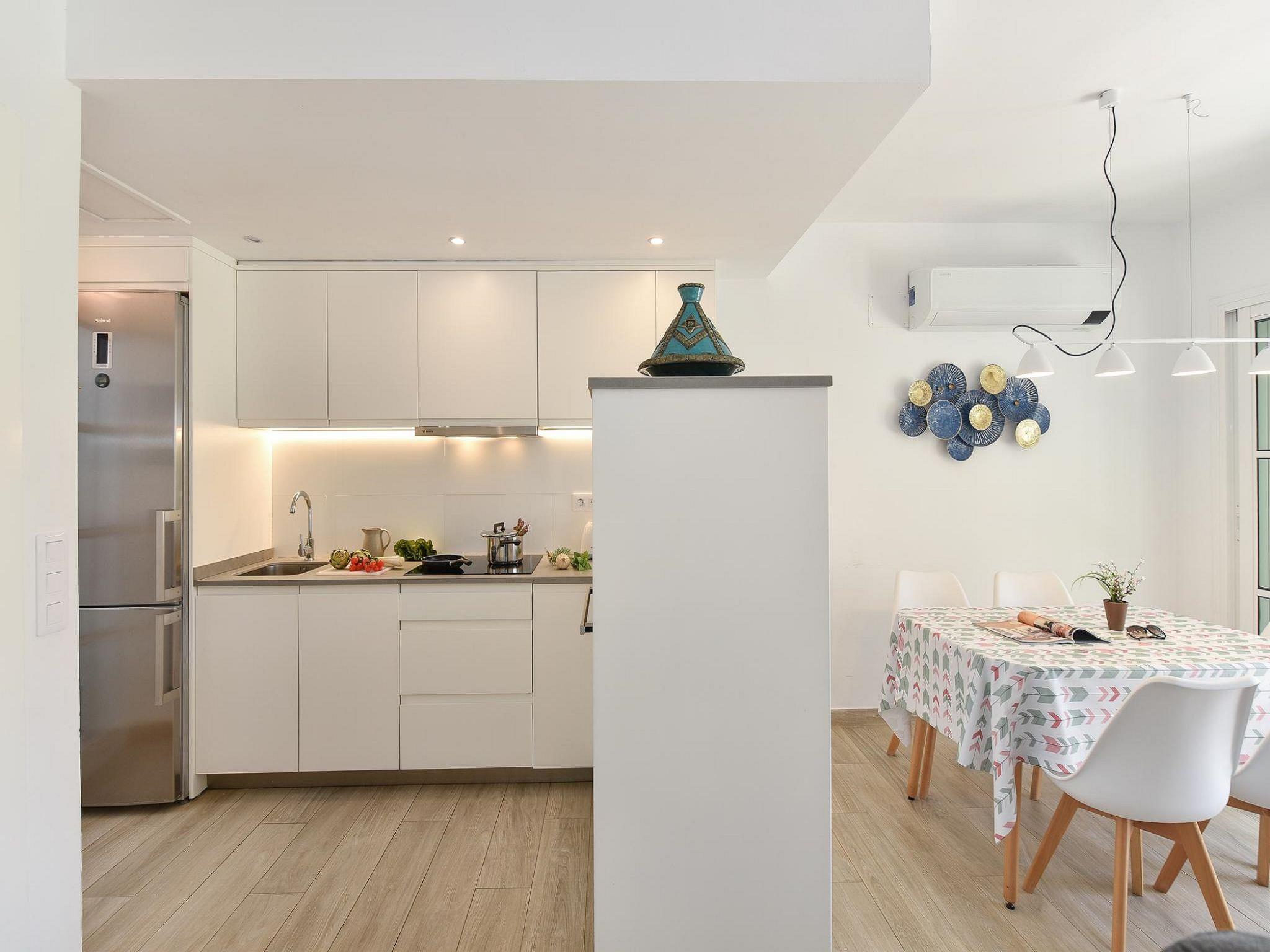 "Marina port 15", 3-room apartment 81 m2. Object suitable for 4 adults. Bright, very simple and cosy furnishings: living/dining room with TV, flat screen and air conditioning. Exit to the patio. Open kitchen (oven, dishwasher, 4 ceramic glass hob hotplates, toaster, kettle, microwave, electric coffee machine) with dining table. Bathroom. Upper floor: 1 room with 1 double bed. Exit to the loggia. 1 room with 1 double bed. Bath/shower. Patio, porch. Terrace furniture, barbecue, deck chairs (6). Facilities: washing machine, dryer, iron, children's high chair, baby cot for up to 2 year olds, hair dryer. Internet (WiFi). Please note: suitable for families. Non-smokers only. 2021-T5860 // Reg. Nr.: ESFCTU0000350120001817460000000000000000VV35100160255