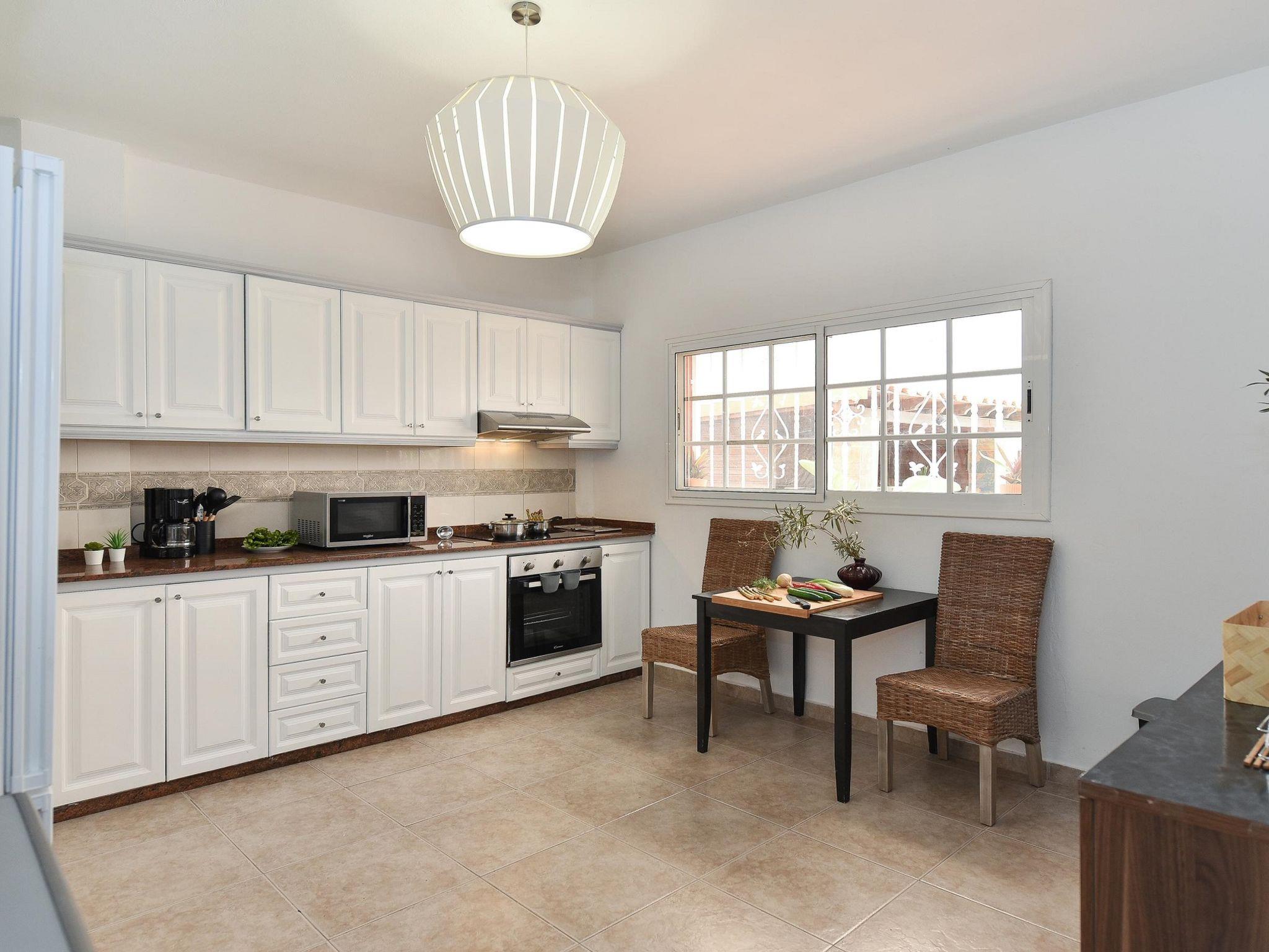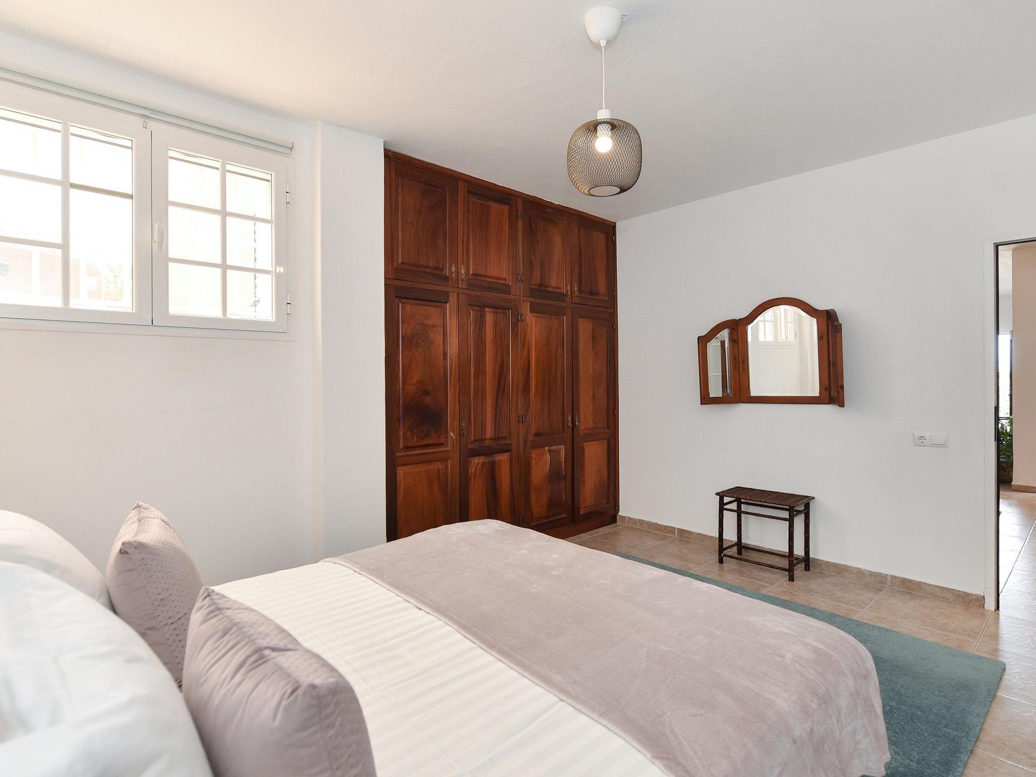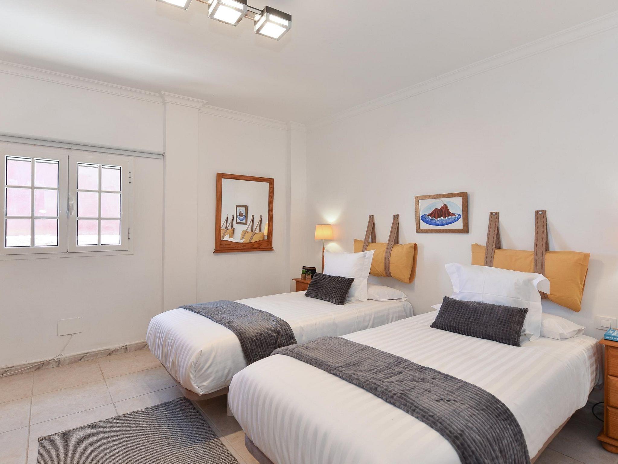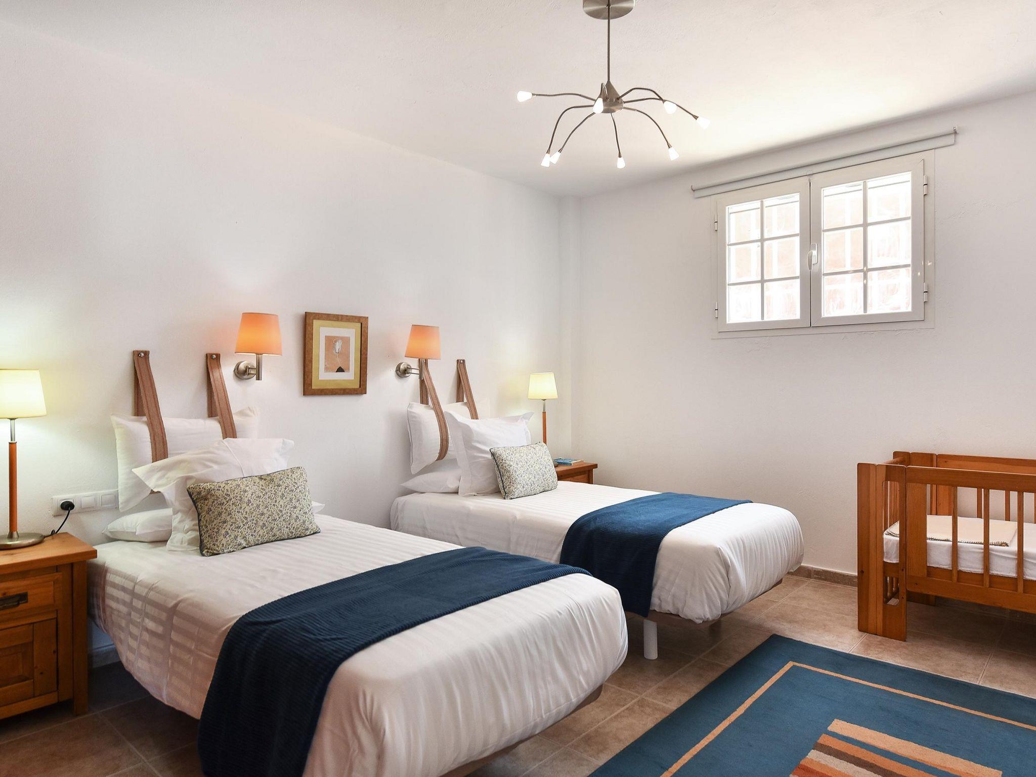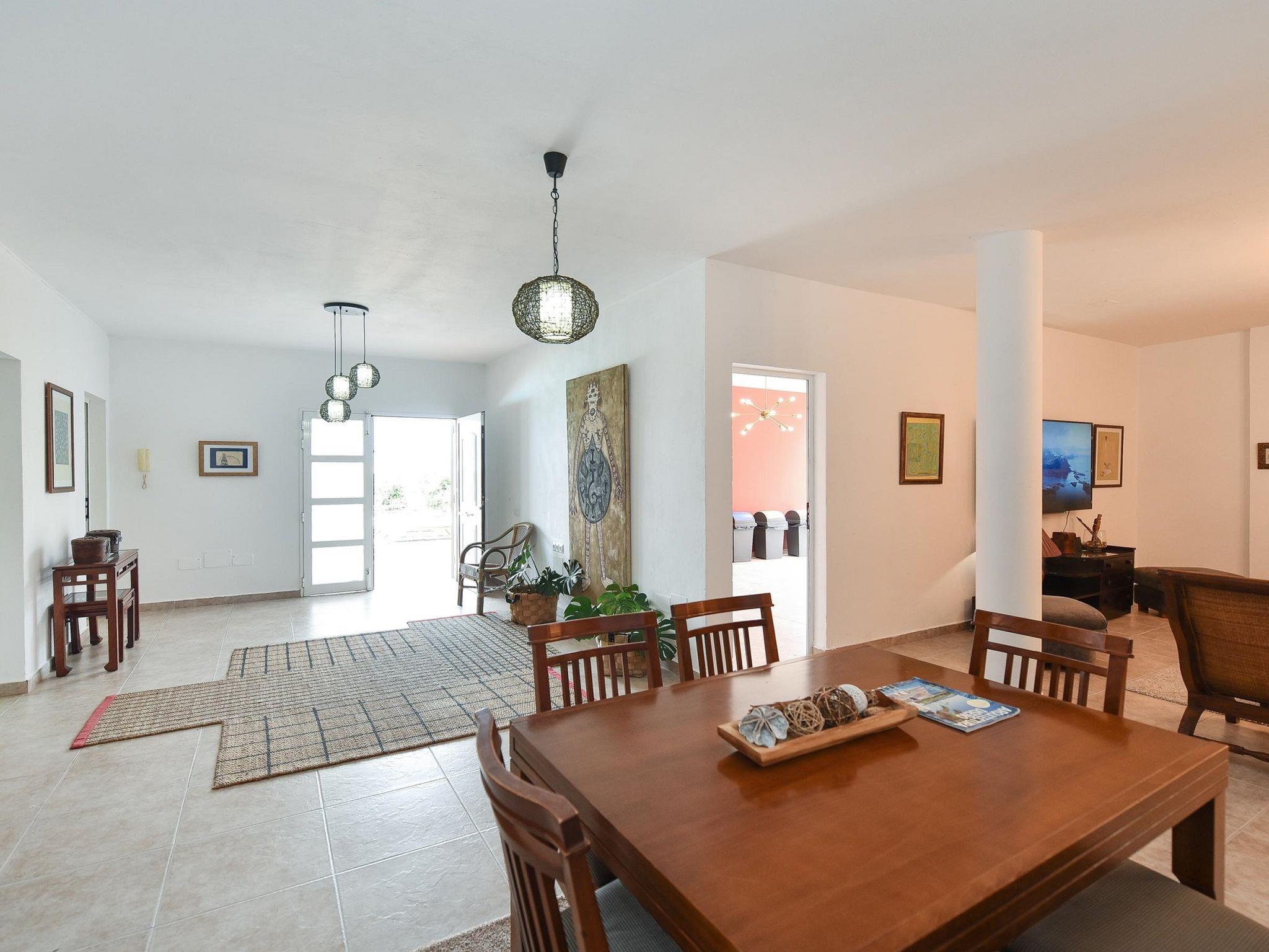 "Salobre Pueblo", 9-room farmhouse 400 m2 on 2 levels. Object suitable for 14 adults. Very simple and cosy furnishings: open living room with digital TV, flat screen and air conditioning. Exit to the loggia. 2 rooms, each room with 1 french bed. 1 room with 2 beds. Kitchen (oven, dishwasher, 4 ceramic glass hob hotplates, toaster, kettle, microwave, freezer, electric coffee machine). Bathroom, bath/shower, hip bath. Upper floor: (spiral staircase) living room with digital TV and flat screen. Exit to the loggia. 2 rooms, each room with 1 french bed. 2 rooms, each room with 2 beds. Kitchen (oven, dishwasher). Bath/shower. Natural stone floors. Terrace furniture, barbecue, deck chairs (8), covered balcony, sitting area. Beautiful view of the swimming pool and the garden. Facilities: washing machine, iron, children's high chair, baby cot for up to 2 year olds, hair dryer. Internet (WiFi, free). Please note: suitable for families. Non-smoking house. Maximum 1 pet/ dog allowed. 2024-T10696 // Reg. Nr.: ESFCTU0000350120001644730000000000000VV-35-1-00229083