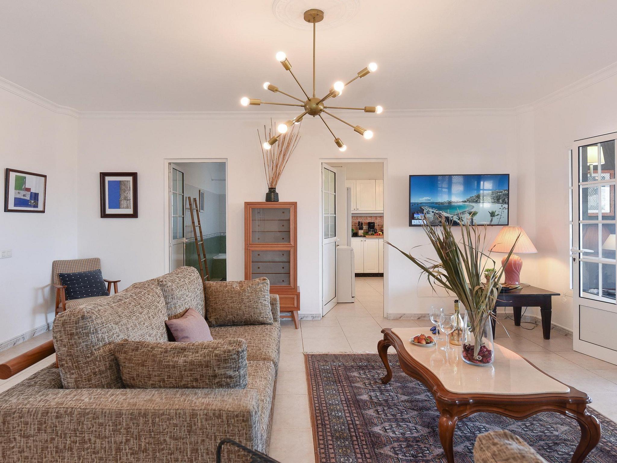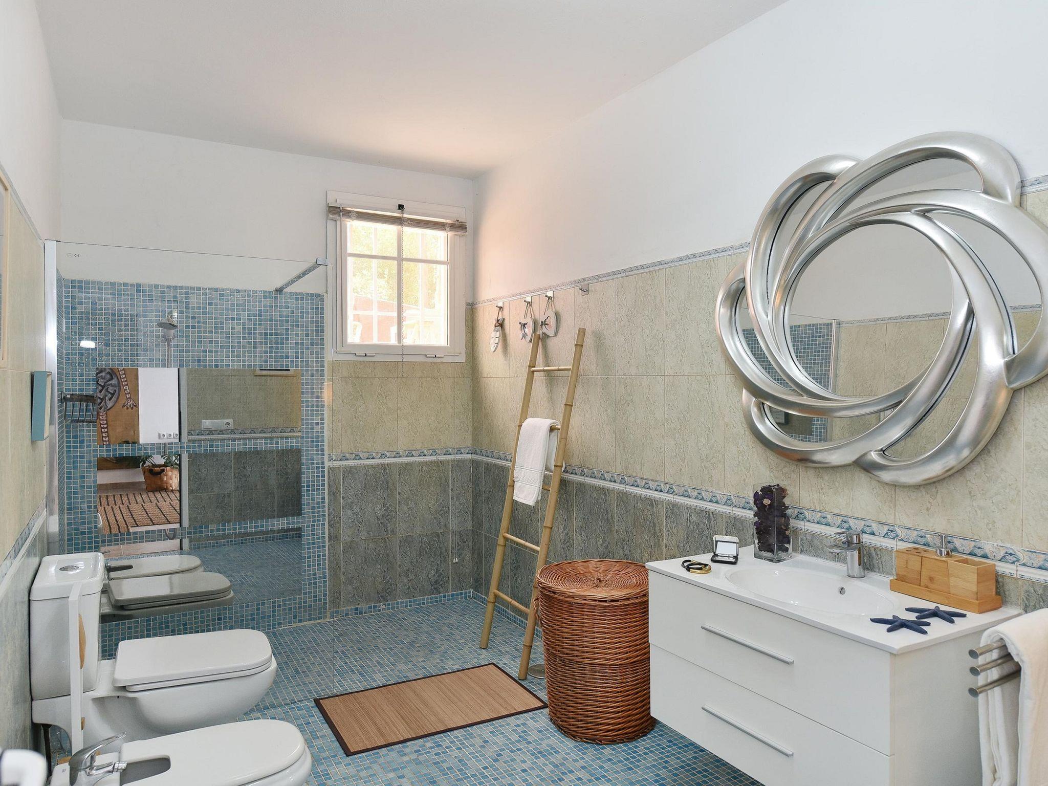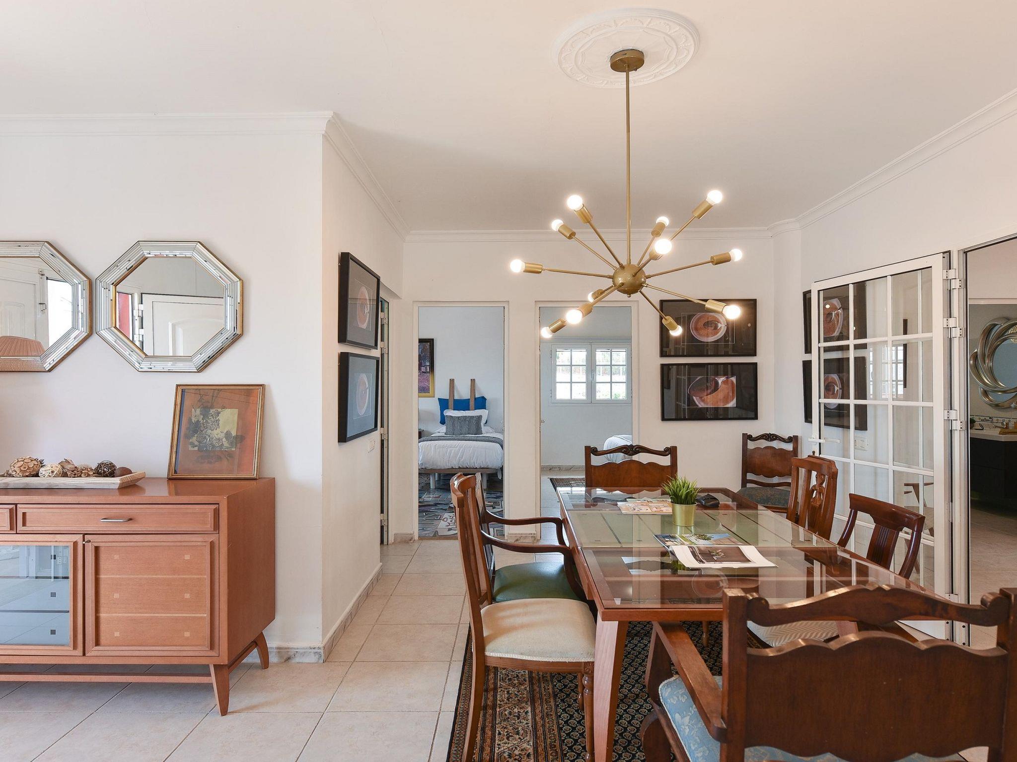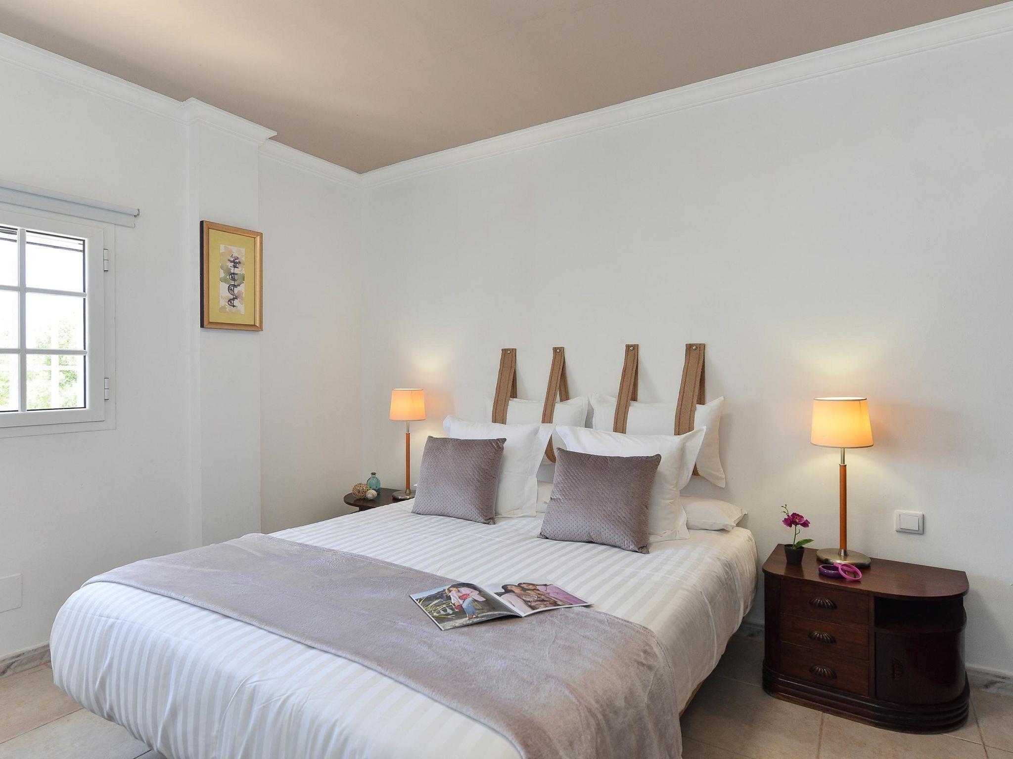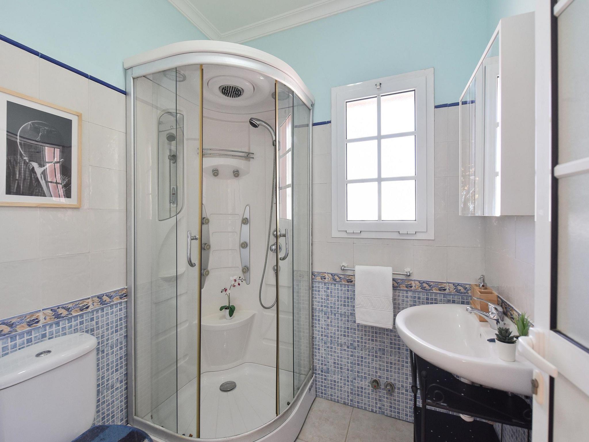 "Salobre Pueblo", 9-room farmhouse 400 m2 on 2 levels. Object suitable for 14 adults. Very simple and cosy furnishings: open living room with digital TV, flat screen and air conditioning. Exit to the loggia. 2 rooms, each room with 1 french bed. 1 room with 2 beds. Kitchen (oven, dishwasher, 4 ceramic glass hob hotplates, toaster, kettle, microwave, freezer, electric coffee machine). Bathroom, bath/shower, hip bath. Upper floor: (spiral staircase) living room with digital TV and flat screen. Exit to the loggia. 2 rooms, each room with 1 french bed. 2 rooms, each room with 2 beds. Kitchen (oven, dishwasher). Bath/shower. Natural stone floors. Terrace furniture, barbecue, deck chairs (8), covered balcony, sitting area. Beautiful view of the swimming pool and the garden. Facilities: washing machine, iron, children's high chair, baby cot for up to 2 year olds, hair dryer. Internet (WiFi, free). Please note: suitable for families. Non-smoking house. Maximum 1 pet/ dog allowed. 2024-T10696 // Reg. Nr.: ESFCTU0000350120001644730000000000000VV-35-1-00229083
