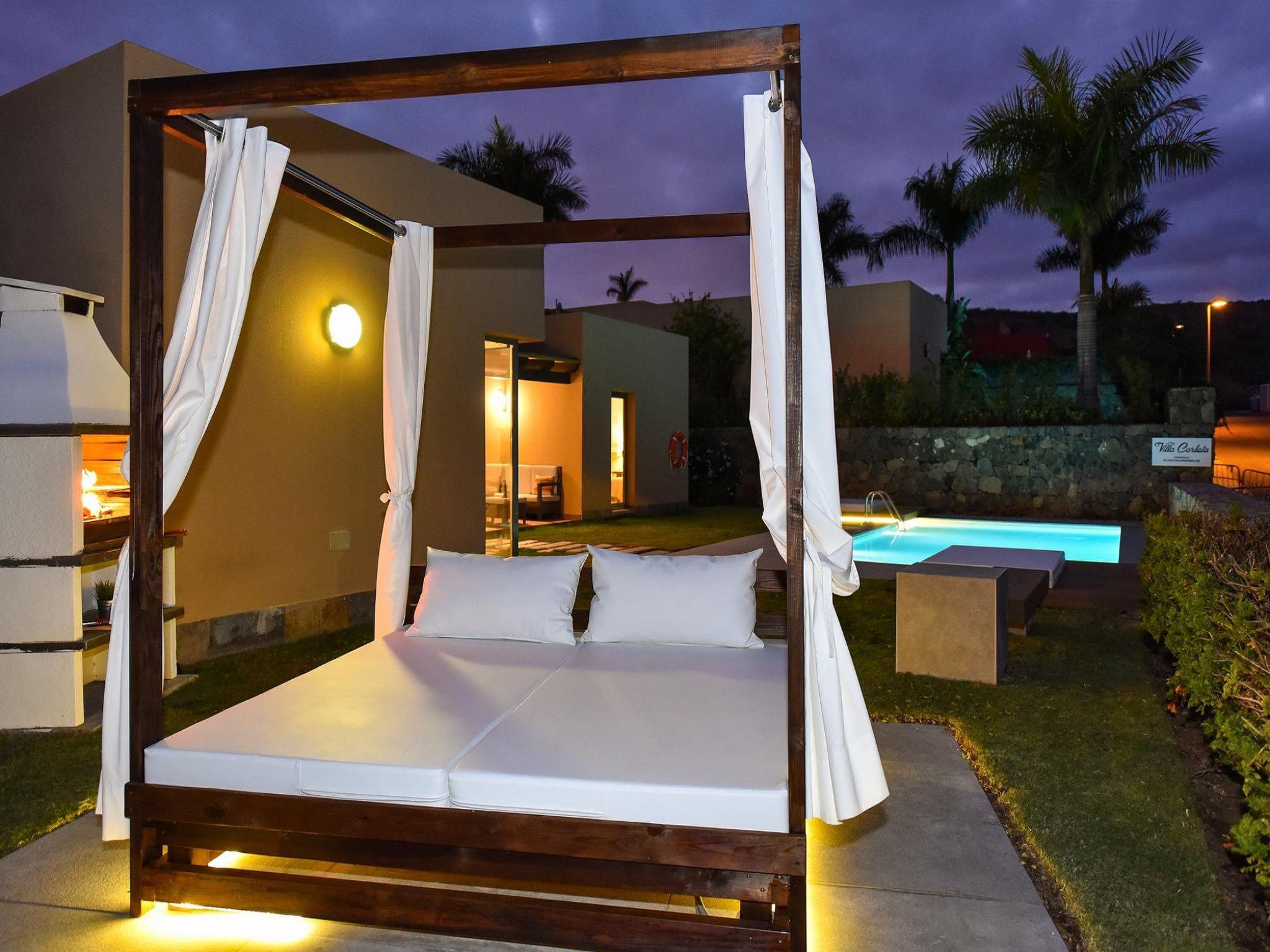 Very beautiful, comfortable villa "Par4 Villa 24". Excellent location: right in the centre but still quiet. Private: swimming pool angular (8 x 4 m, depth 160 cm, seasonal availability: 01.Jan. - 31.Dec.). In the house: internet access, WiFi, air conditioning, washing machine, tumble dryer. Public parking on the road. Bus stop "Las Crucitas" 19 km. Please note: baby equipment on request. Object suitable for 6 adults. The owner does not accept any youth groups. Neighbourhood highly sensitive to noise. Quietness and good behaviour expected. Late arrivals will have an extra cost to be paid in cash: 20:30-22:00: 30€, 22:00-00:00: 50€, 00:00-01:30: 80€.