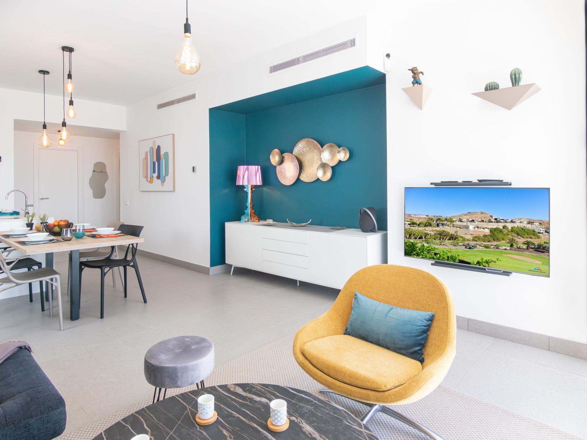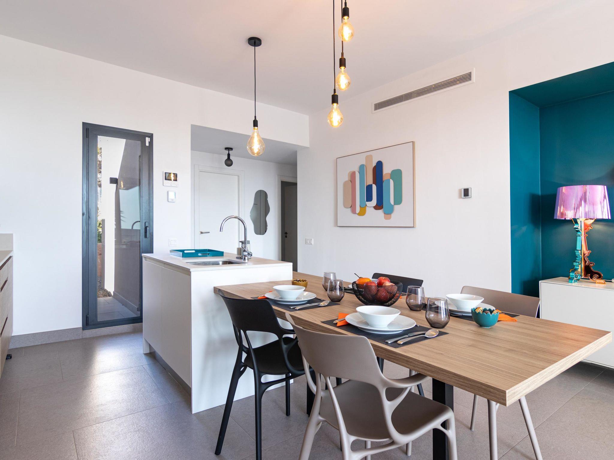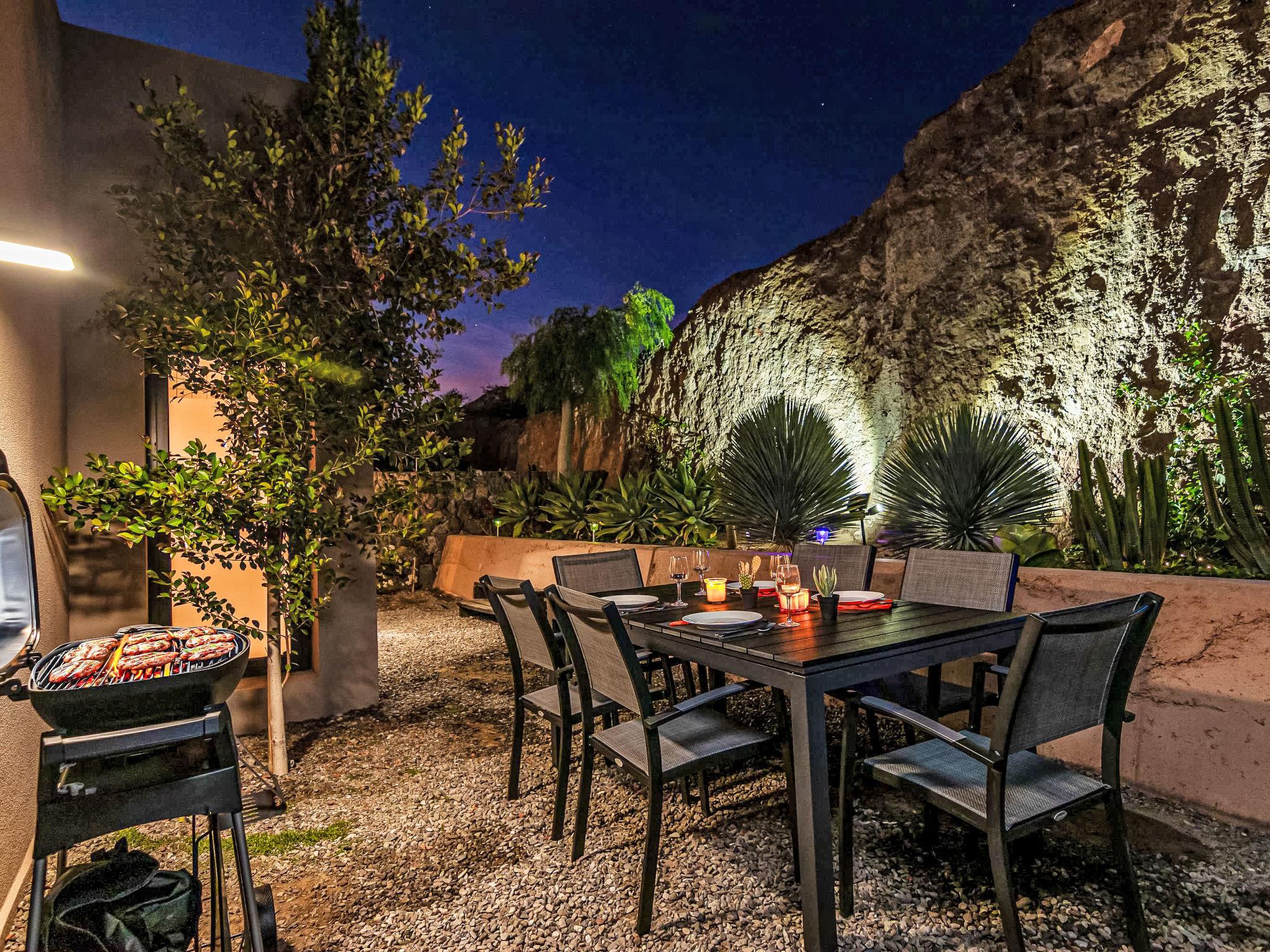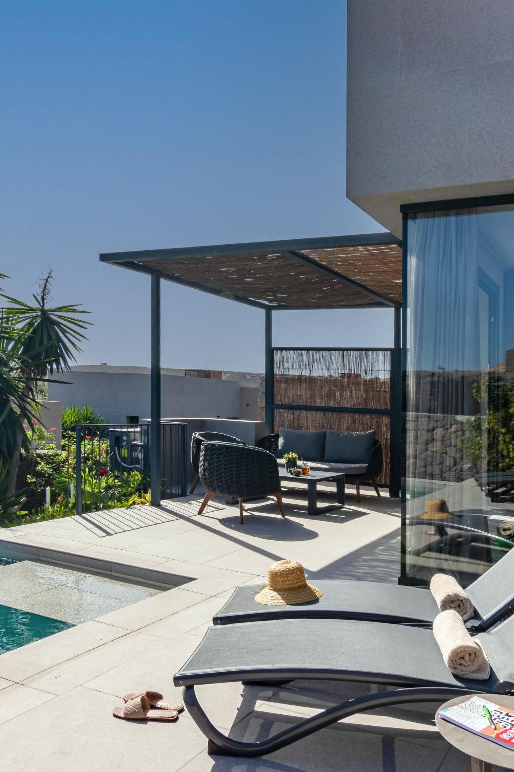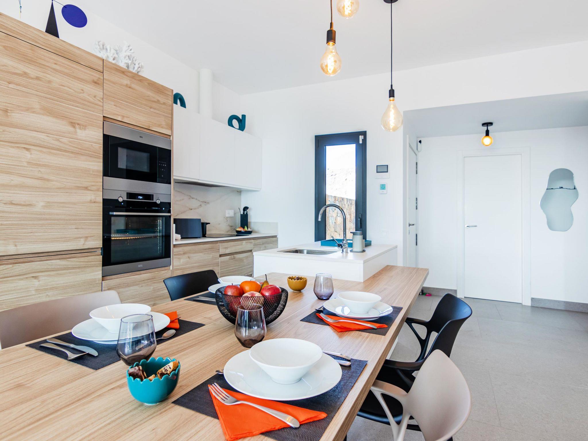 "Yucas 16", 3-room villa 90 m2. Spacious and bright, comfortable and modern furnishings: living/dining room with digital TV and flat screen. Exit to the terrace. 1 room with 1 french bed. 1 room with 1 french bed. Exit to the terrace. Open kitchen (oven, dishwasher, 4 ceramic glass hob hotplates, toaster, kettle, microwave, freezer, electric coffee machine). 2 showers/WC. Air-conditioning. Large terrace. Terrace furniture, barbecue, deck chairs (4), sitting area. View of the sea, the countryside and the resort. Facilities: washing machine, iron, children's high chair, baby cot for up to 2 year olds. Internet (WiFi). Suitable for families. Maximum 1 pet/ dog allowed. 2024-T28971 // Reg. Nr.: ESFCTU0000350120005286880000000000000VV-35-1-00251055
