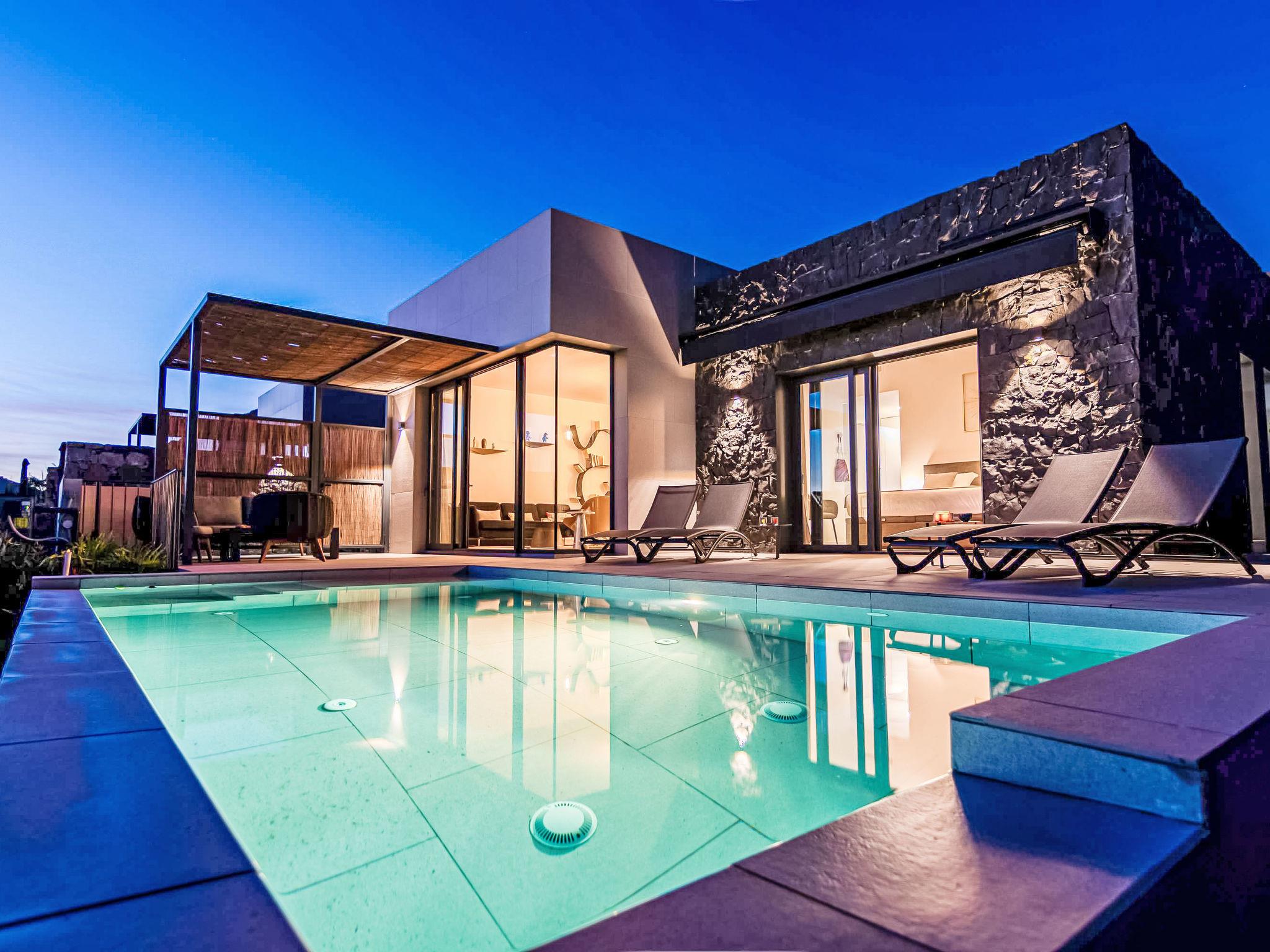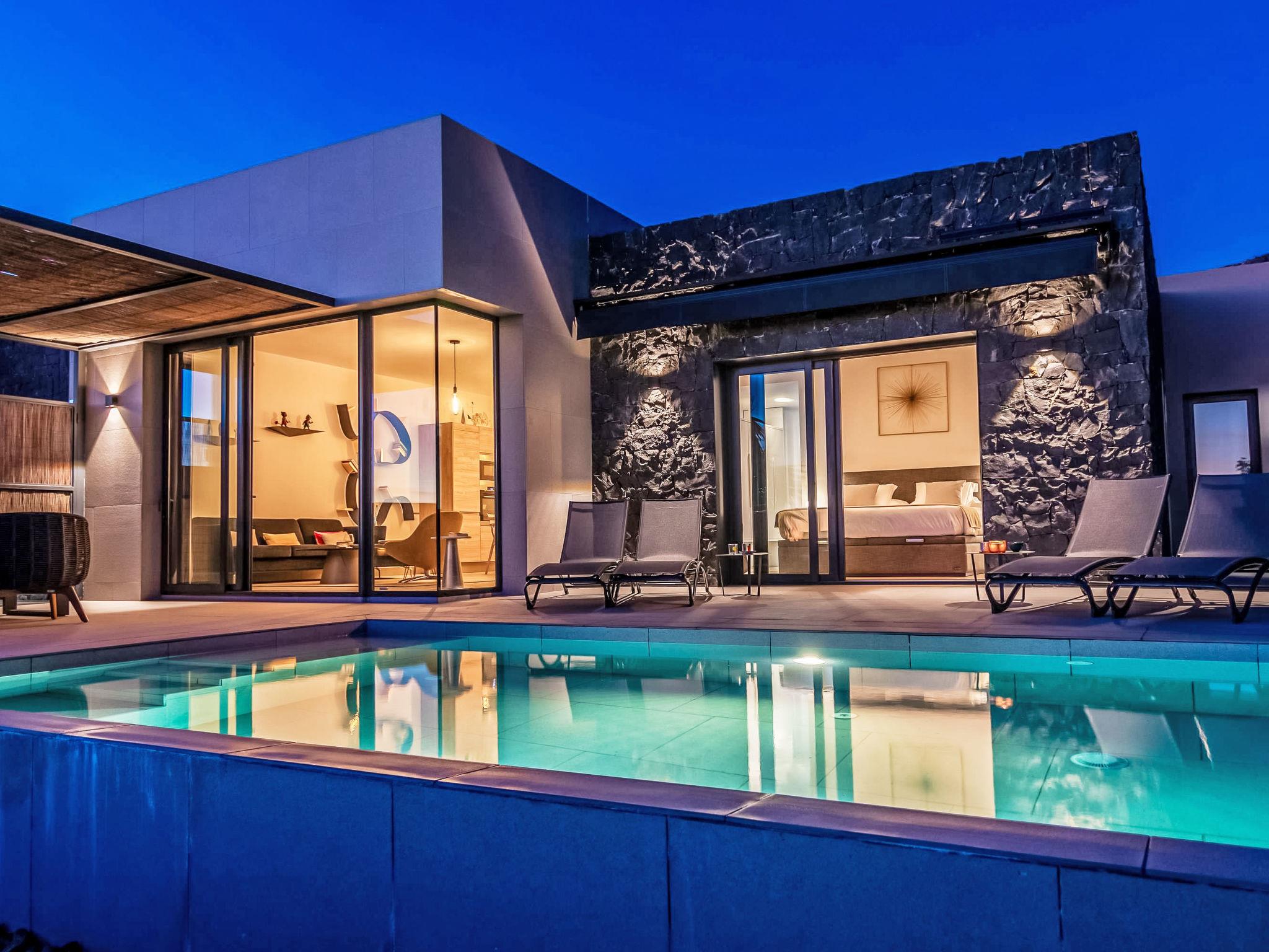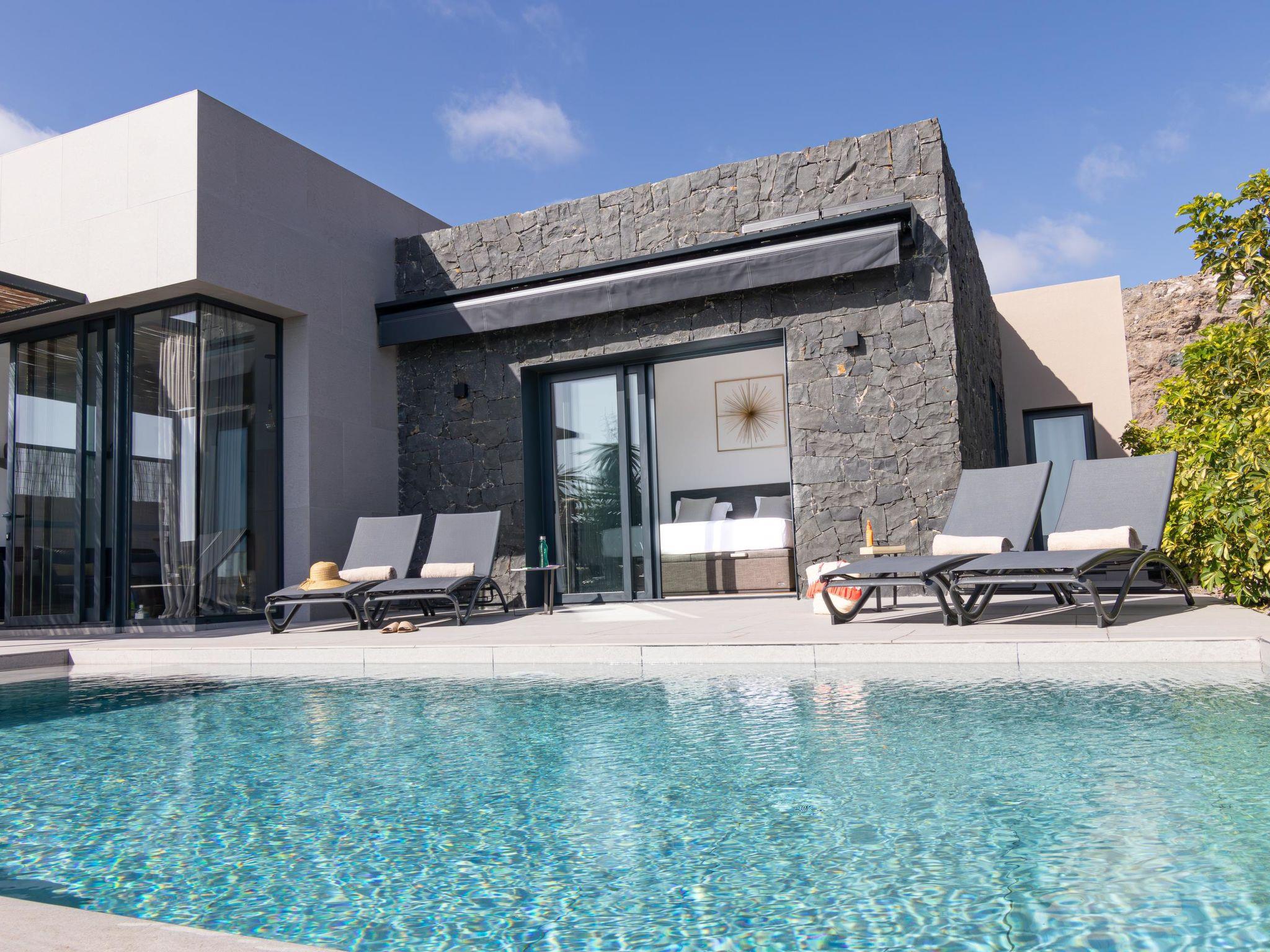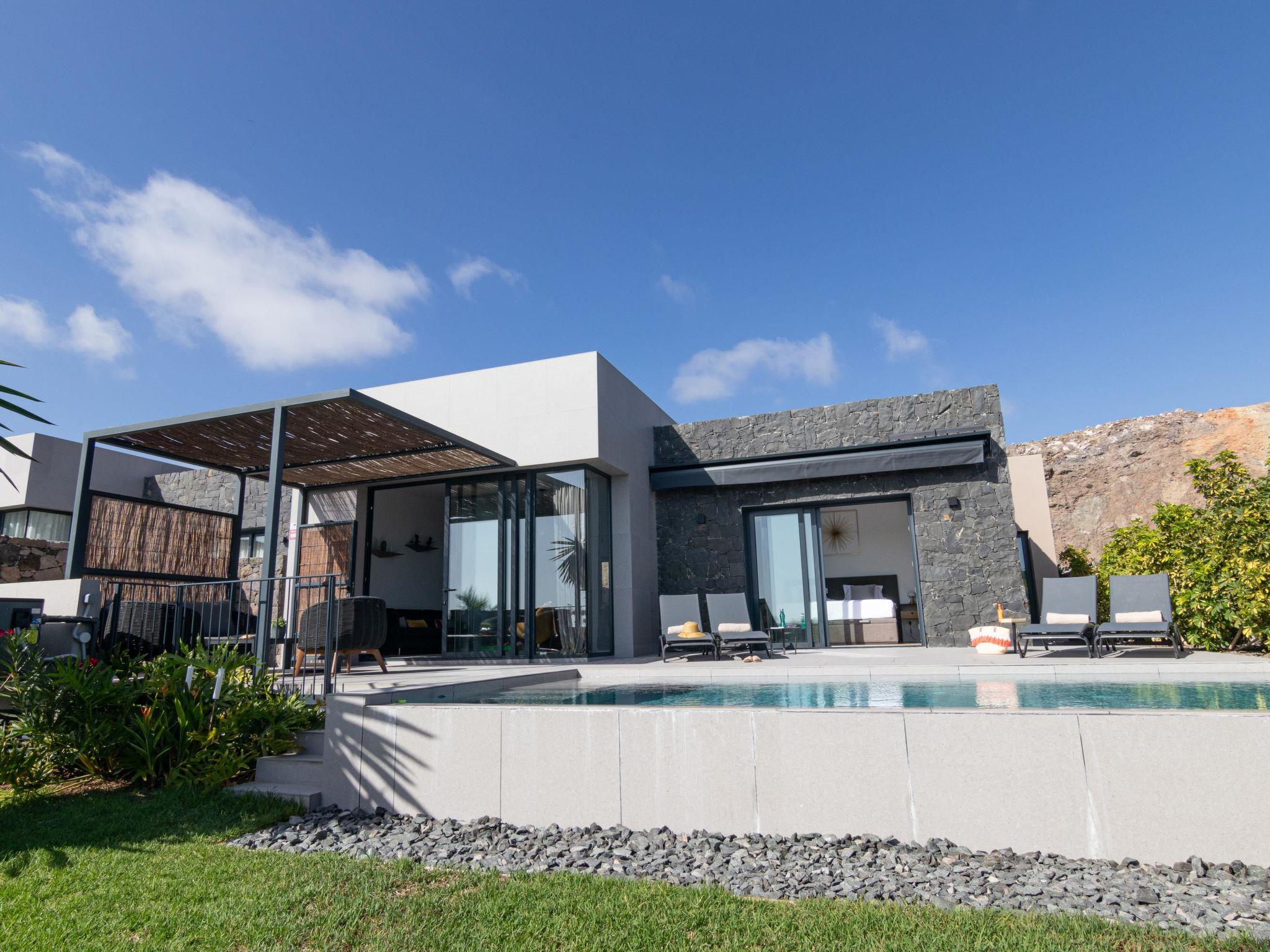 Villa "Salobre Golf Resort". In the resort San Bartolomé De Tirajana, in a secluded, quiet, sunny position, 10 km from the sea, 10 km from the beach, on the golf course. Private: beautiful garden to relax, swimming pool angular (6 x 3 m, depth 140 cm, seasonal availability: 01.Jan. - 31.Dec.). Supermarket 2 km, restaurant 5 km, bus stop "Las Crucitas" 19 km. Golf course (18 hole) 300 m. Nearby attractions: El Parque Botánico de Maspalomas 11 km, Faro de Maspalomas 12 km, Aqualand Maspalomas 7 km. Please note: baby equipment on request. The owner does not accept any youth groups. Neighbourhood highly sensitive to noise. Quietness and good behaviour expected.