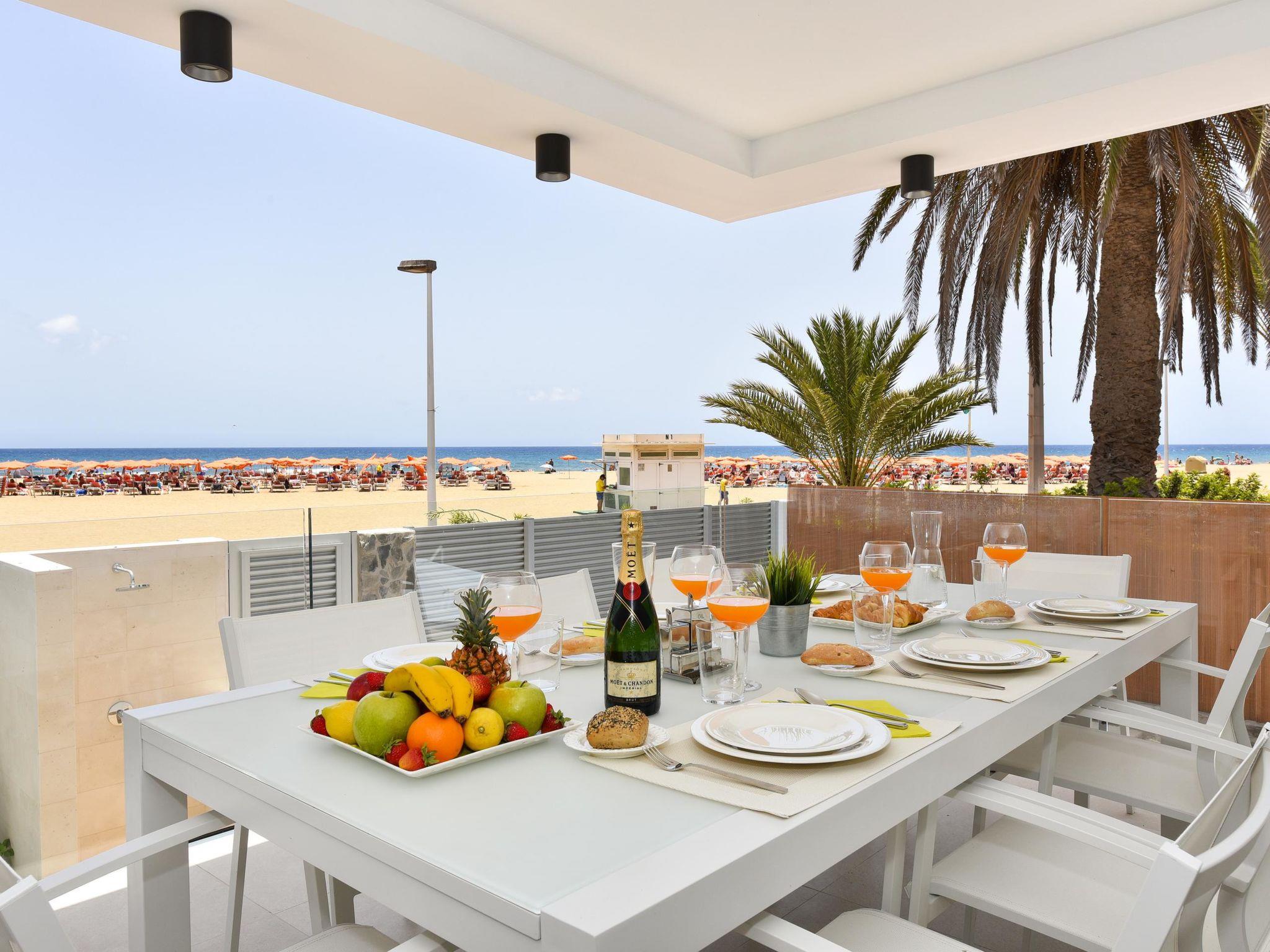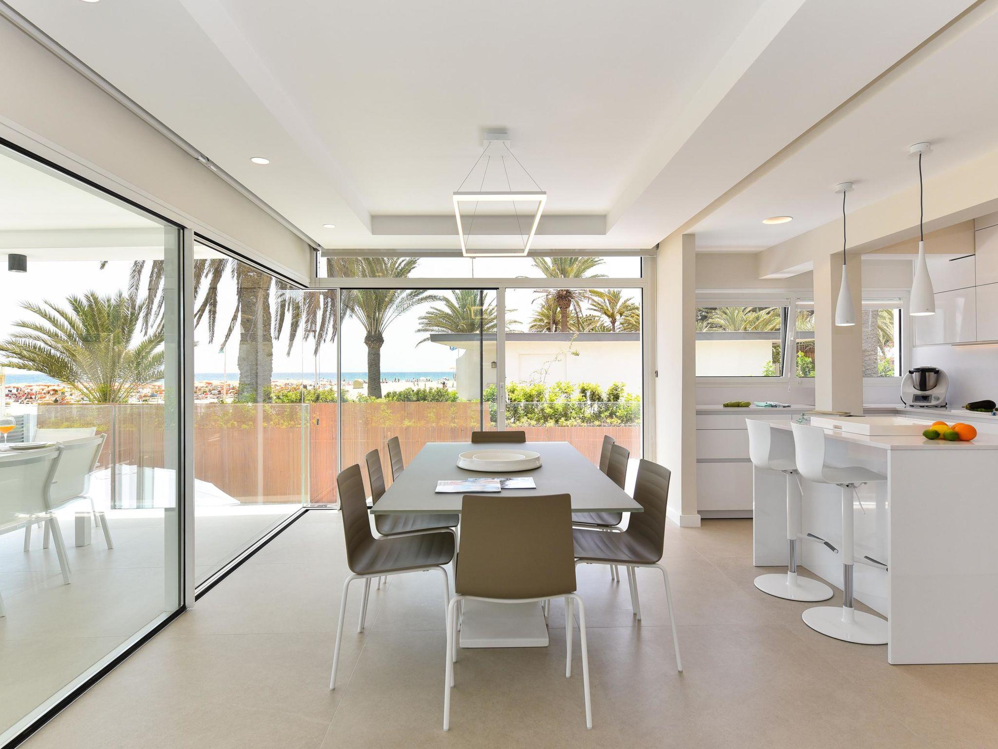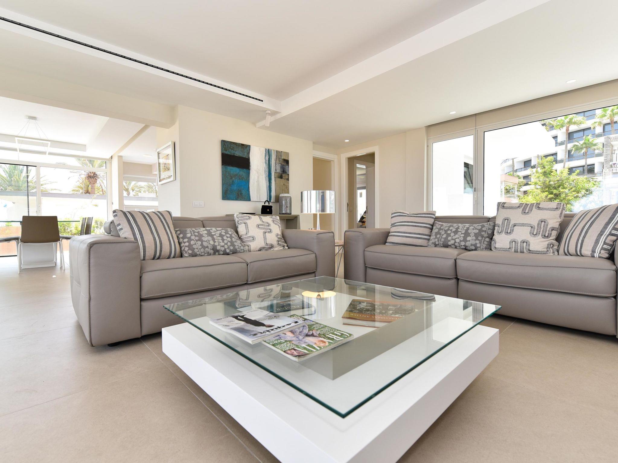 "Blue Ocean", 6-room house 560 m2 on 2 levels. Modern furnishings: living room with digital TV, flat screen and air conditioning. 2 double bedrooms, each room with 1 french bed and air conditioning with shower/WC. Kitchen-/living room (dishwasher, toaster, kettle, microwave, electric coffee machine) with dining table. Upper floor: living room with digital TV, flat screen and air conditioning. Exit to the terrace. 2 double bedrooms, each room with 1 french bed and air conditioning with shower/WC. Kitchen-/living room (oven, dishwasher, toaster, kettle, microwave, electric coffee machine) with dining table. Porch. Terrace furniture, barbecue. View of the sea. Facilities: washing machine, dryer. Internet (WiFi, free). 2021-T1570 // Reg. Nr.: ESFCTU00003501300032414000000000000000E-35-1-00072248