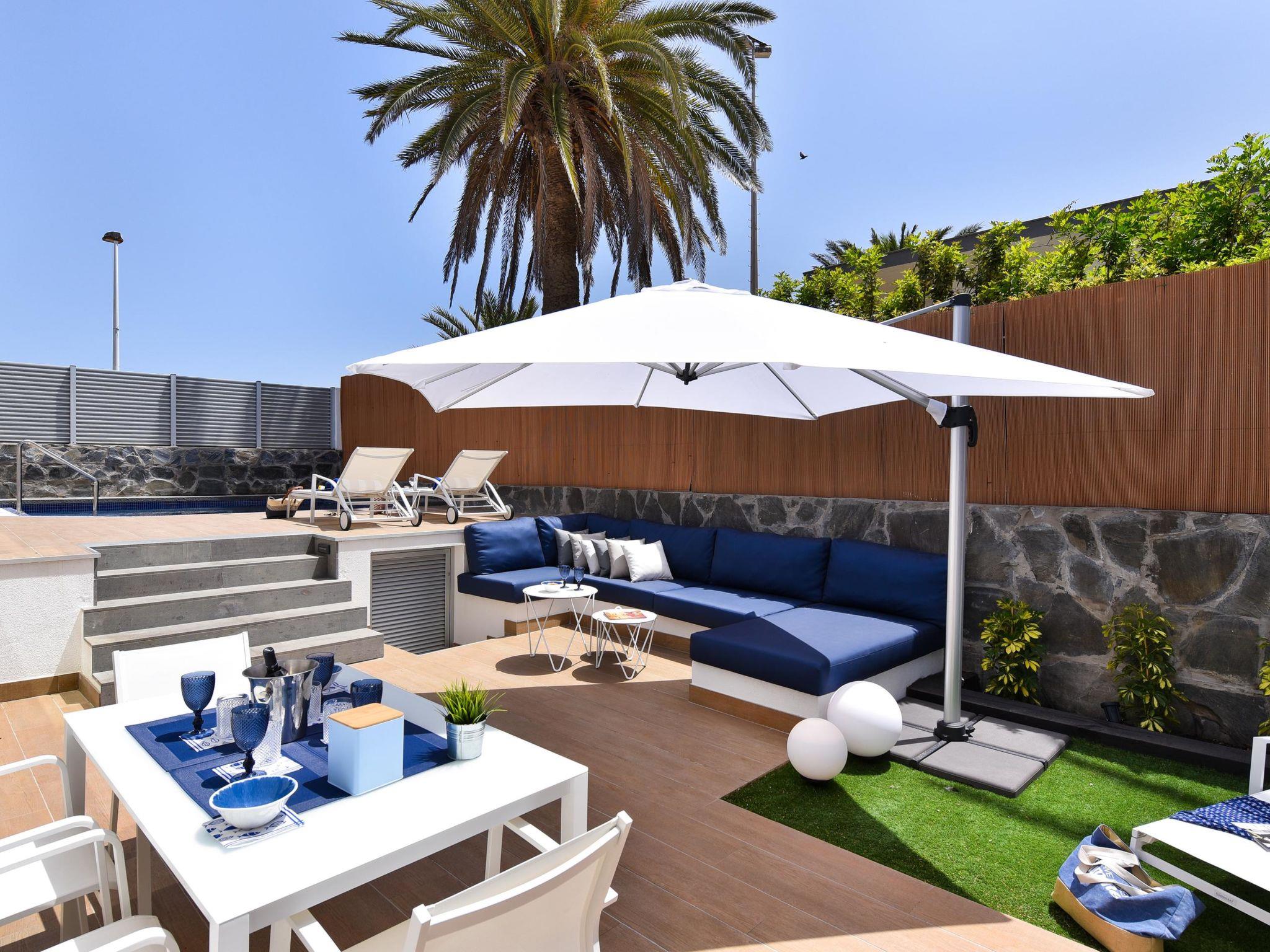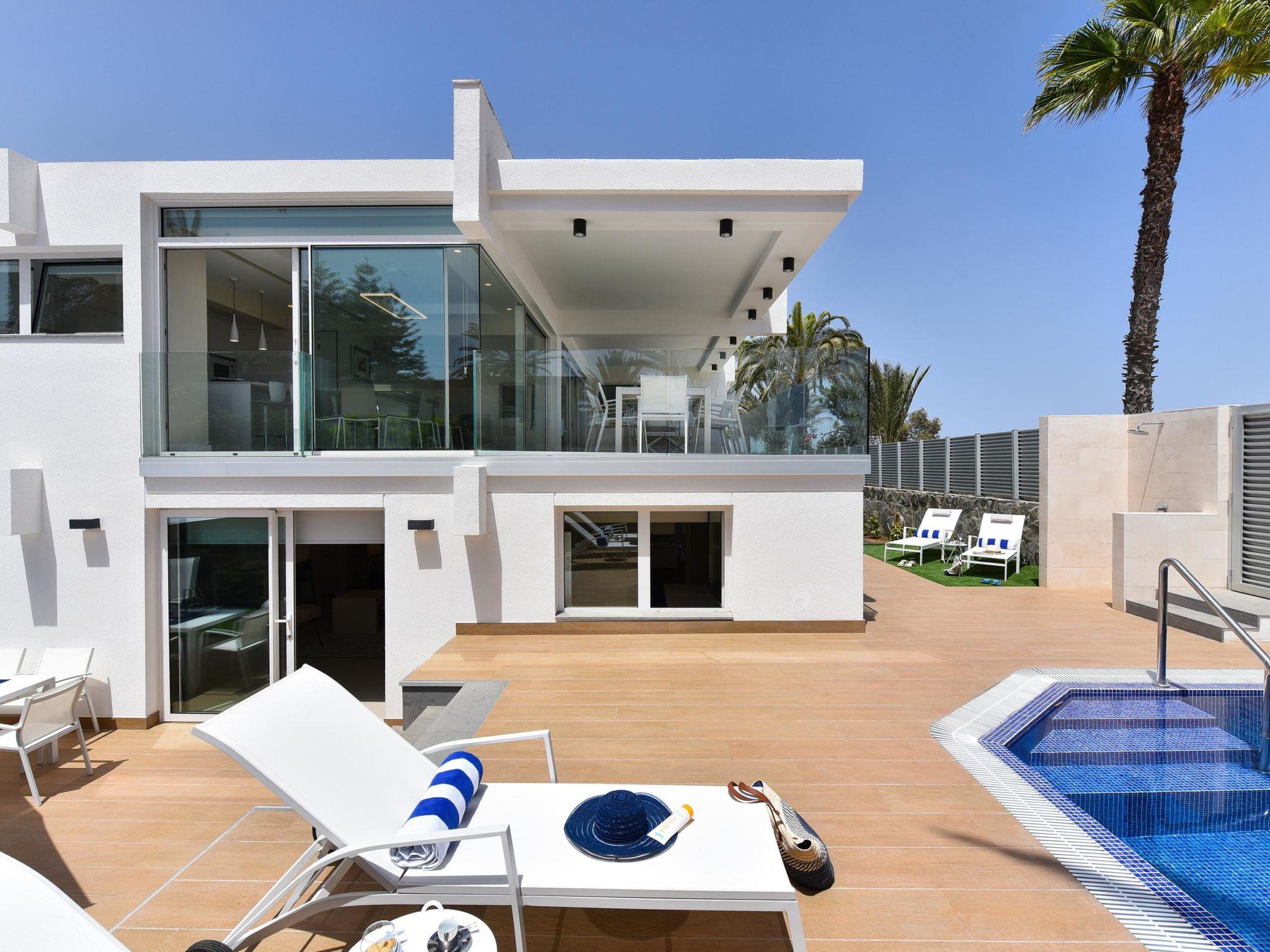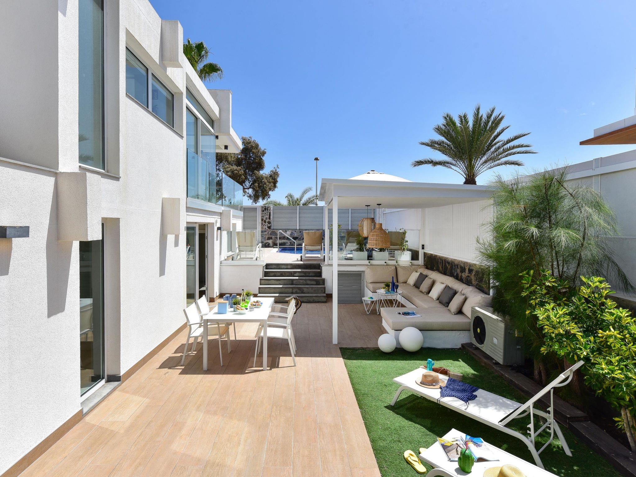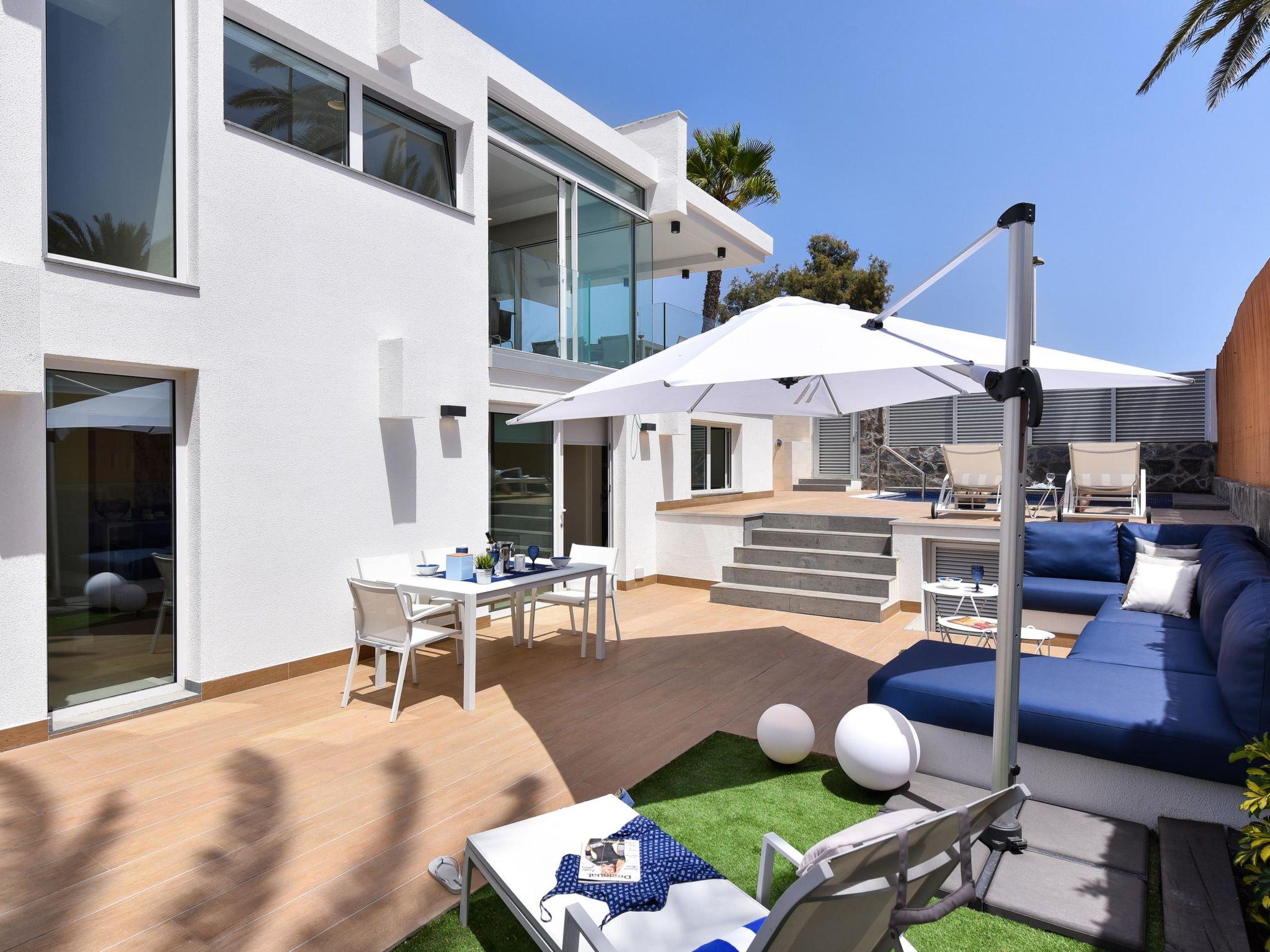 Very modern house. In the centre of Maspalomas, in a central position. Private: swimming pool angular, heated (depth 120 - 120 cm, seasonal availability: 01.Jan. - 31.Dec.). Bus stop "Estación Faro de Maspalomas" 450 m.