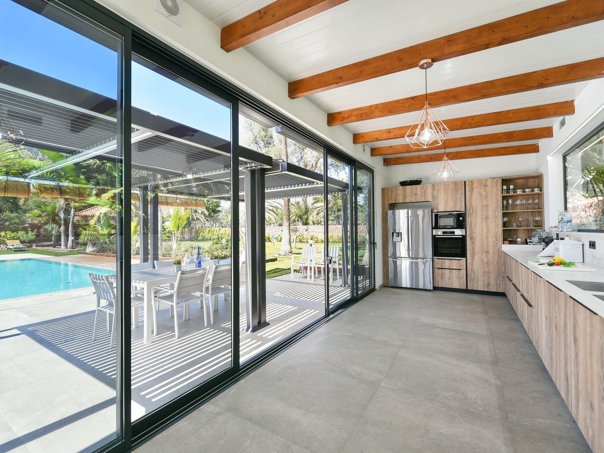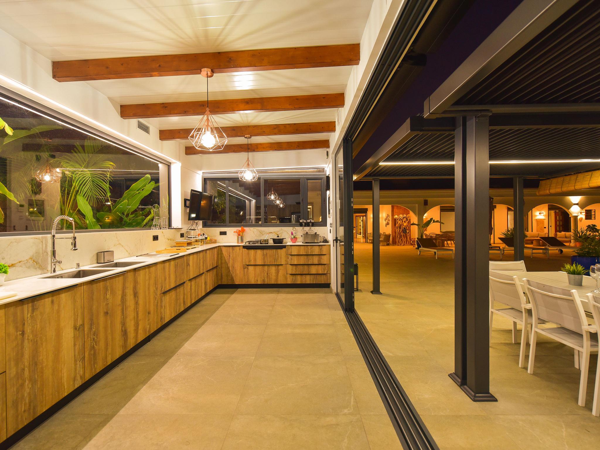 "Armonia Oasis DeLuxe", 6-room villa 431 m2. Object suitable for 10 adults. Spacious and bright, comfortable and modern furnishings: lounge with air conditioning. 4 rooms, each room with 1 french bed and air conditioning. 1 room with 2 beds and air conditioning. Living room with digital TV, flat screen and air conditioning. Large kitchen (oven, dishwasher, toaster, microwave, freezer) with air conditioning. 5 Baths/showers. No heating option. Large patio. Terrace furniture, barbecue, deck chairs, sitting area. View of the swimming pool. Facilities: iron, hair dryer. Internet (WiFi, free). Parking. Please note: suitable for families. Non-smokers only. The pool mentioned in the description is for private use. VV-35-1-0024310 // Reg. Nr.: ESFCTU0000350130000650290000000000000VV-35-1-00243100