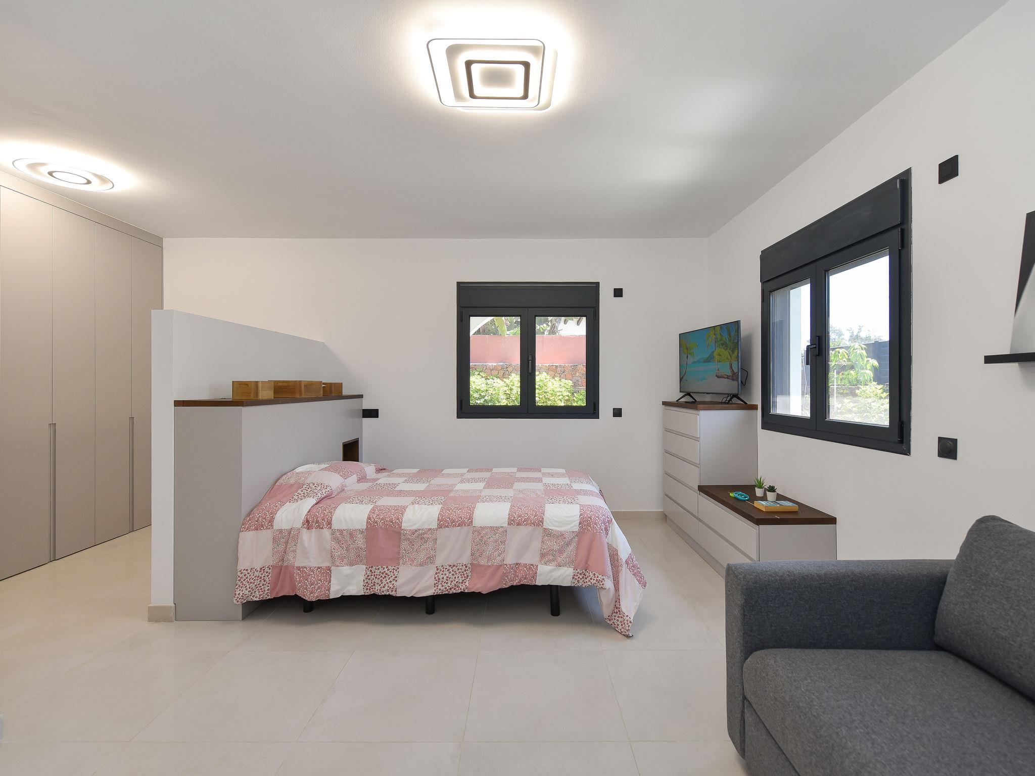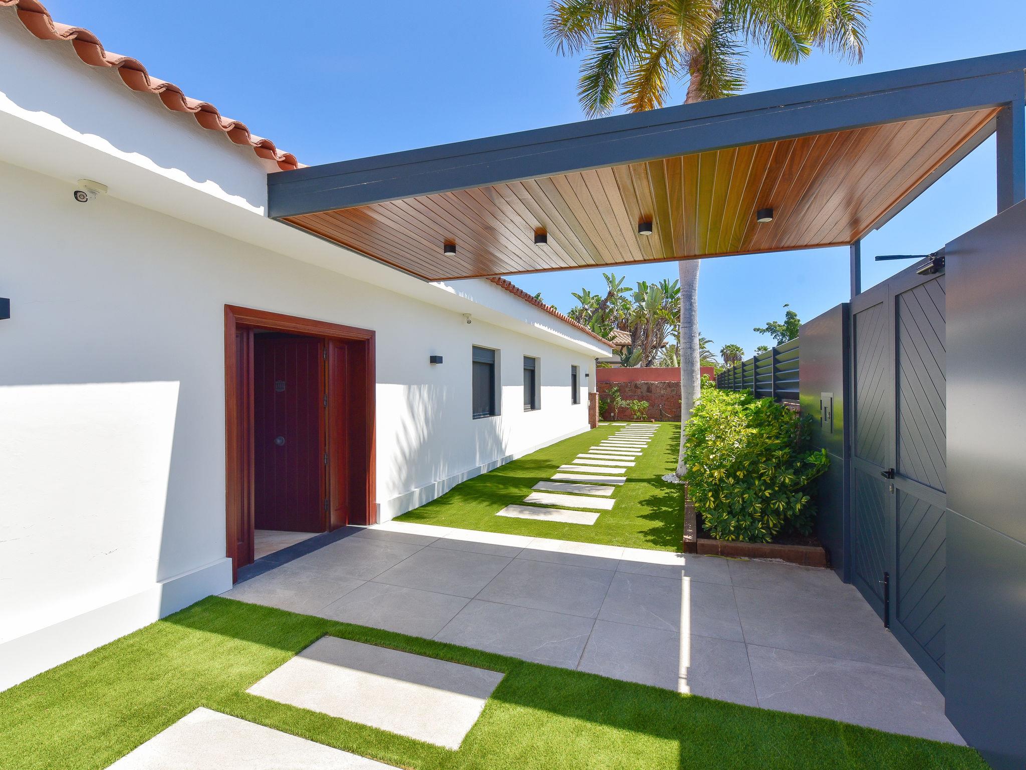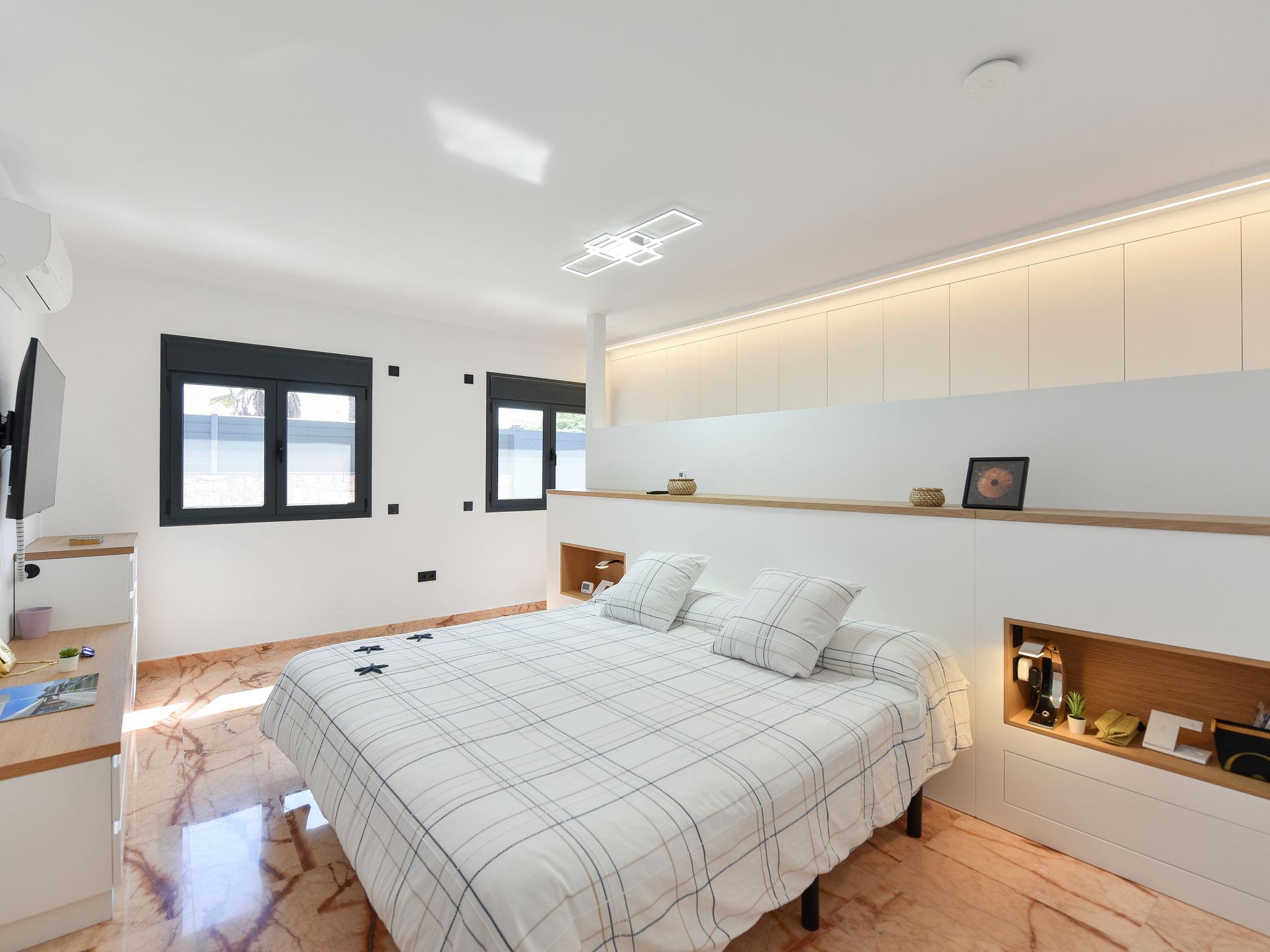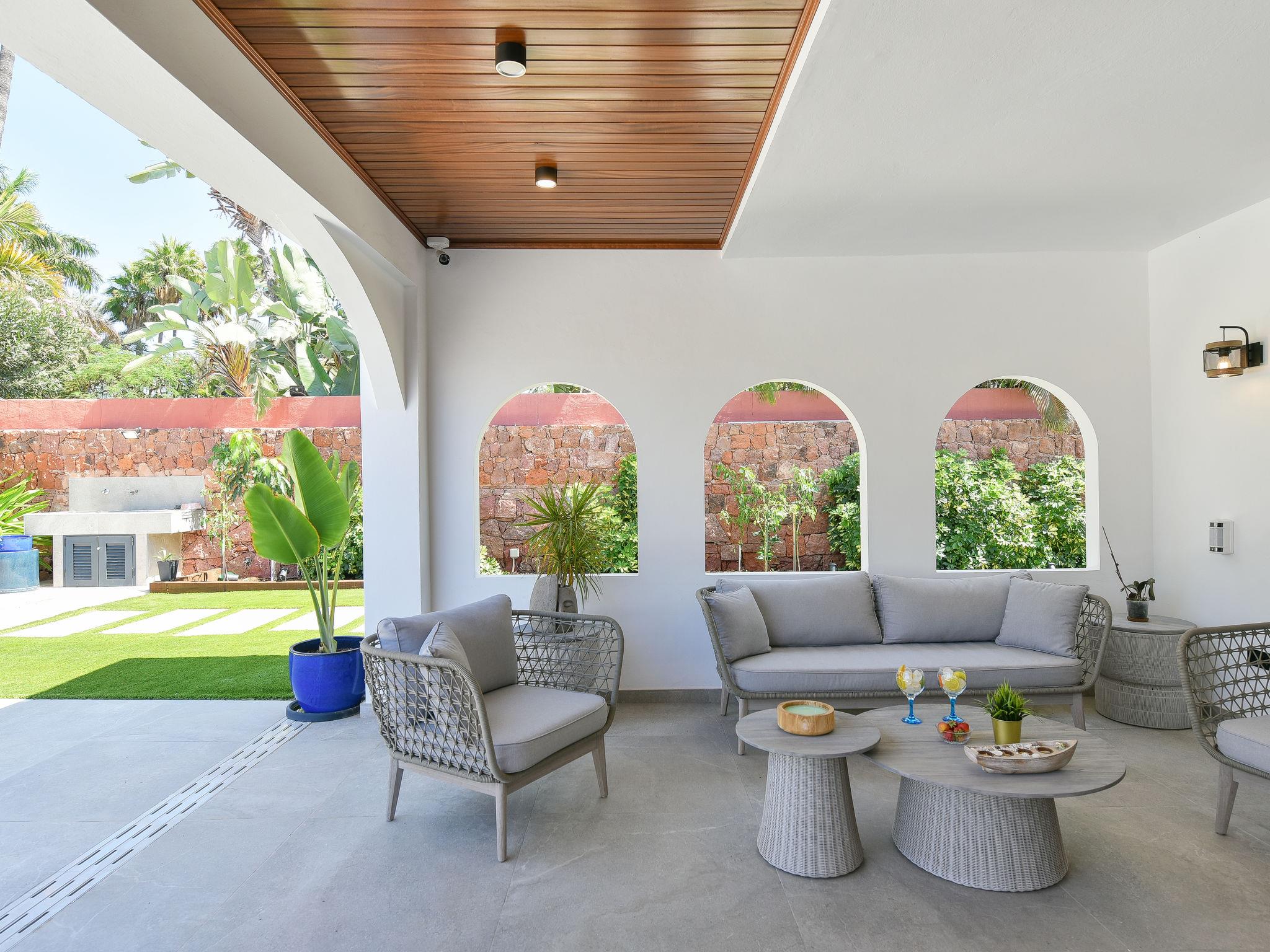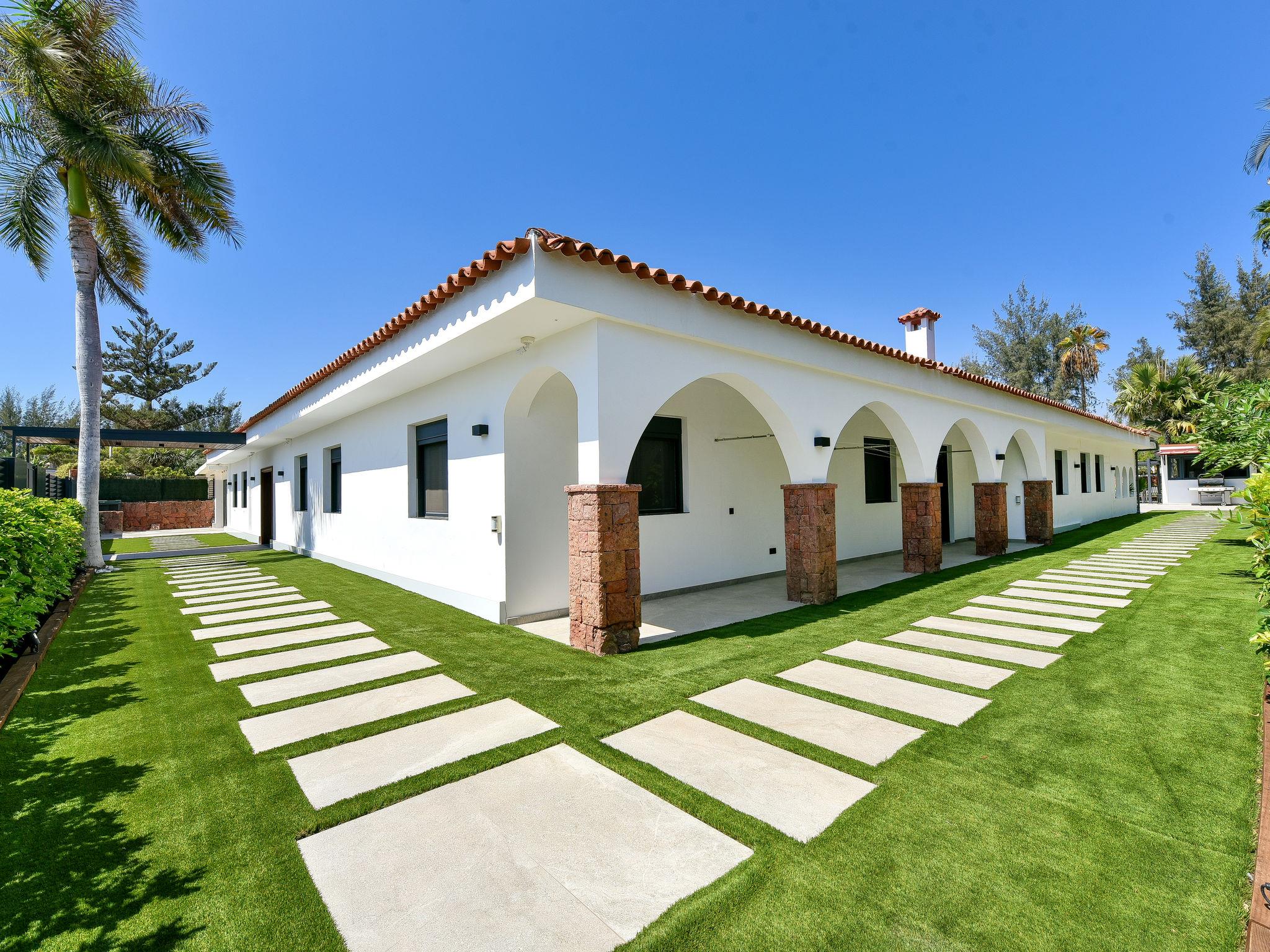 Cosy, luxurious villa. In the district of Campo Internacional Maspalomas, residential area (villas), excellent location: right in the centre but still quiet, 4 km from the sea, 4 km from the beach. Private: swimming pool (12 x 6 m, seasonal availability: 01.Jan. - 31.Dec.) with internal staircase. Single garage. Restaurant 2 km, bus stop "Av T.O. Neckermann" 1.2 km. Nearby attractions: Faro de Maspalomas 3 km, El Parque Botánico de Maspalomas 2 km, Playa de las Mujeres 4 km, Playa de Maspalomas 4 km, Playa del Inglés 5 km. Please note: baby equipment on request. The owner does not accept any youth groups. Neighbourhood highly sensitive to noise. Quietness and good behaviour expected. Late arrivals will have an extra cost to be paid in cash: 20:30-22:00: 30€, 22:00-00:00: 50€, 00:00-01:30: 80€. The min number of bedrooms opened will be determined by the base occupancy. For a booking of 1 to 8 guests, a min of 4 bedrooms will be available. To have access to the 5th bedroom with a lower occupancy, you must book for the capacity of 9-10 guests. To utilize all sleeping spots , a booking for 11 guests is required.