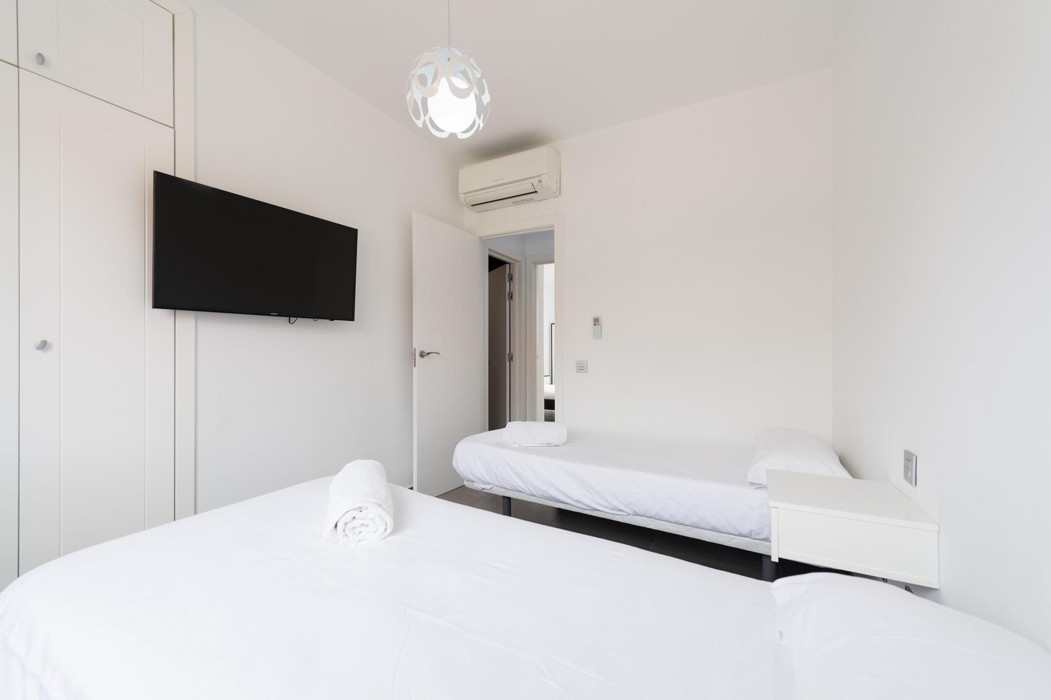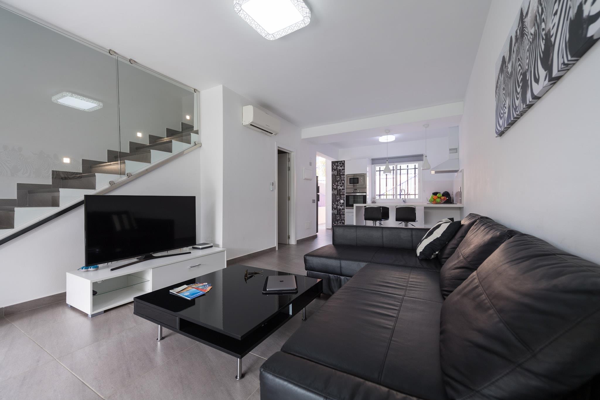 Denne moderne, fuldt renoverede duplex lejlighed tilbyder et perfekt tilflugtssted for dem, der søger komfort og bekvemmelighed ved stranden. Med to soveværelser kan det komfortabelt rumme op til 4 gæster. Ejendommen har to badeværelser, en privat pool og adgang til en fælles pool. Hvert værelse er udstyret med aircondition, smart-tv og højhastigheds-Wi-Fi, hvilket sikrer et afslappende og behageligt ophold. Hovedetagen omfatter en åben planløsning med et fuldt udstyret køkken og rummelige terrasser med liggestole, et afslapningsområde og en udendørs spiseplads med grill. Lejligheden er beliggende i det prestigefyldte Maspalomas/Meloneras-område, hvilket gør den ideel til familier eller grupper. Beliggenheden giver nem adgang til nogle af de bedste attraktioner på Gran Canaria. Meloneras-stranden ligger kun 150 m væk, og Maspalomas-stranden ligger inden for gåafstand. Gæsterne kan slentre langs den smukke promenade mod Maspalomas Fyrtårn, der er foret med restauranter af høj klasse. I nærheden finder du et indkøbscenter, supermarked og forskellige caféer og restauranter kun 300 meter væk. For golfentusiaster er der rabatter på nærliggende baner som Salobre Golf Resort og Anfi Tauro Golf. Ejendommen er også bekvemt placeret inden for en kort køretur fra lufthavnen og store shoppingområder. Lejligheden har et veludstyret køkken med køleskab, mikroovn, ovn, fryser, opvaskemaskine og kaffemaskine, så gæsterne nemt kan tilberede deres måltider. Yderligere faciliteter omfatter en vaskemaskine, strygejern og en have med møbler til udendørs afslapning.