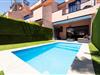Stueetage: (Stue(Fjernsyn(parabol), spisebord, sofahjørne), Køkken(elkedel, brødrister, kaffemaskine, ovn, mikrobølgeovn, opvaskemaskine , køleskab, fryser, ), badeværelse(bruser), Internetadgang) På 1. etage: (soveværelse(enkeltseng, enkeltseng, Fjernsyn(fladskærm)), soveværelse(dobbeltseng, Fjernsyn(parabol)), badeværelse(bruser)) Havemøbler, tremmeseng, vaskemaskine, balkon, klimaanlæg, terrasse, have, grill, swimmingpool(privat), swimmingpool(deles med andre gæster), barnestol, strygejern