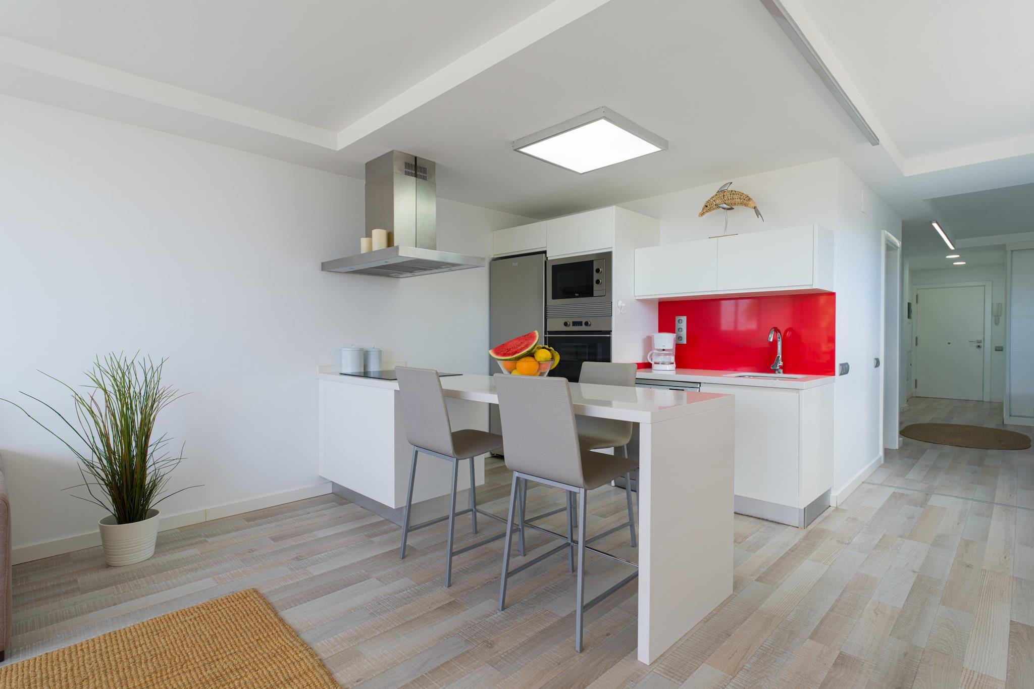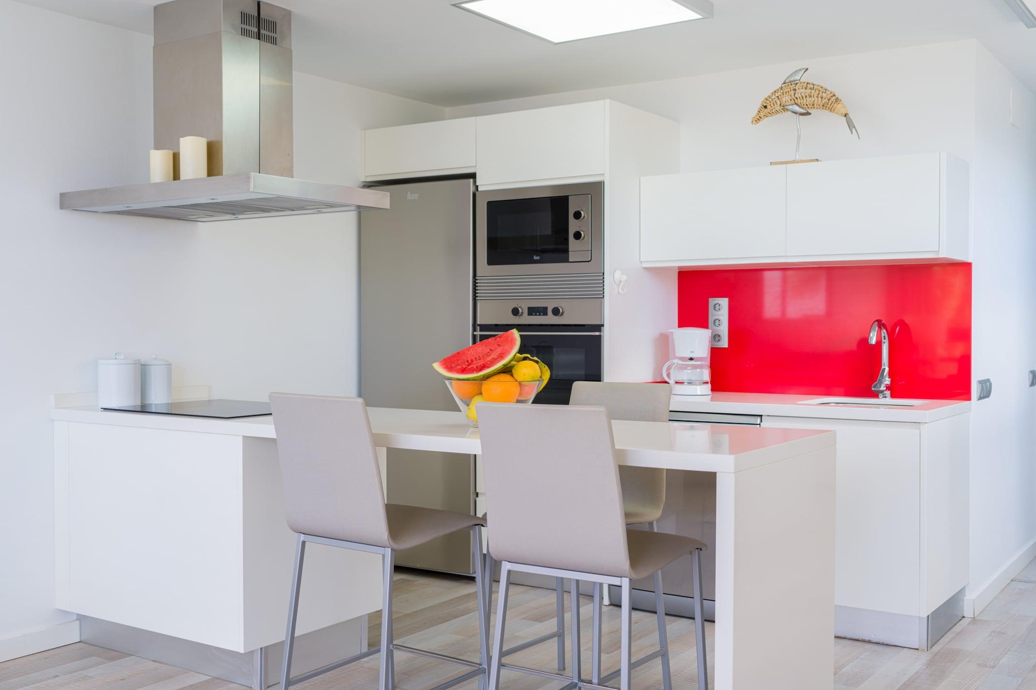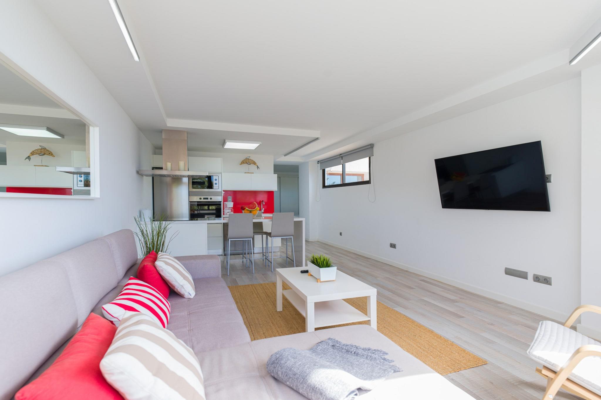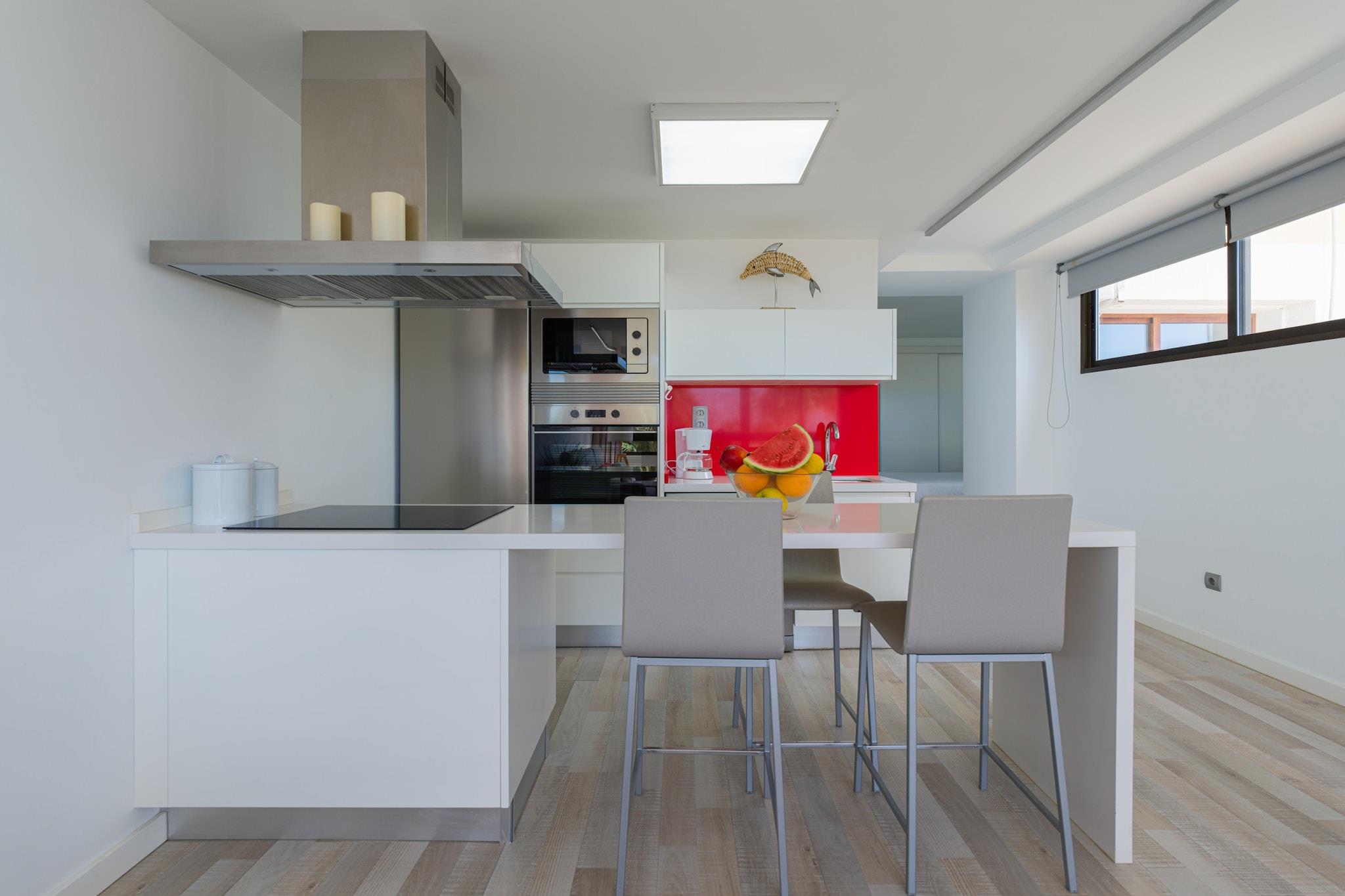 Velkommen til dette lyse og moderne studie ved stranden i Maspalomas, perfekt til et afslappende ophold ved havet. Med 53 m² hyggelig boligareal er denne nybyggede bolig ideel til op til 3 gæster. Kun få skridt fra El Besudo-stranden og tæt på flere andre såsom El Pirata og Playa del Águila, tilbyder denne beliggenhed en fredelig kystatmosfære, mens den stadig har gode forbindelser til butikker, restauranter og busforbindelser. Studiet har et åbent, solbelyst layout med udsigt til haven, stilfulde møbler og direkte adgang til en fælles swimmingpool. Indenfor finder du et veludstyret køkken med keramisk kogeplade, køleskab, ovn, opvaskemaskine, kaffemaskine og alle nødvendige redskaber. Opholdsområdet omfatter to tv'er, Wi-Fi, radio, ventilatorer og en vaskemaskine og tørretumbler for din bekvemmelighed. Udendørs møbler inviterer dig til at slappe af i haven eller nyde al fresco måltider kun få meter fra kysten. Beliggende i et familievenligt område, tilbyder studiolejligheden nem adgang til Maspalomas' største attraktioner. Nyd dage på stranden, spis på lokale steder som BAMIRA eller Rincón Canario, eller udforsk nærliggende seværdigheder såsom Holiday World, Aqualand eller Maspalomas klitter. Uanset om du er her for at slappe af eller udforske Gran Canarias naturlige vidundere, er dette studie en rolig og praktisk base for dit ophold.