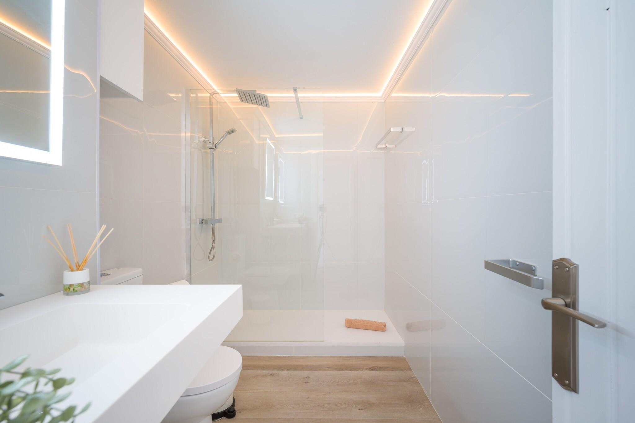 På 6. etage: (Stue(Fjernsyn(fladskærm, Smart-TV), spisebord, sofahjørne, radio, stereoanlæg), åbent køkken(elkedel, brødrister, kaffemaskine, ovn, mikrobølgeovn, køle-fryseskab, Saftpresser, elektriske kogeplader, ), soveværelse(dobbeltseng, Fjernsyn(fladskærm, Smart-TV)), badeværelse(bruser, føntørrer)) Internetadgang, Havemøbler, tørretumbler, solarium, vaskemaskine, have, swimmingpool(deles med andre gæster, udendørs), elevator, strygejern,